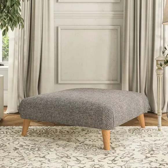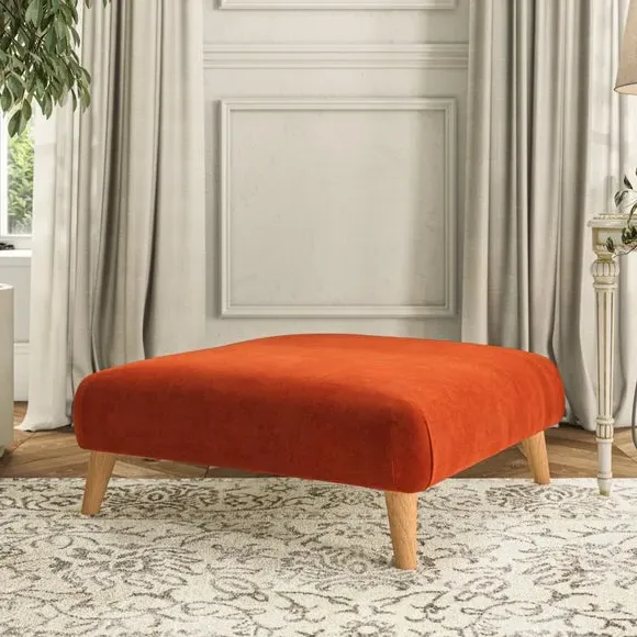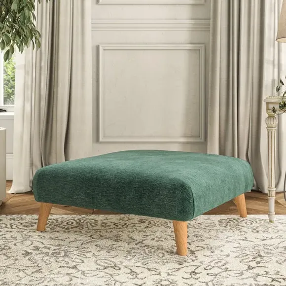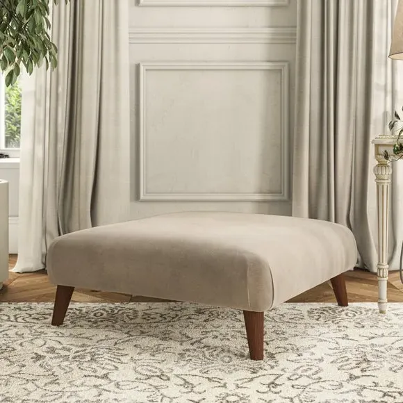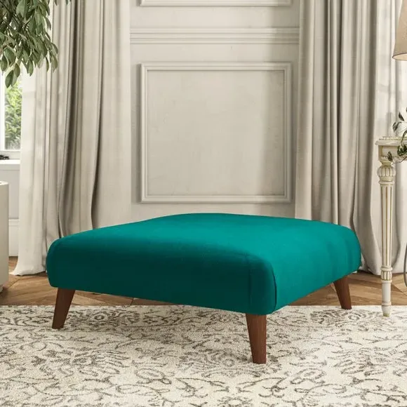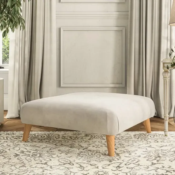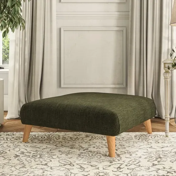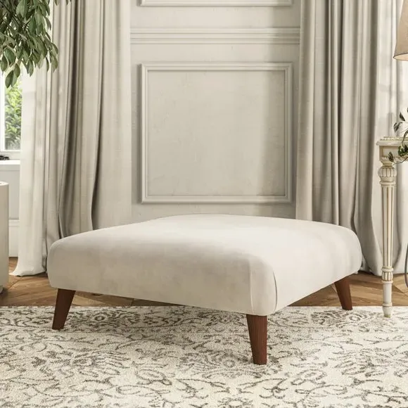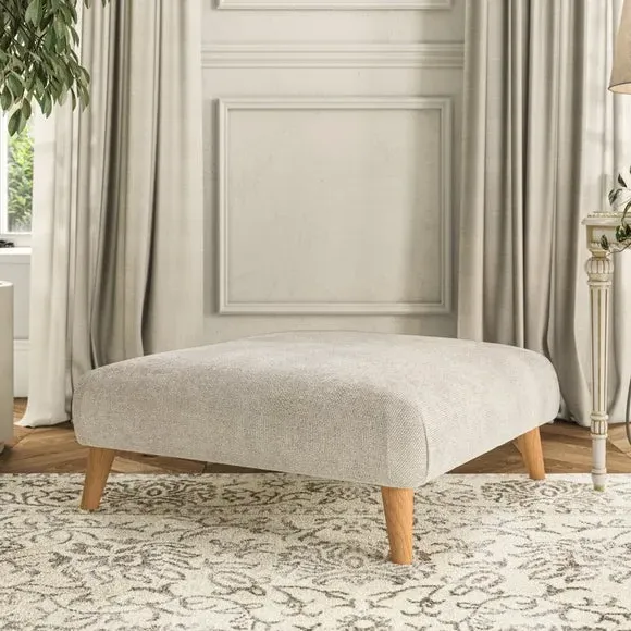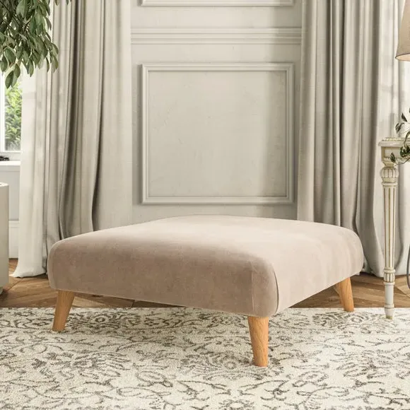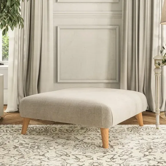 * Made to Order footstool* Wooden legs* Choose leg colour, filling and fabric type and colour This footstool offers a perfect blend of comfort and elegance, featuring a plush cushion top that can be customised with your choice of fabric and colour. The sturdy base ensures durability, while the turned hardwood legs, available in two finishes, add a touch of sophistication. Ideal for putting your feet up or as an extra seat, the Evelyn Footstool is a practical and chic choice for your home.