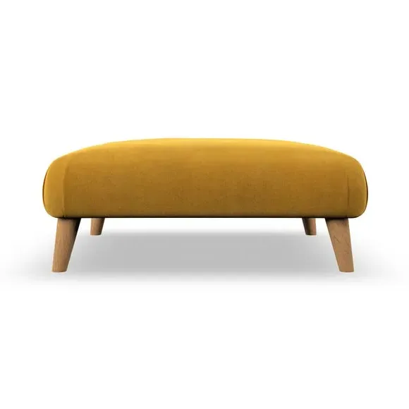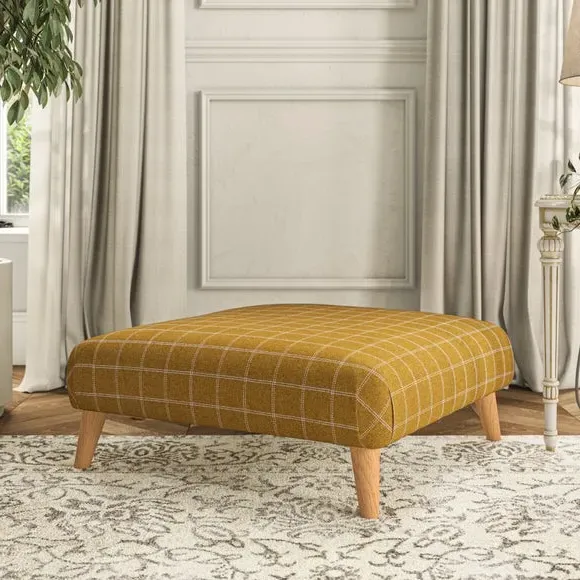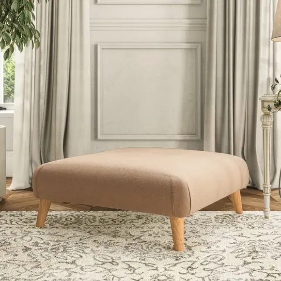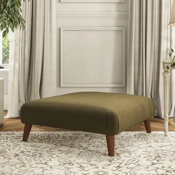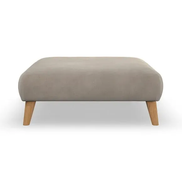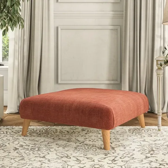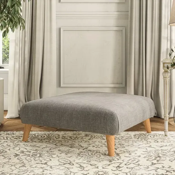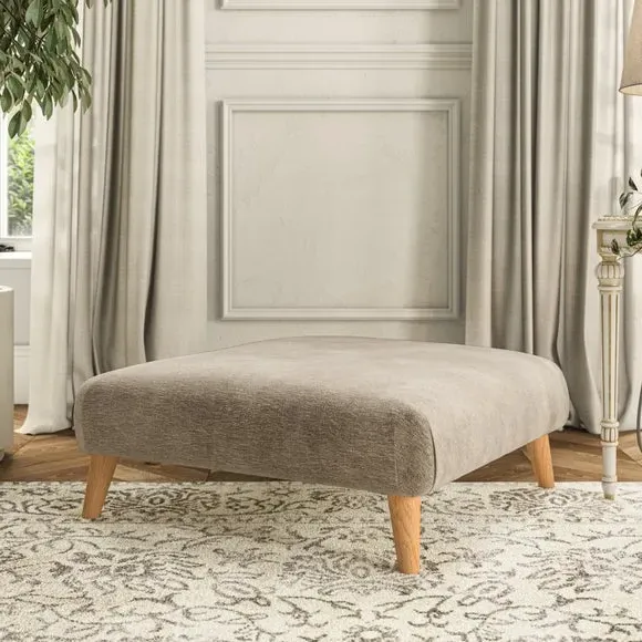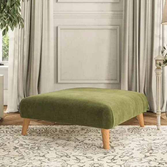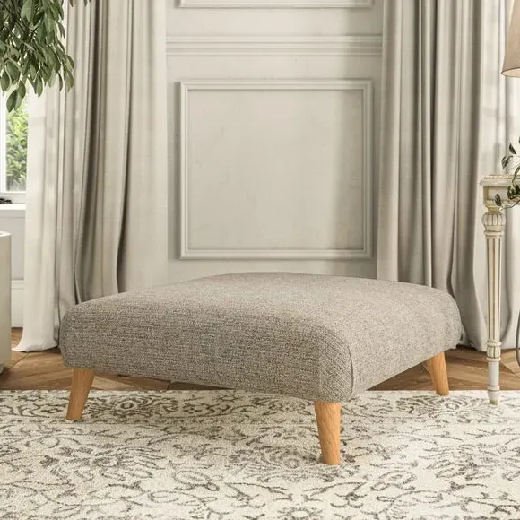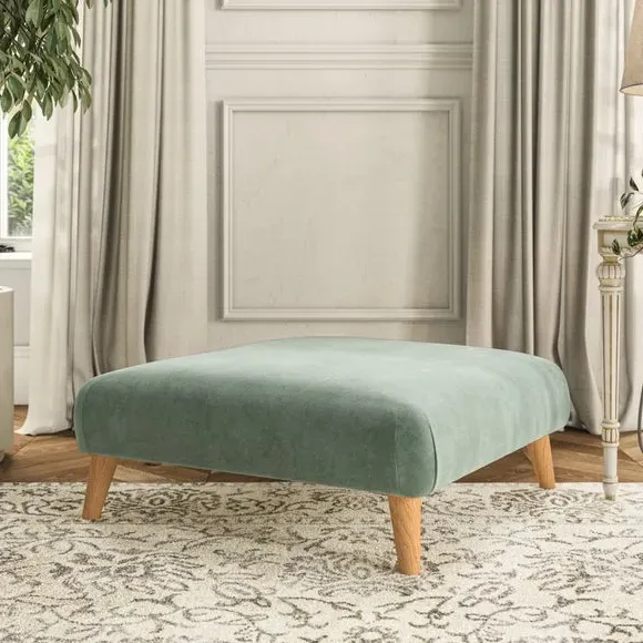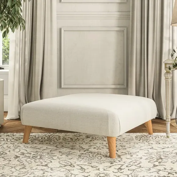 * Made to Order footstool* Wooden legs* Choose leg colour, filling and fabric type and colour This footstool offers a perfect blend of comfort and elegance, featuring a plush cushion top that can be customised with your choice of fabric and colour. The sturdy base ensures durability, while the turned hardwood legs, available in two finishes, add a touch of sophistication. Ideal for putting your feet up or as an extra seat, the Evelyn Footstool is a practical and chic choice for your home.