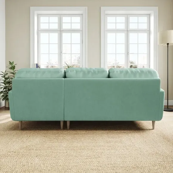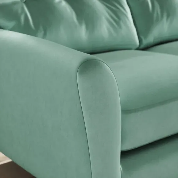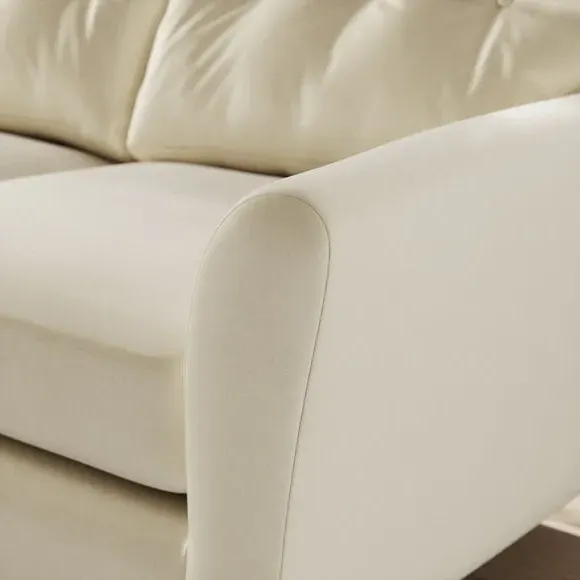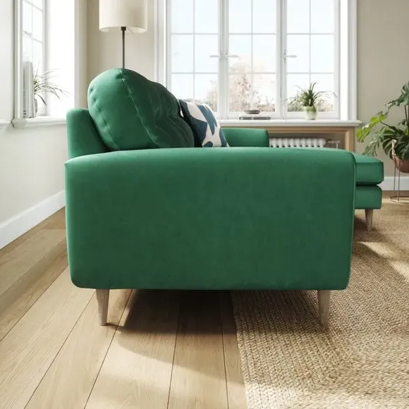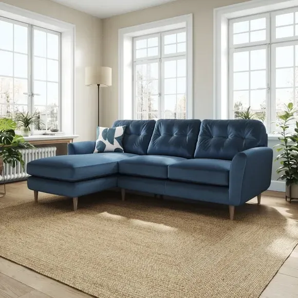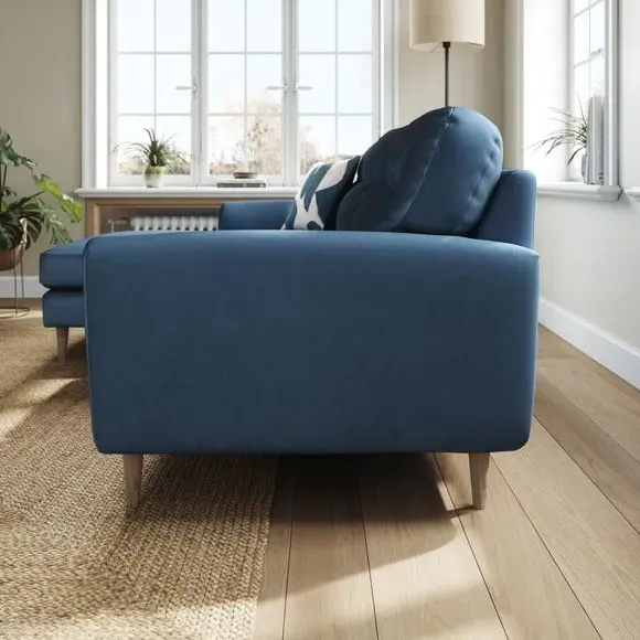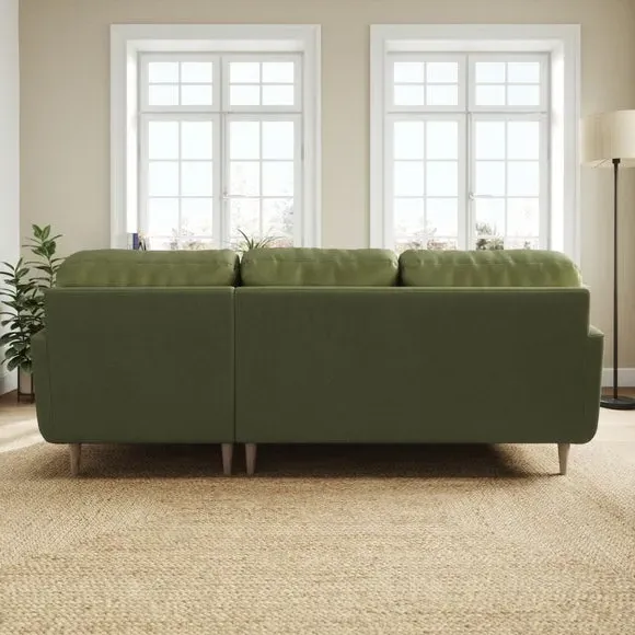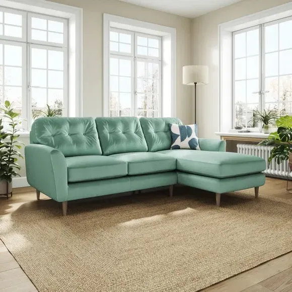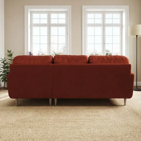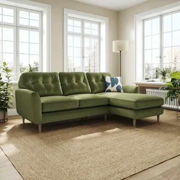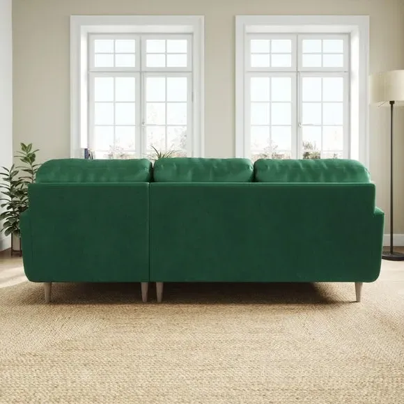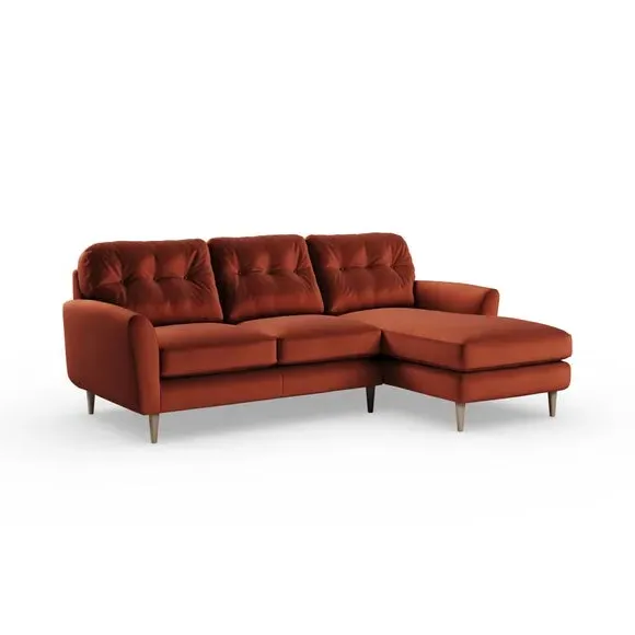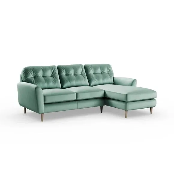 * 100% recycled polyester* Soft velvet fabric* Buttoned back cushions* Wooden legs* Comfortable foam filled seat* Right or Left hand facing options This stunning piece combines grandeur with comfort, featuring plush velvet upholstery in a rich, luxurious hue. Its generous proportions and corner design create the perfect spot for lounging, entertaining, or simply relaxing in style. The chaise extension adds extra legroom for those laid-back afternoons, while the sleek lines and sumptuous fabric bring an air of sophistication to your home.