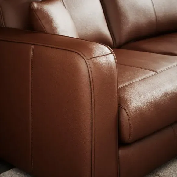 * 100% Real Leather* Piped edge detailing* Frosted Birch feet* Foam filled seat* Fibre filled back cushions* Left and Right facing options This sofa offers generous seating space, ideal for family gatherings, entertaining guests, or enjoying quiet moments of relaxation. Its deep, plush cushions provide superior comfort, while the vintage leather upholstery brings a warm, rich texture to your home.