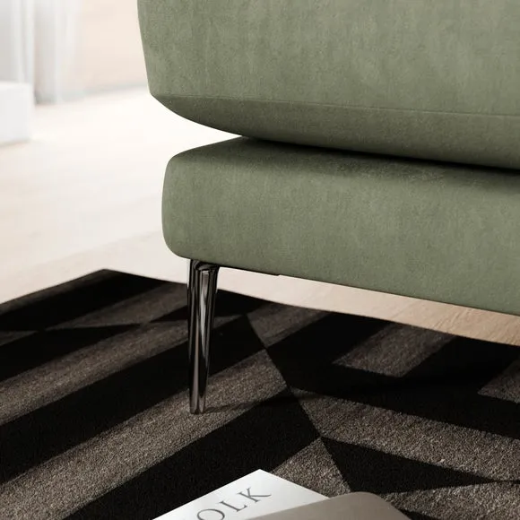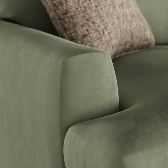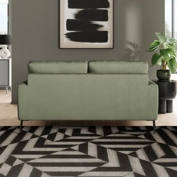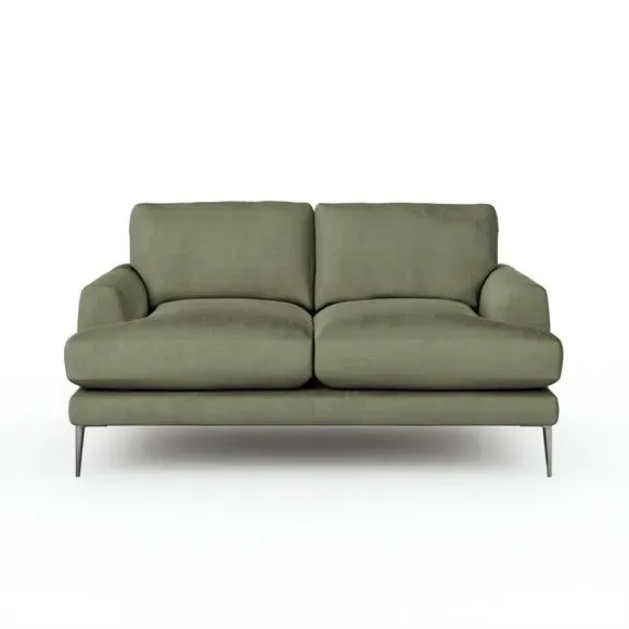 The 2-seater sofa offers luxurious comfort with its matte plush velvet upholstery in rich olive. Its foam and fibre-filled seat provides supportive seating, while the modern square arms add contemporary appeal. The fixed back design ensures lasting shape, and the elegant metal legs deliver sturdy support with refined style.