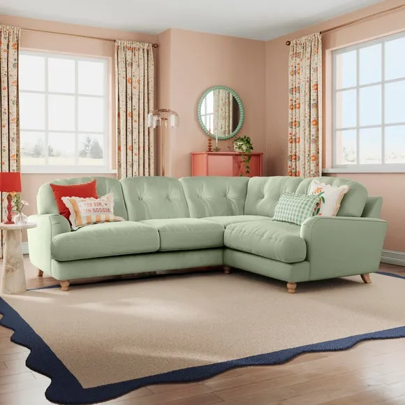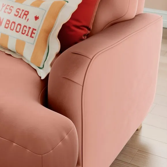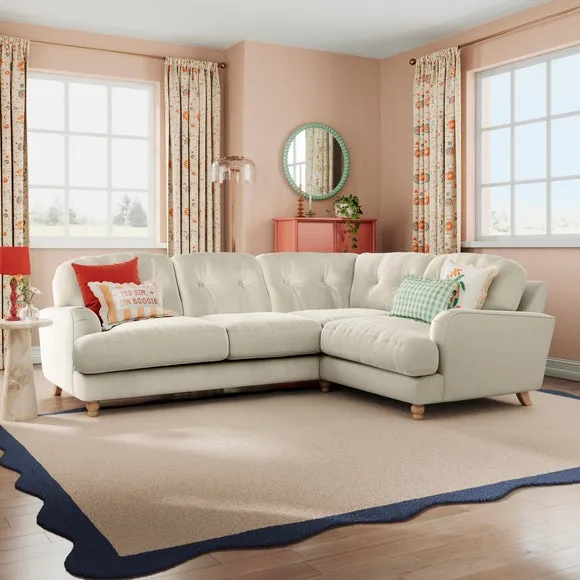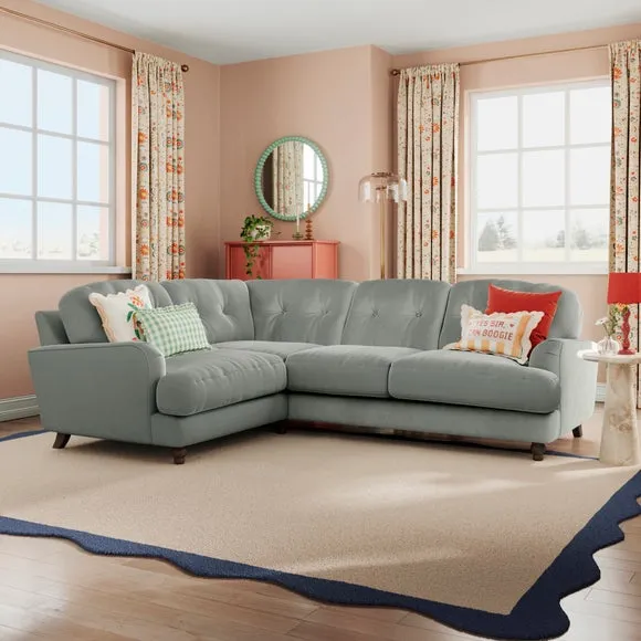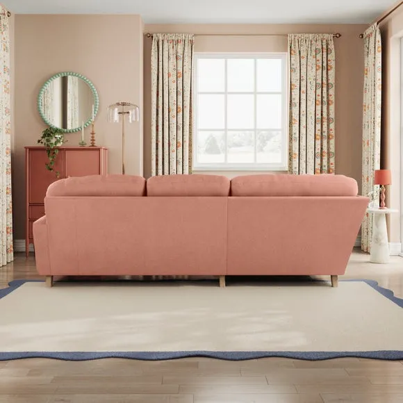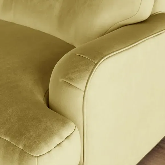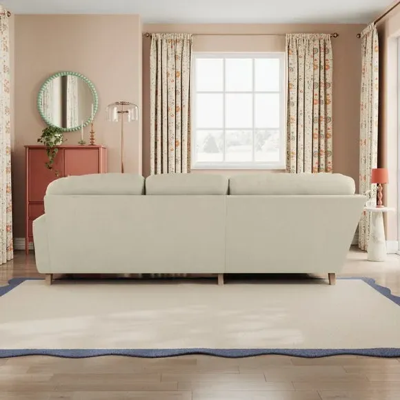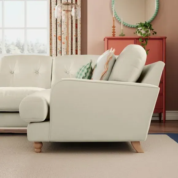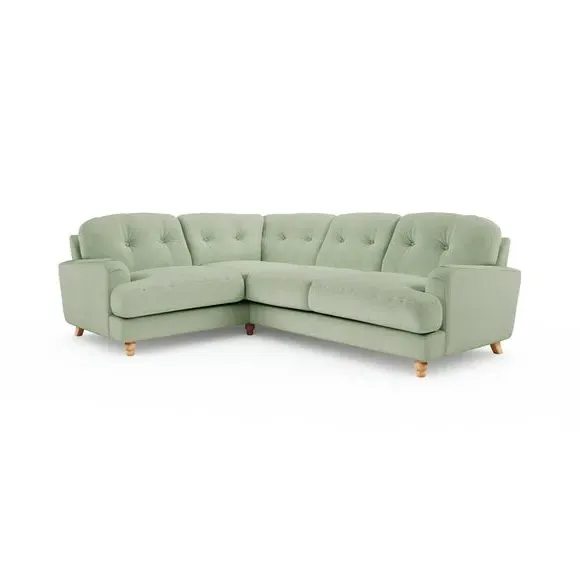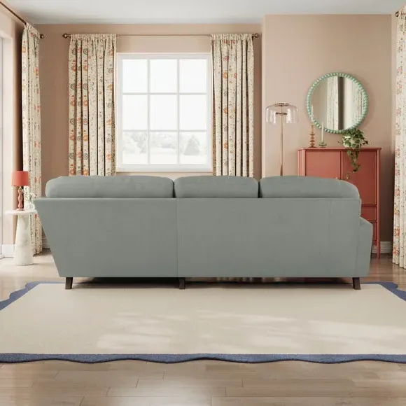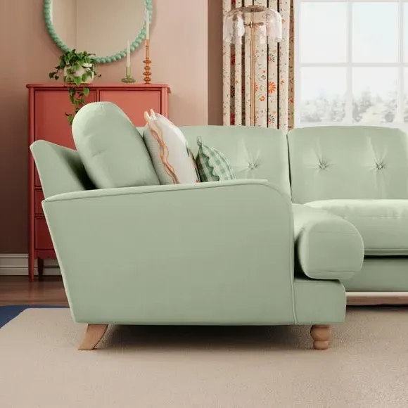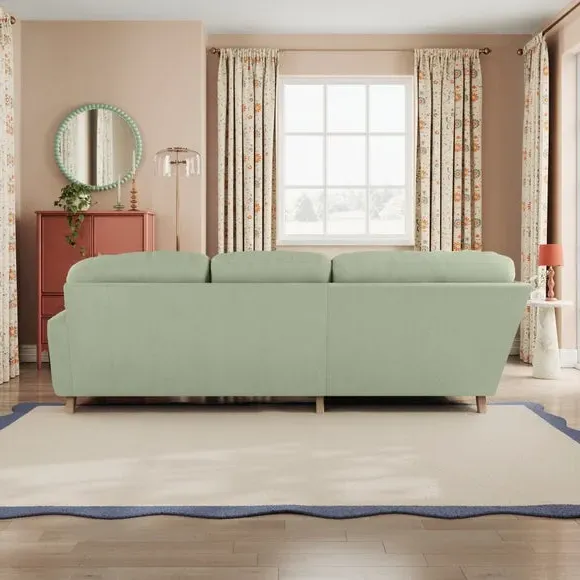 * Large Sofa* 4 Seater* Left or Right Hand facing options* Luxe Velvet upholstery Wrapped in luxurious vintage velvet, this sofa embodies understated opulence, inviting you to sink into its plush cushions and unwind in style. With its full corner design, it provides ample seating space for gatherings or moments of relaxation. The classic silhouette and rich texture add a touch of sophistication to any living space. This product has fibre filled seat cushions. This means they require vigorous plumped by shaking and redistributing the fibres daily. This will add air back into the fibres and preventing clumping, flattening and the seat dipping.