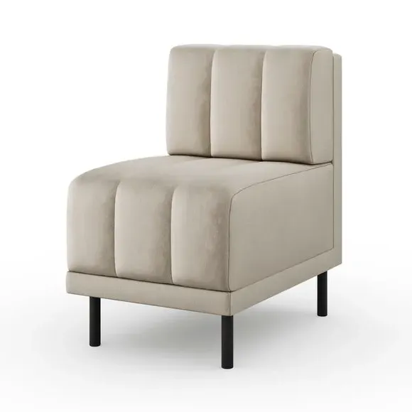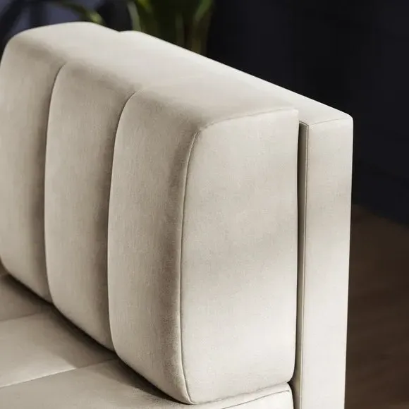 The dining bench combines vintage charm with its luxurious velvet upholstery, featuring a sturdy birch frame and painted wooden legs. Its soft texture provides comfortable seating, while the modular design allows for flexible configurations. The bench offers versatile use as dining seating or additional guest accommodation, and its durable construction ensures lasting appeal.