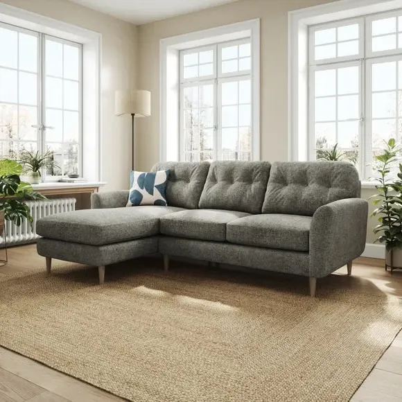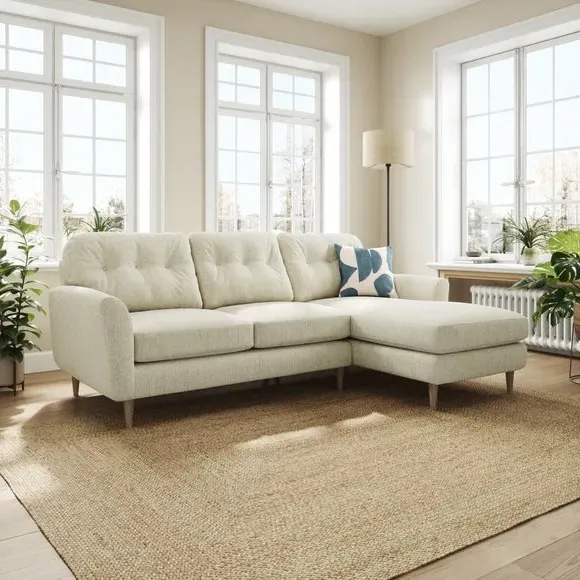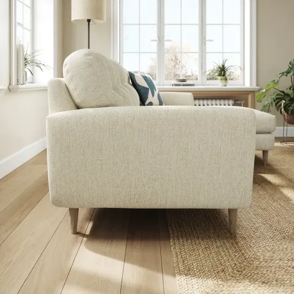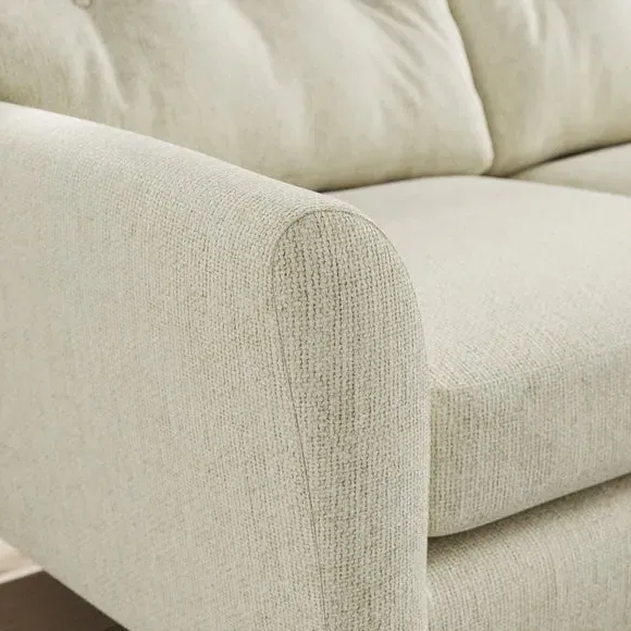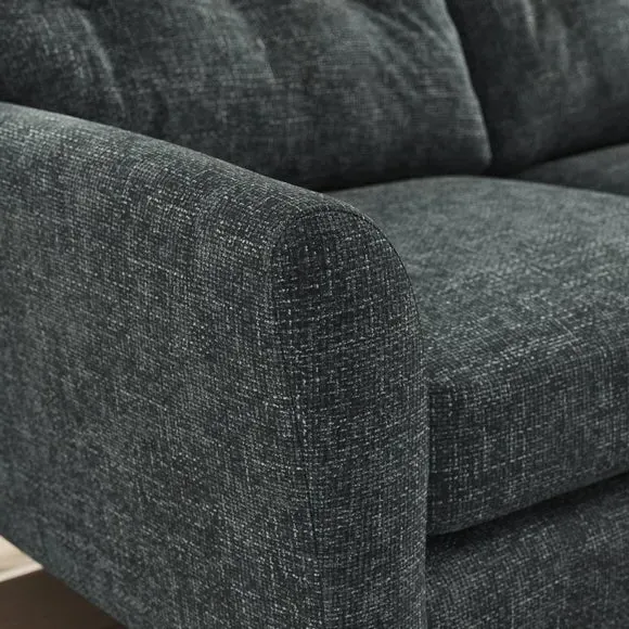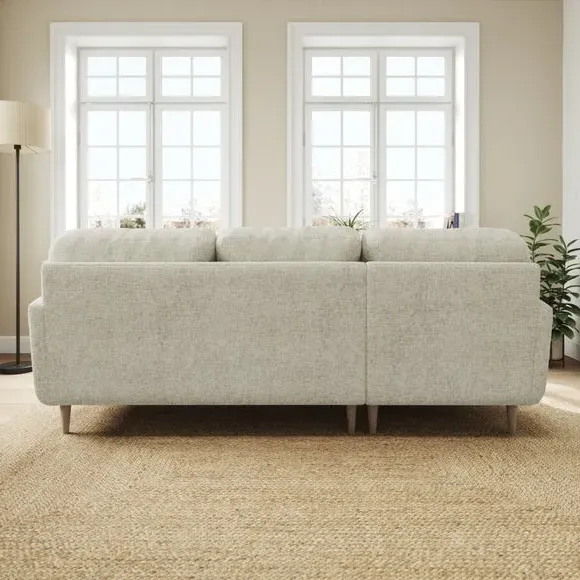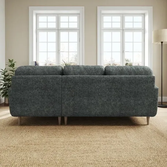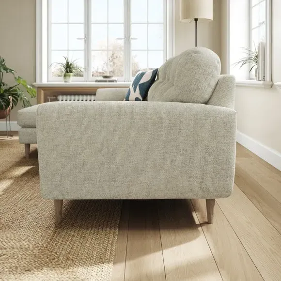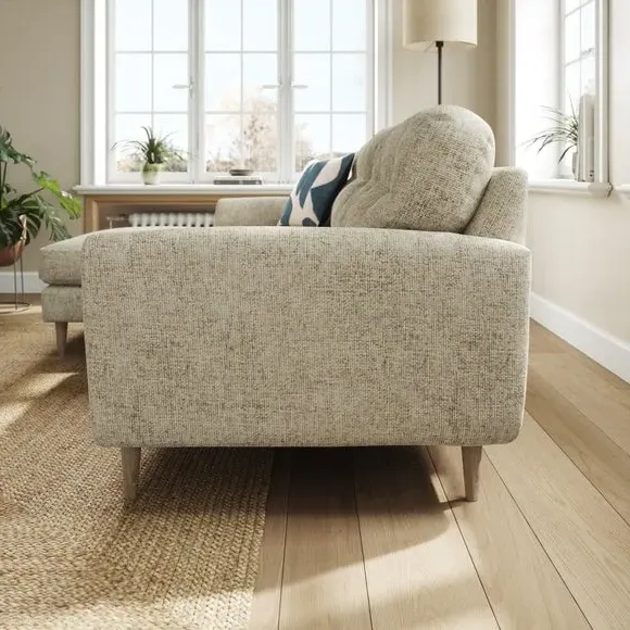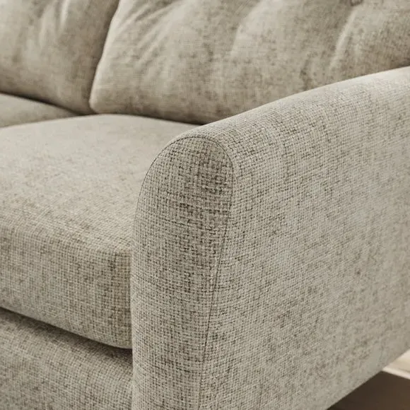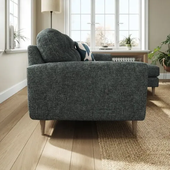 * 100% recycled polyester* Soft chenille* Buttoned back cushions* Wooden legs* Comfortable foam filled seat* Right or Left hand facing options Wrapped in soft, textured chenille, this sofa offers a sumptuous feel and lasting durability. Its expansive corner design invites you to stretch out and unwind, while the spacious chaise extension provides additional comfort and versatility. The chunky chenille fabric adds a touch of laid-back elegance to your space, making it the perfect choice for both casual lounging and stylish gatherings.