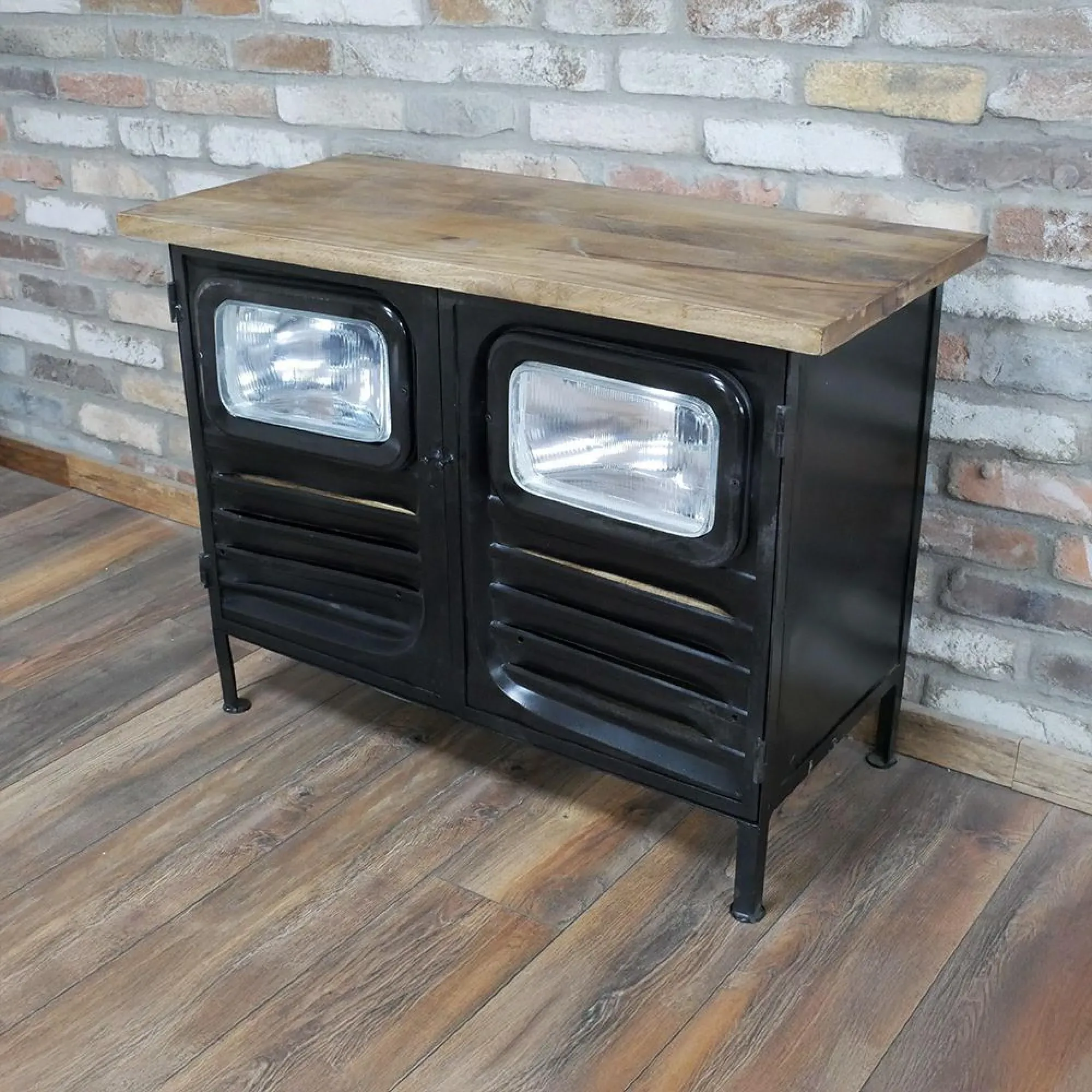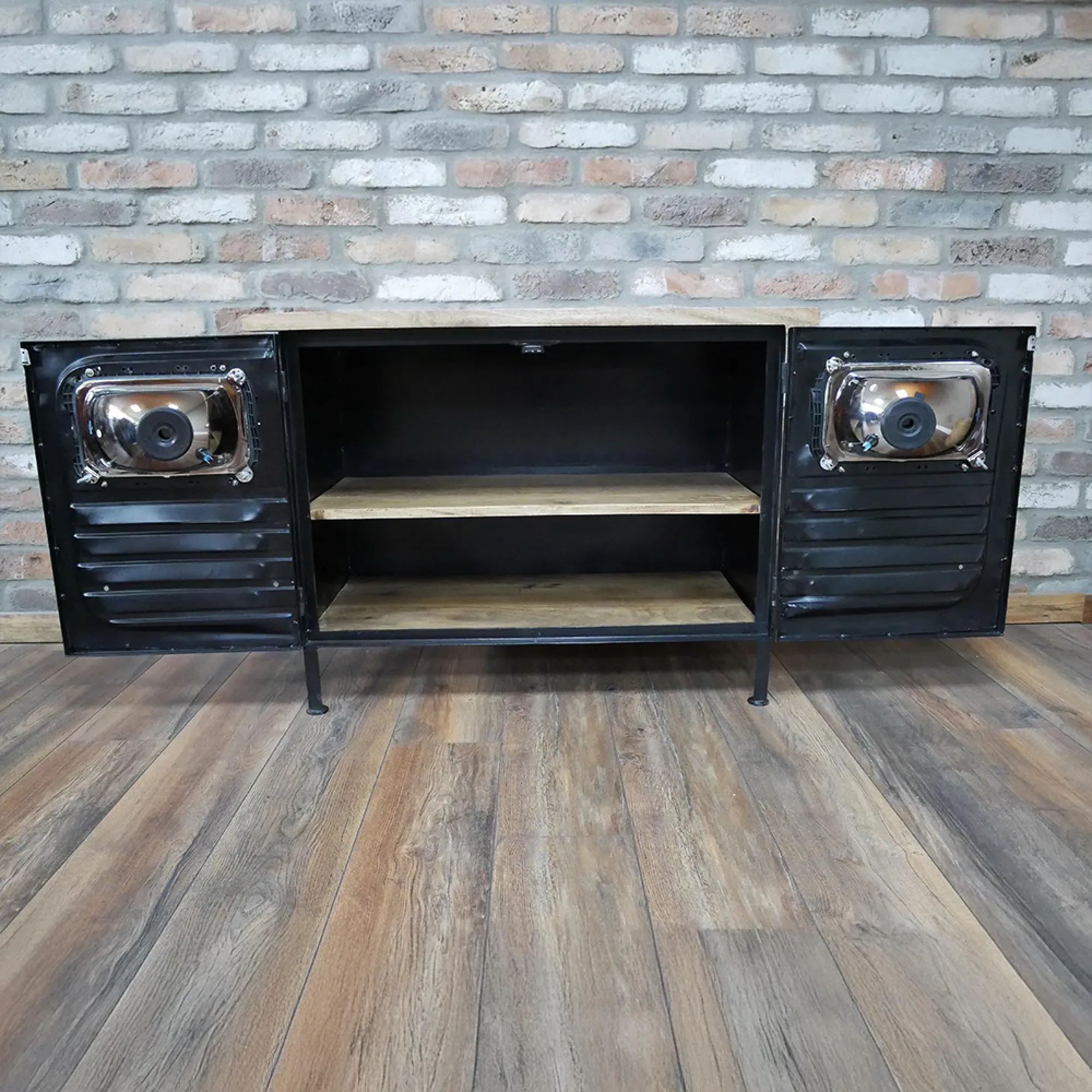 The industrial 2 door cabinet combines functionality with contemporary appeal through its sleek black metal construction. Its dual door design provides secure storage space, while the metal framework ensures robust durability. The industrial styling adds character to any space with its clean lines and sturdy build.