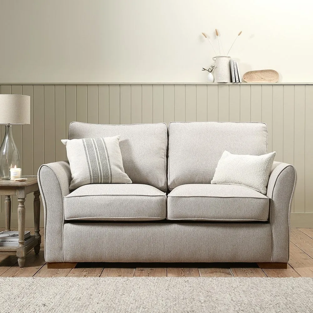 Exuding traditional elegance, our Fletcher large 2 seater sofa is perfect for both classic and contemporary homes. Handcrafted in the UK by master upholsterers, it's made using the finest quality materials for lasting quality. The supportive seat cushions hold their shape without the need for plumping, while the classic sloping arms and luxurious fibre filled backs offer the ultimate sink-in comfort.The House Weave fabric in natural is wonderfully hardwearing, making it a popular choice for busy households. With its soft, neutral tones, it effortlessly complements any space. With our next-day delivery options, you can start enjoying your refreshed living space as soon as tomorrow.