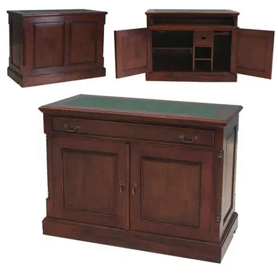 The Belarus bedside cabinet offers solid mahogany construction with four practical storage drawers. Its concealed top drawer provides secure storage for valuables, while the dovetail joint construction ensures lasting durability. The solid mahogany knobs and panelled side detail complement the mid-gloss lacquer finish. W45 x D42 x H76 cm.