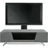 The Chroma Medium TV Stand provides streamlined entertainment storage with its white high-gloss finish and single flip-down door design. Its speaker mesh-covered door allows sound and IR signals to pass through unimpeded, while the large soundbar shelf accommodates most models. The dual storage compartments organize AV equipment efficiently, and the steel frame with protective plastic feet safeguards flooring. Built-in cable management maintains the minimalist aesthetic while ensuring practical functionality.