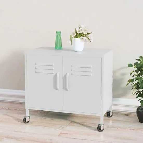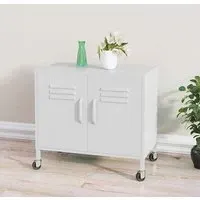 Emrik Steel Storage Cabinet With Castors In White, This steel cabinet will keep your house clean and well-organised! FEATURES : Material : Steel Finish : White This storage cabinet is made of steel, making it sturdy and stable The adjustable shelf provides ample storage space to keep your DVDs, multimedia appliances, books and small essential items organised and within reach The cabinet is equipped with with four wheels for easy movement The two front wheels have brakes to avoid accidental move It is also easy to clean with a damp cloth 4 wheels (2 back wheels and 2 front wheels with brakes) With 1 adjustable shelf With air vents on the doors Loading capacity per shelf : 35kg Total loading capacity : 70kg Manual Assembly required Available at an affordable price Images shown are for illustration purpose only DIMENSIONS : Height : 49cm Width : 60cm Depth : 35cm