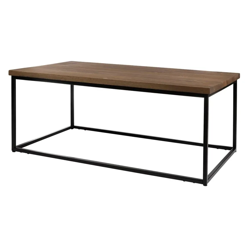 The Wichita Coffee Table combines rustic charm with industrial strength through its solid oak construction and powder-coated steel base. Its natural grain and ridges provide authentic character, while anti-warping braces ensure long-lasting quality. The black steel Quarto base offers exceptional stability, and the square surface provides ample space for drinks and essentials.
