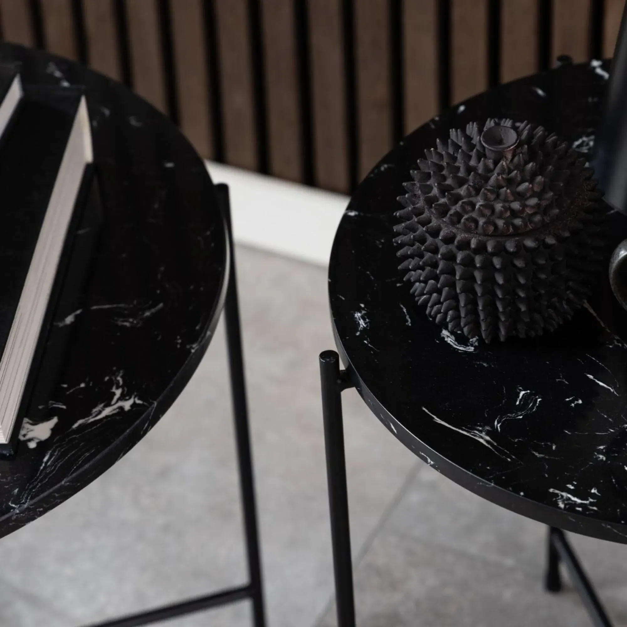 The Avila side table provides rich brown marble stone with distinctive natural patterns throughout. Its round surface accommodates daily essentials, while the stone construction delivers exceptional durability. The warm brown tones add depth and character to any room setting.