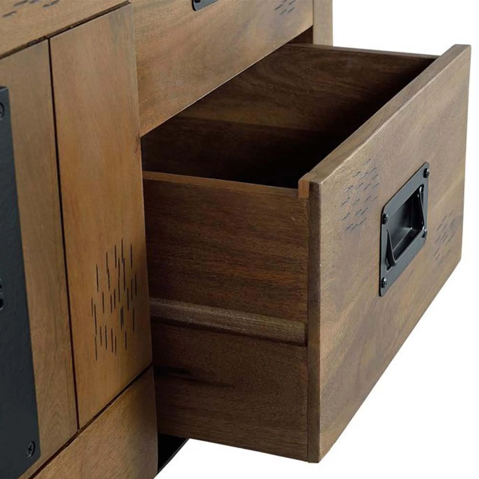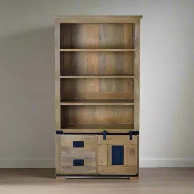 The Catania Bookcase combines practical storage with its integrated cupboard design, crafted from durable mango wood. Its cherry finish adds warmth to the piece, while the mixed storage options provide space for both display and concealed items. The solid wood construction ensures lasting durability, and the cupboard section offers organized storage for various items.