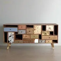 The Karlstad Large Sideboard offers ample storage with its two-door design, crafted from durable acacia wood. Its natural finish provides warmth and character, while the spacious interior accommodates dining essentials and household items. The solid construction ensures long-lasting durability, and the clean lines suit various interior styles. W160 x D40 x H80 cm.