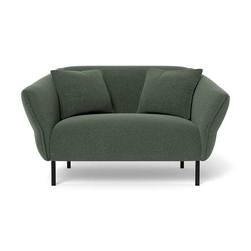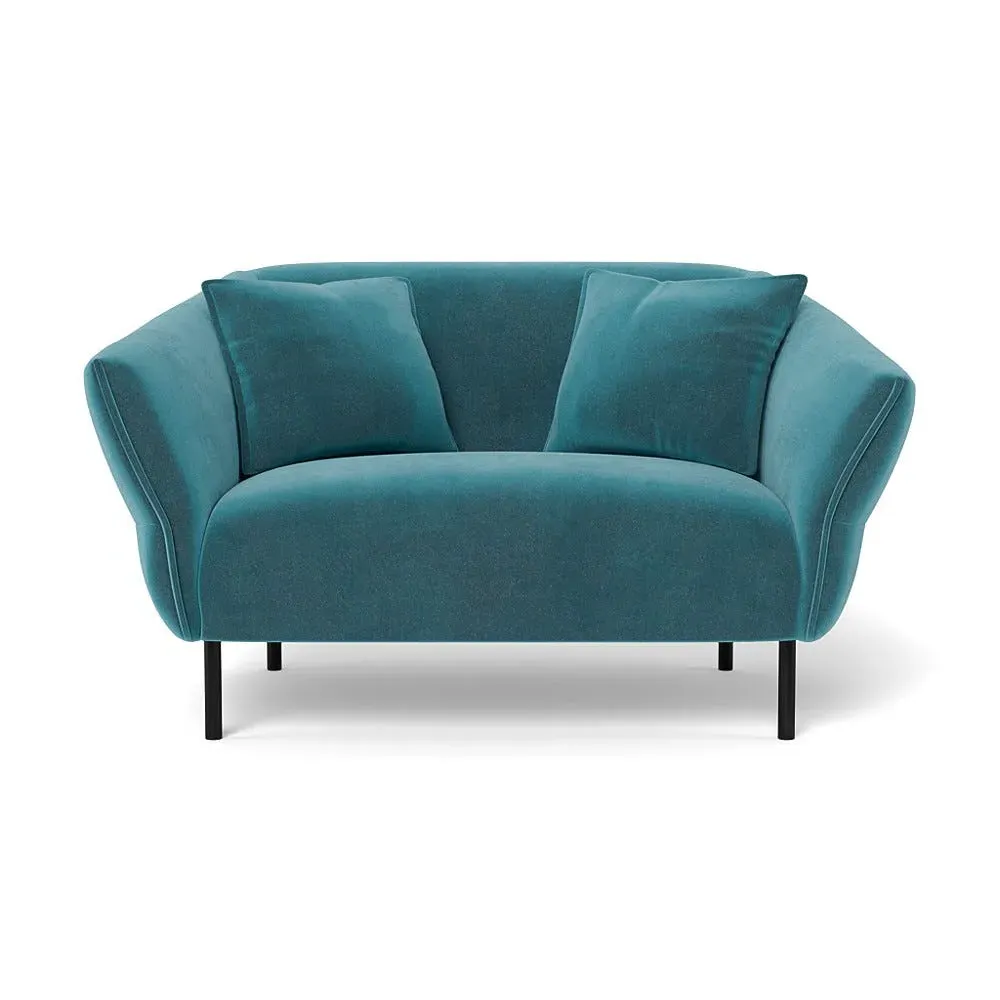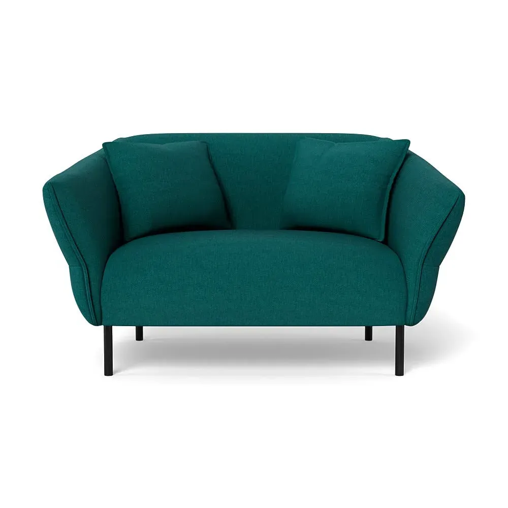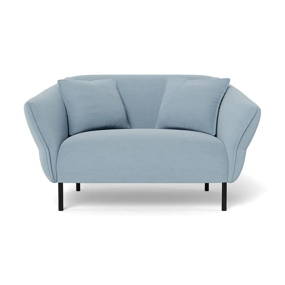 The loveseat combines comfort with its brushed cotton upholstery in a sophisticated cadet blue shade. Its supportive cushioning provides excellent relaxation, while the black legs create a striking contrast. The thoughtful 2-seater proportions suit intimate settings, and the durable frame ensures reliable performance.
