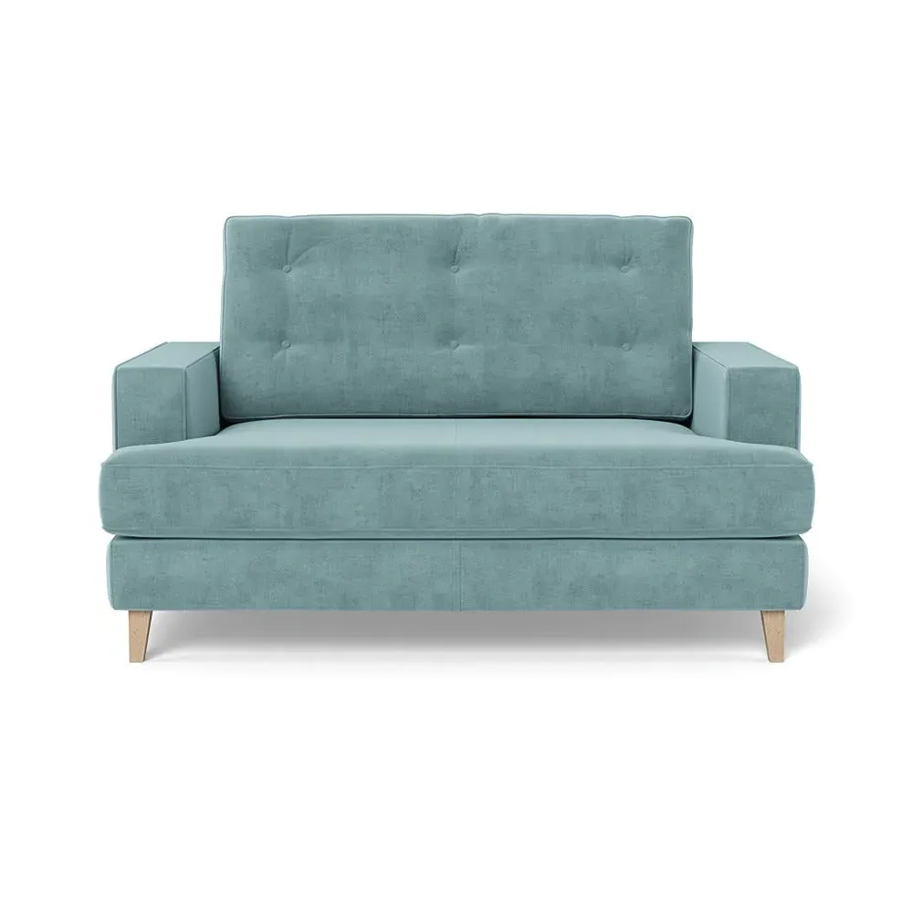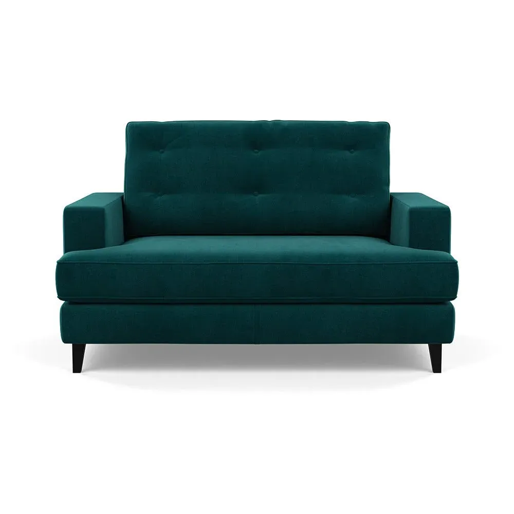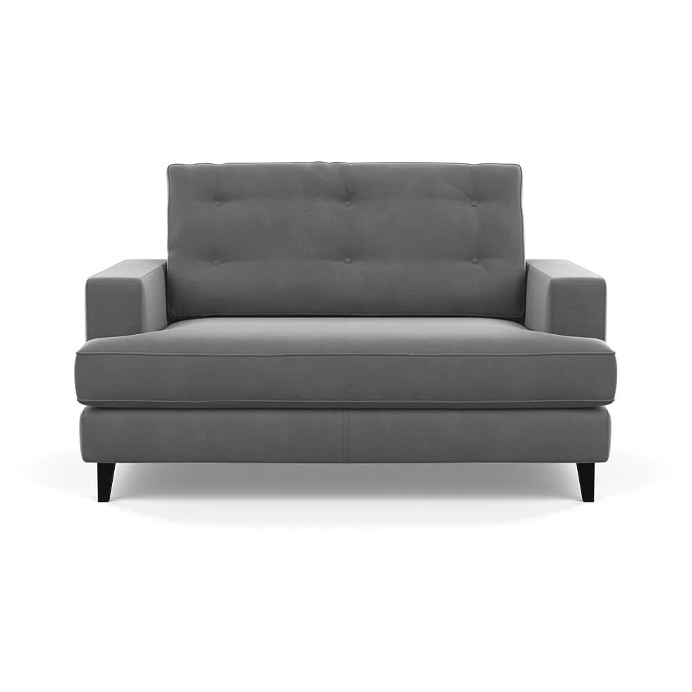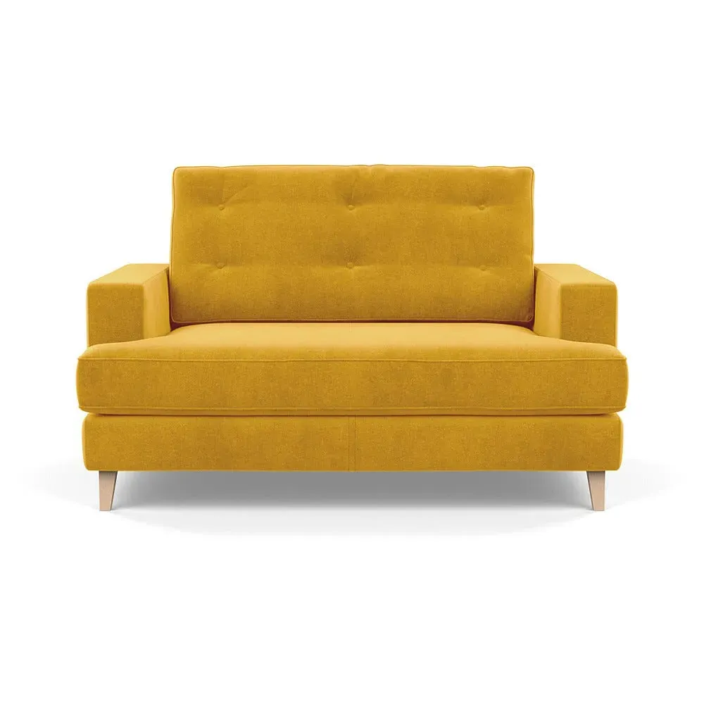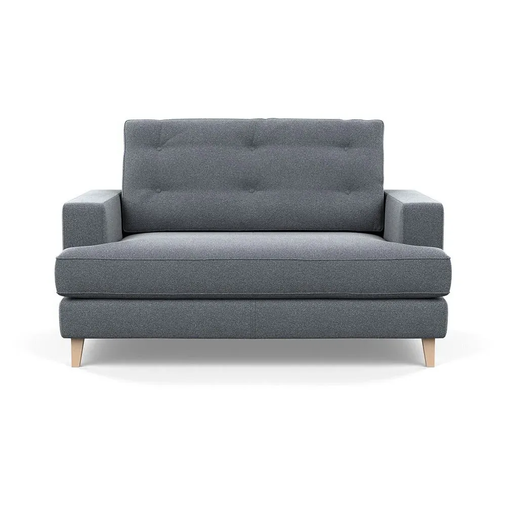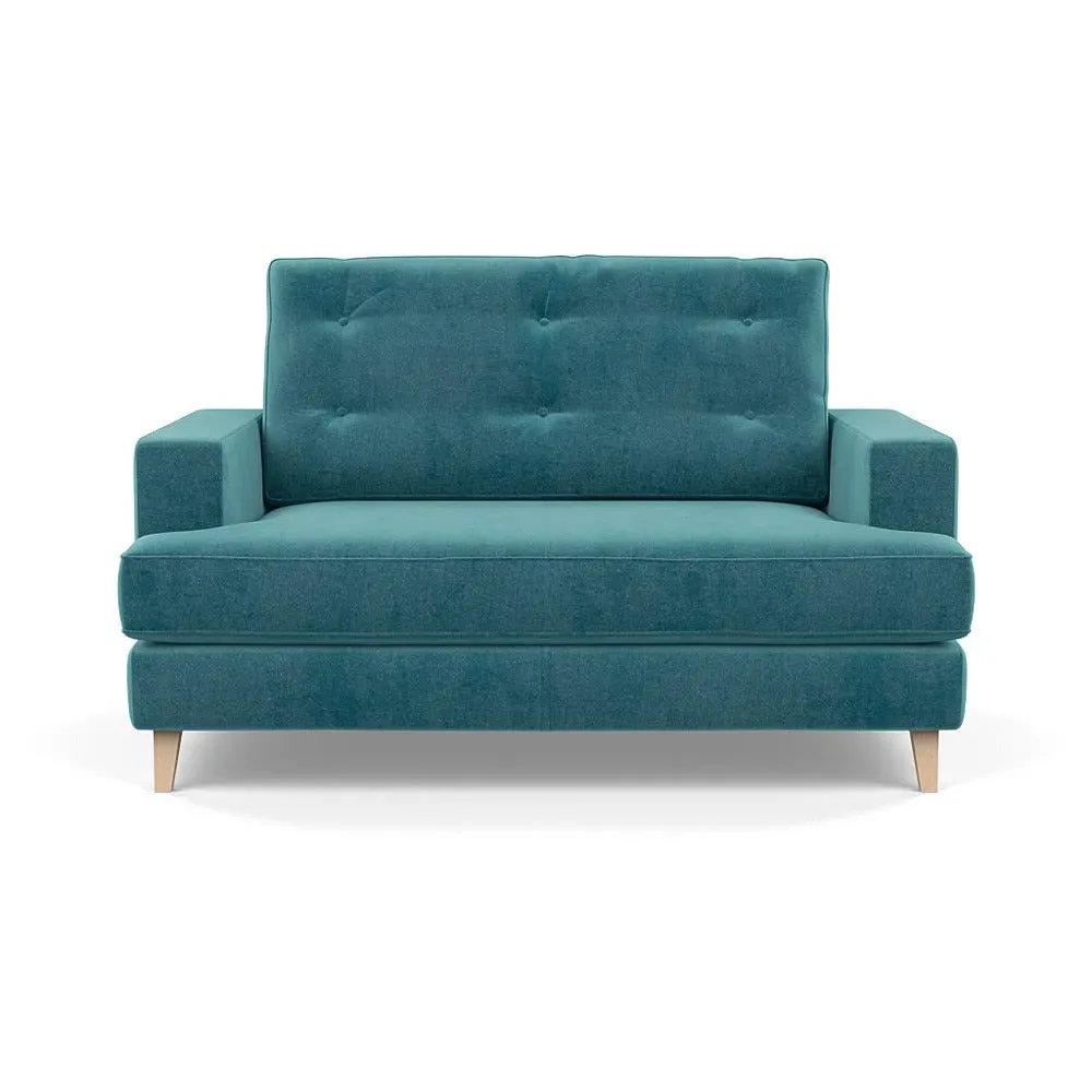 The loveseat combines mid-century design with contemporary comfort, featuring a fully-upholstered frame with matching piping detail. Its supportive padded seat and button-tufted cushion provide lasting comfort, while the bolstered backrest adds extra support. The sturdy birch wood frame offers durability with its webbed seat structure, and the sleek tapered beech wood feet complete the retro-inspired aesthetic.