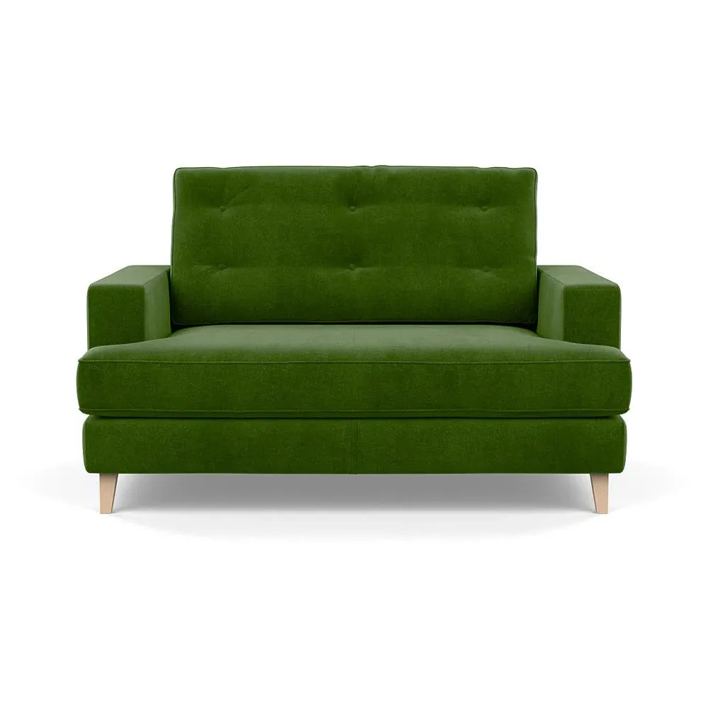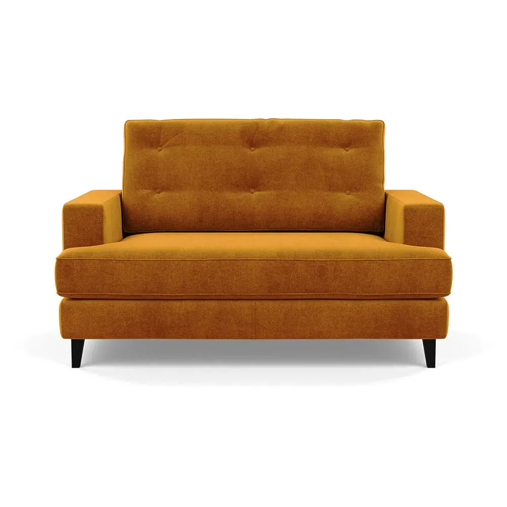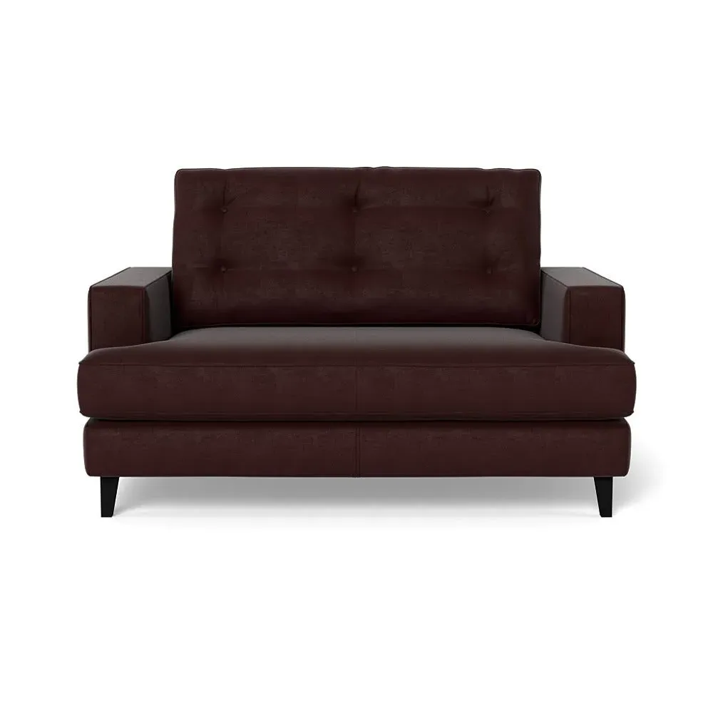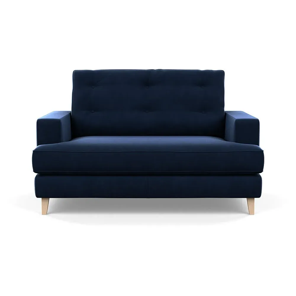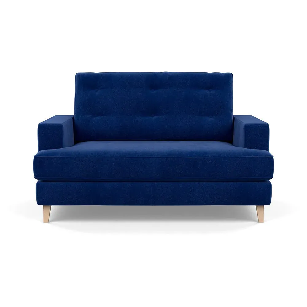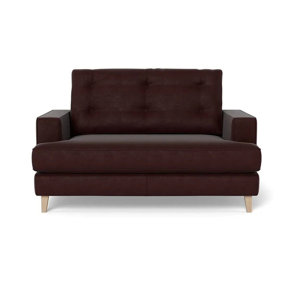 The loveseat combines mid-century design with contemporary comfort, featuring a fully-upholstered frame with matching piping detail. Its supportive padded seat and button-tufted cushion provide lasting comfort, while the bolstered backrest adds extra support. The sturdy birch wood frame offers durability with its webbed seat structure, and the sleek tapered beech wood feet complete the retro-inspired aesthetic.