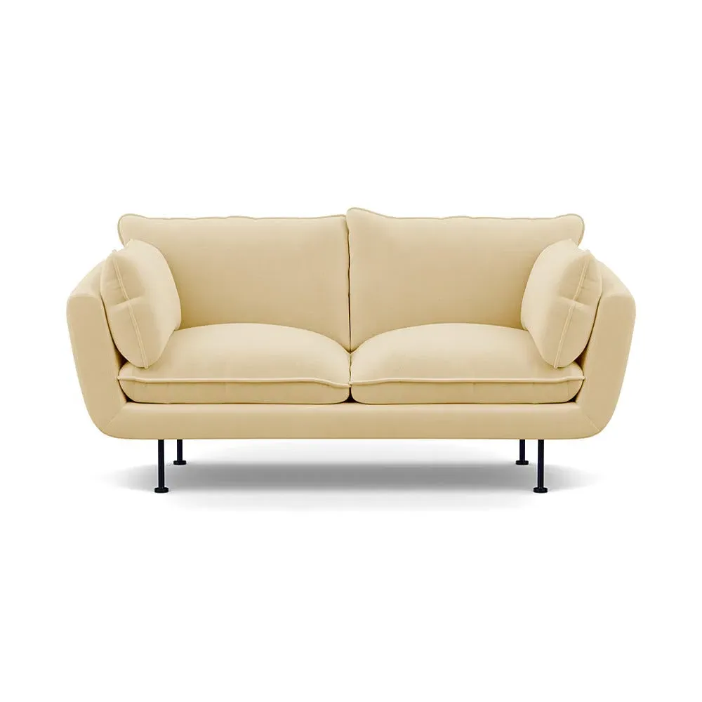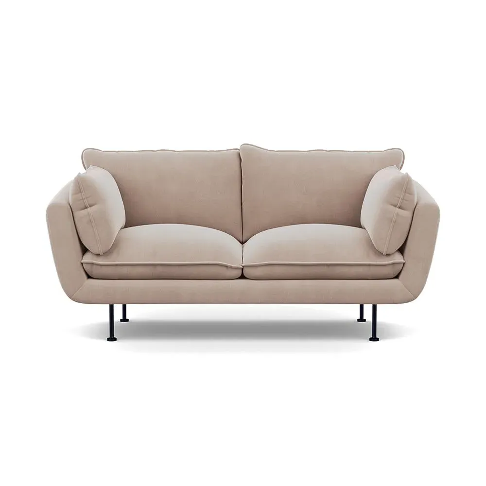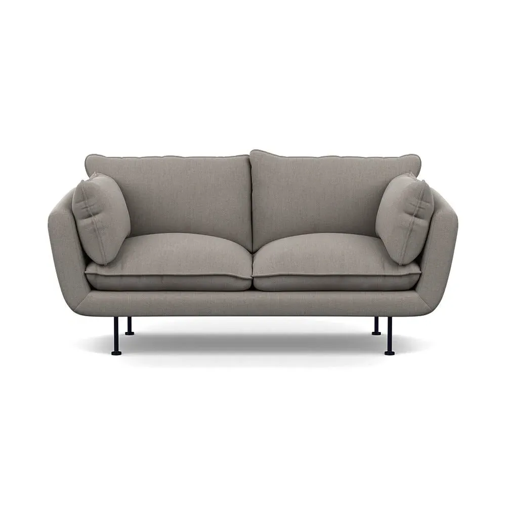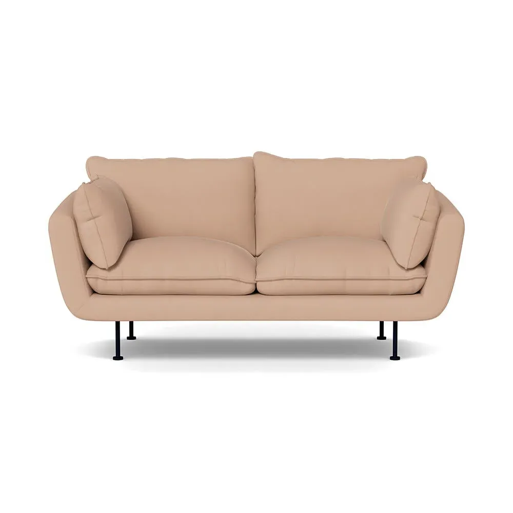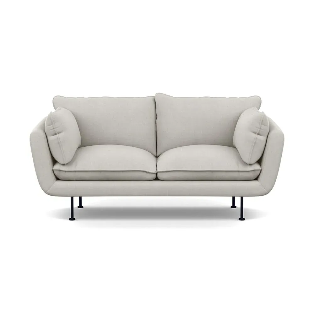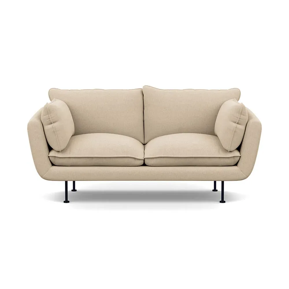 The 2-seater sofa combines comfort with its brushed cotton upholstery, accented by sleek black feet. Its durable frame provides lasting support, while the brushed texture adds softness and visual interest. The compact design suits smaller spaces, and the metal base ensures stable support with a contemporary finish.