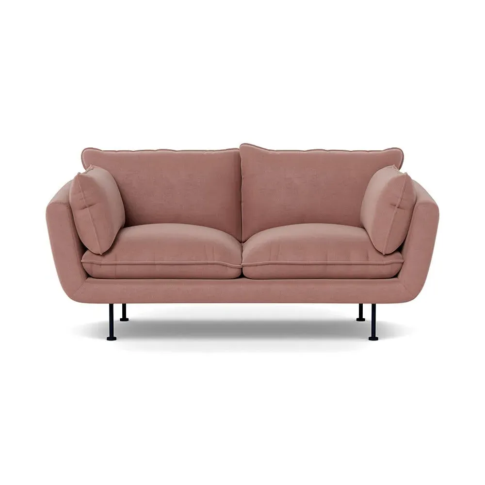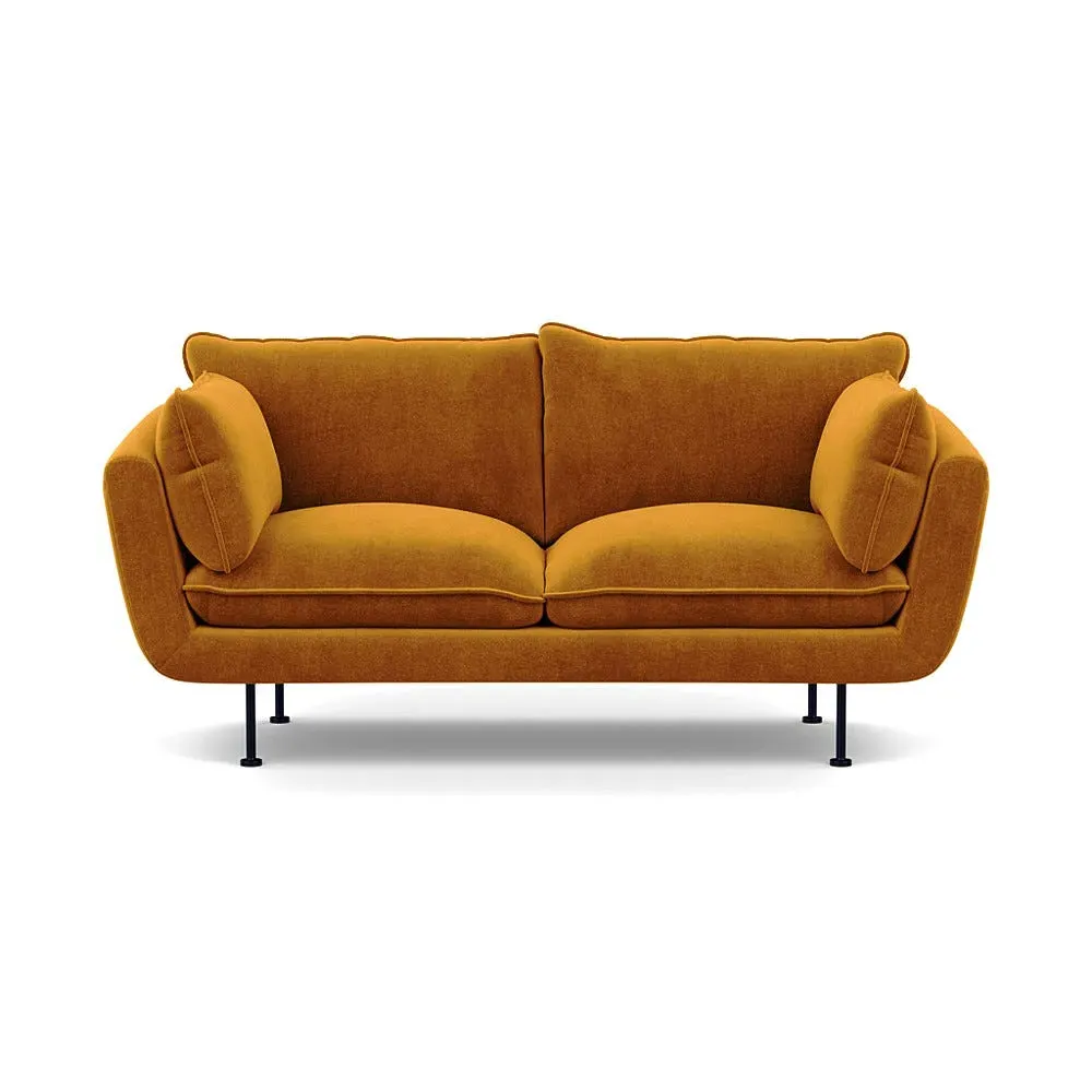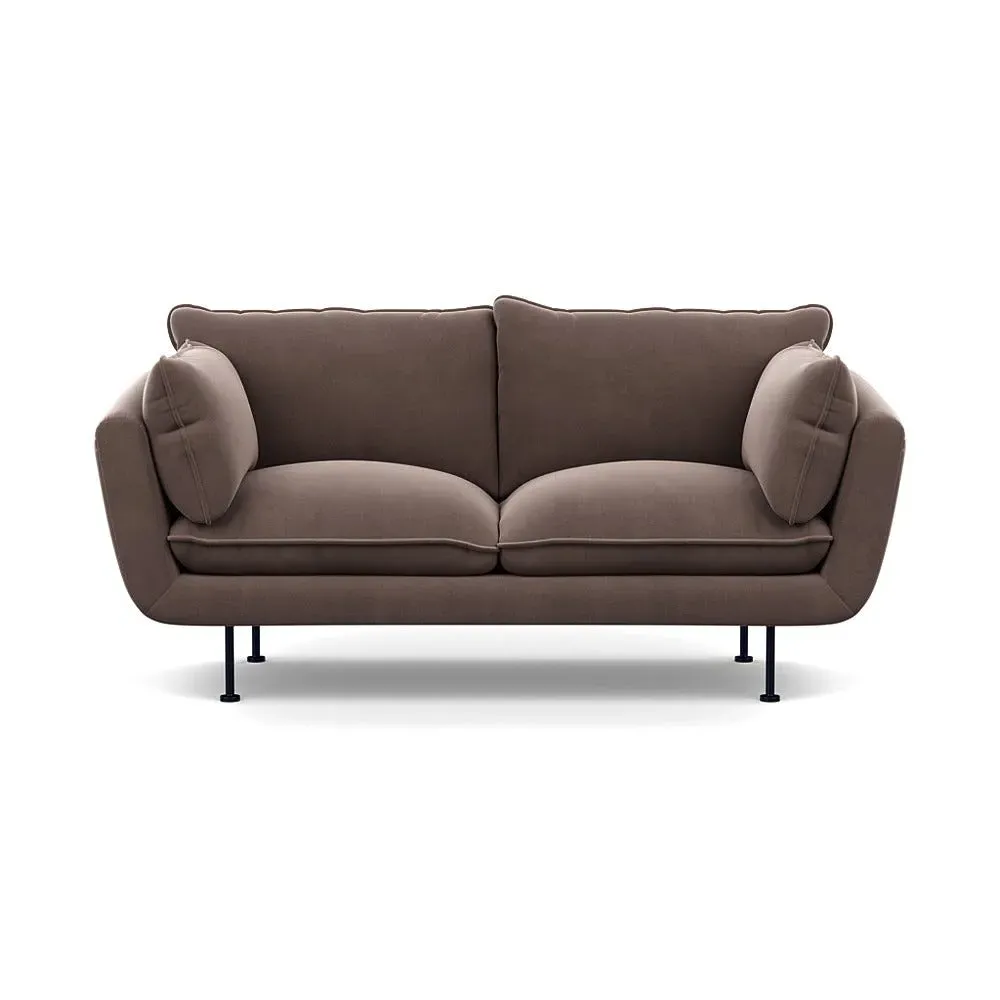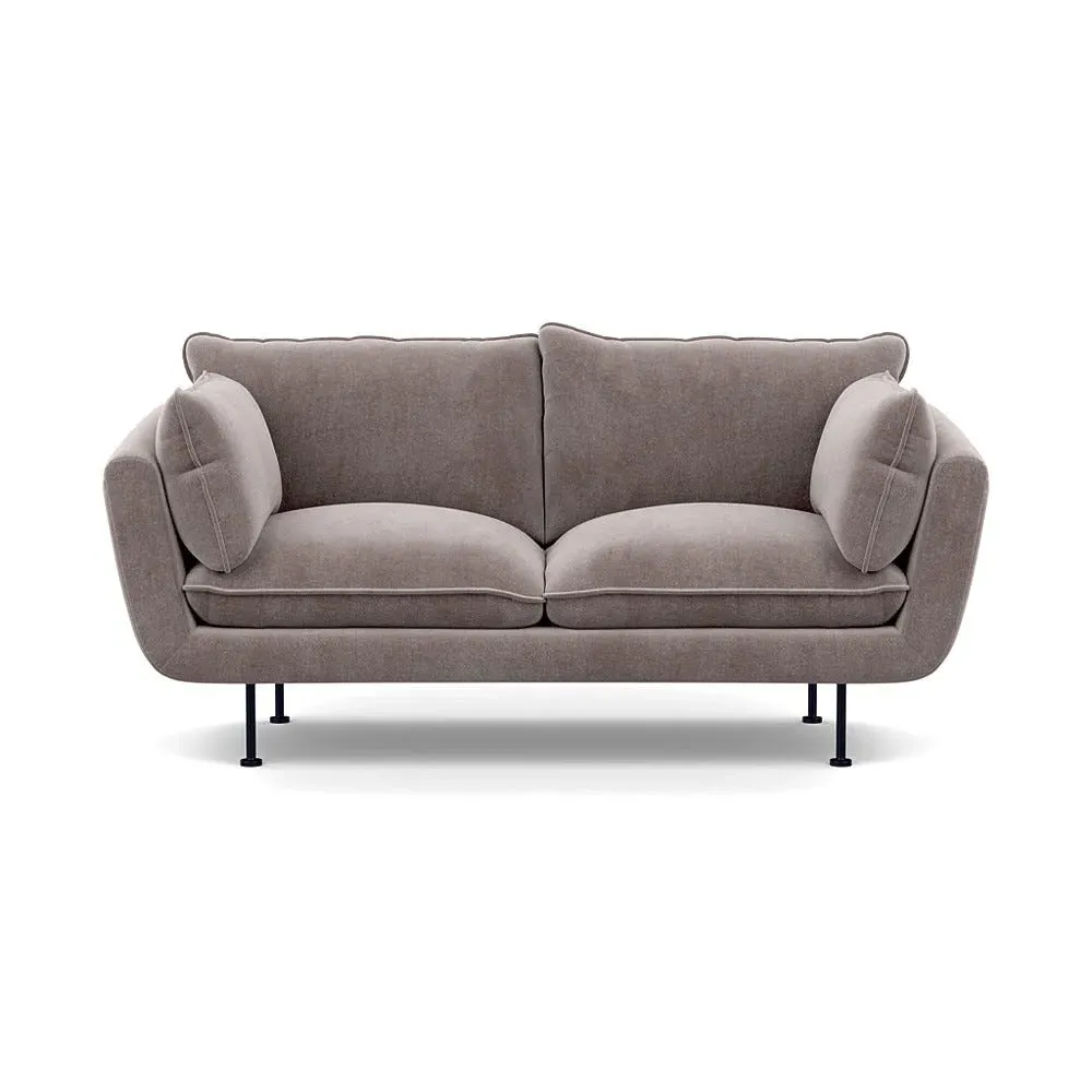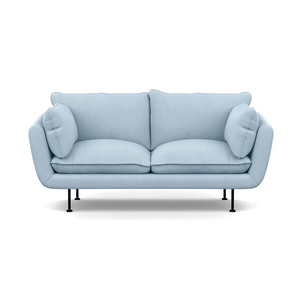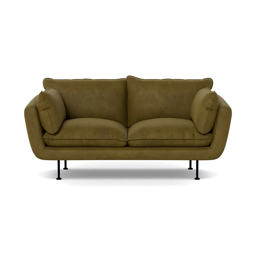 The 2-seater sofa combines comfort with its brushed cotton upholstery, accented by sleek black feet. Its durable frame provides lasting support, while the brushed texture adds softness and visual interest. The compact design suits smaller spaces, and the metal base ensures stable support with a contemporary finish.