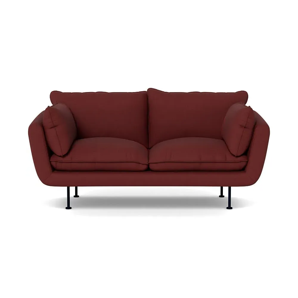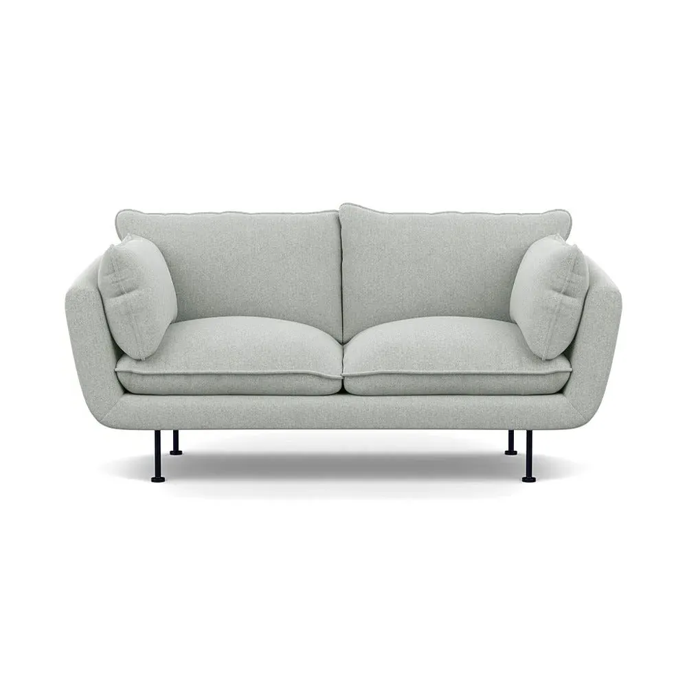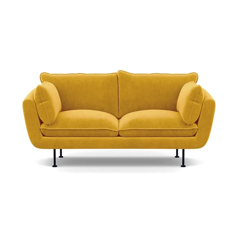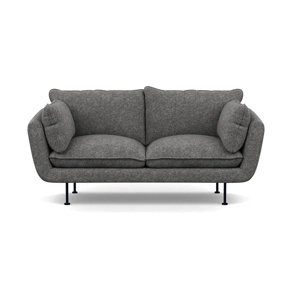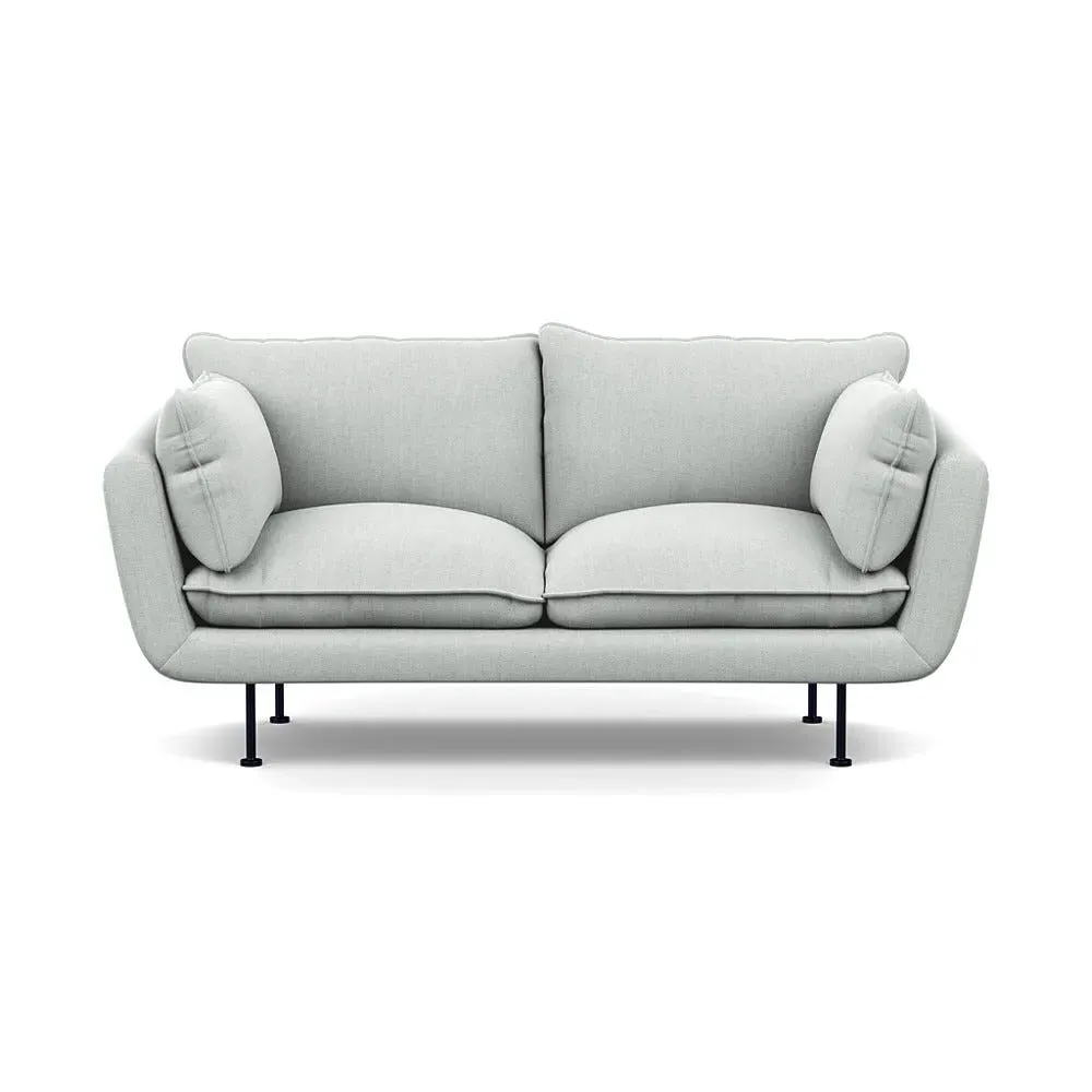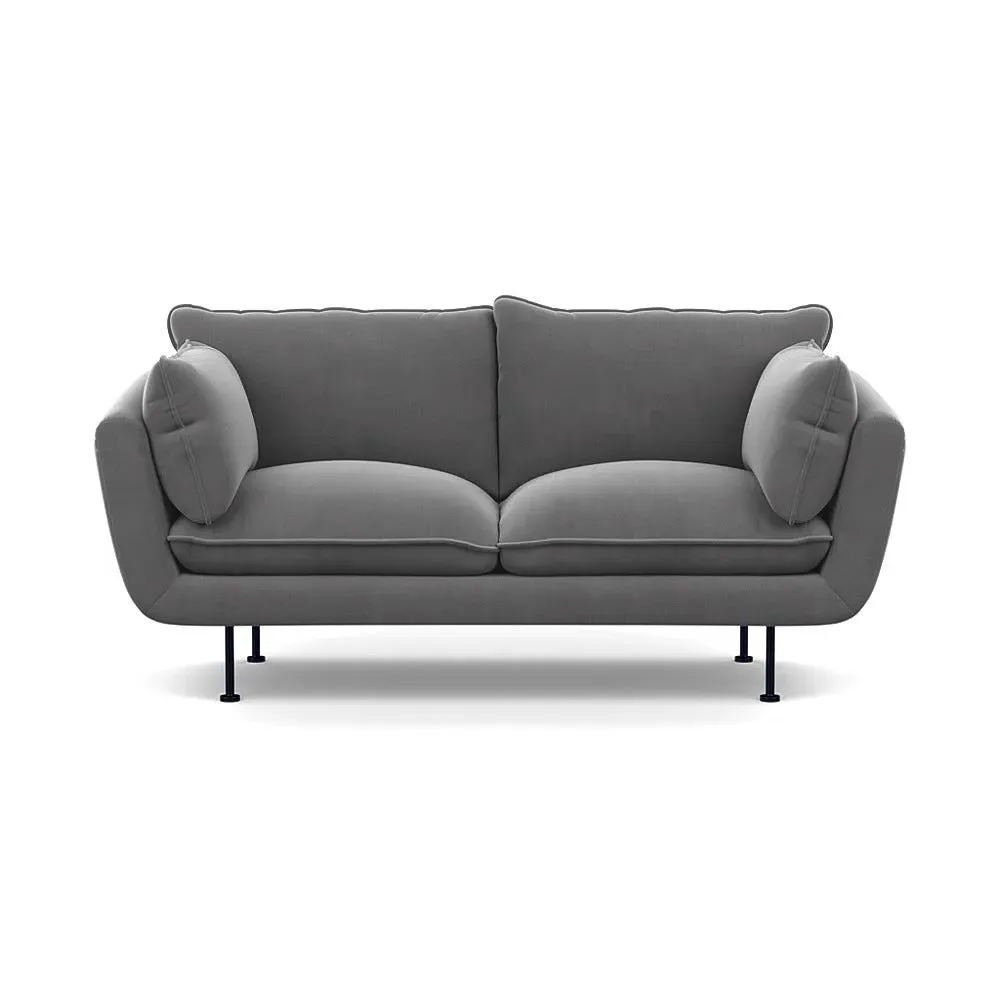 The 2-seater sofa combines comfort with its brushed cotton upholstery, accented by sleek black feet. Its durable frame provides lasting support, while the brushed texture adds softness and visual interest. The compact design suits smaller spaces, and the metal base ensures stable support with a contemporary finish.