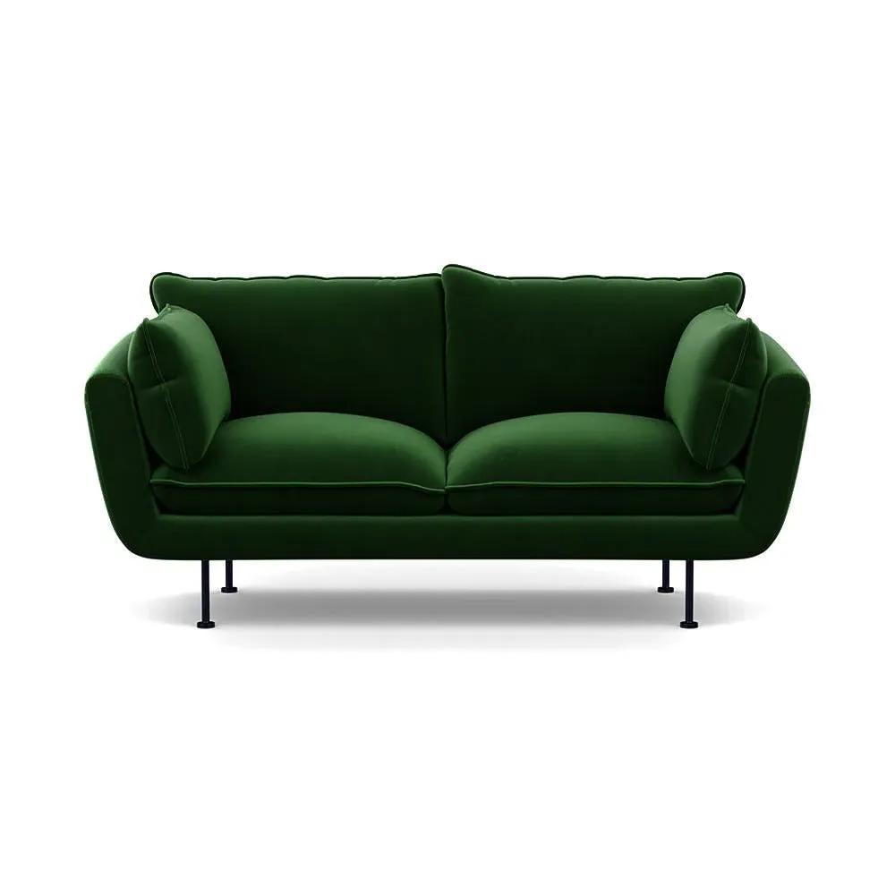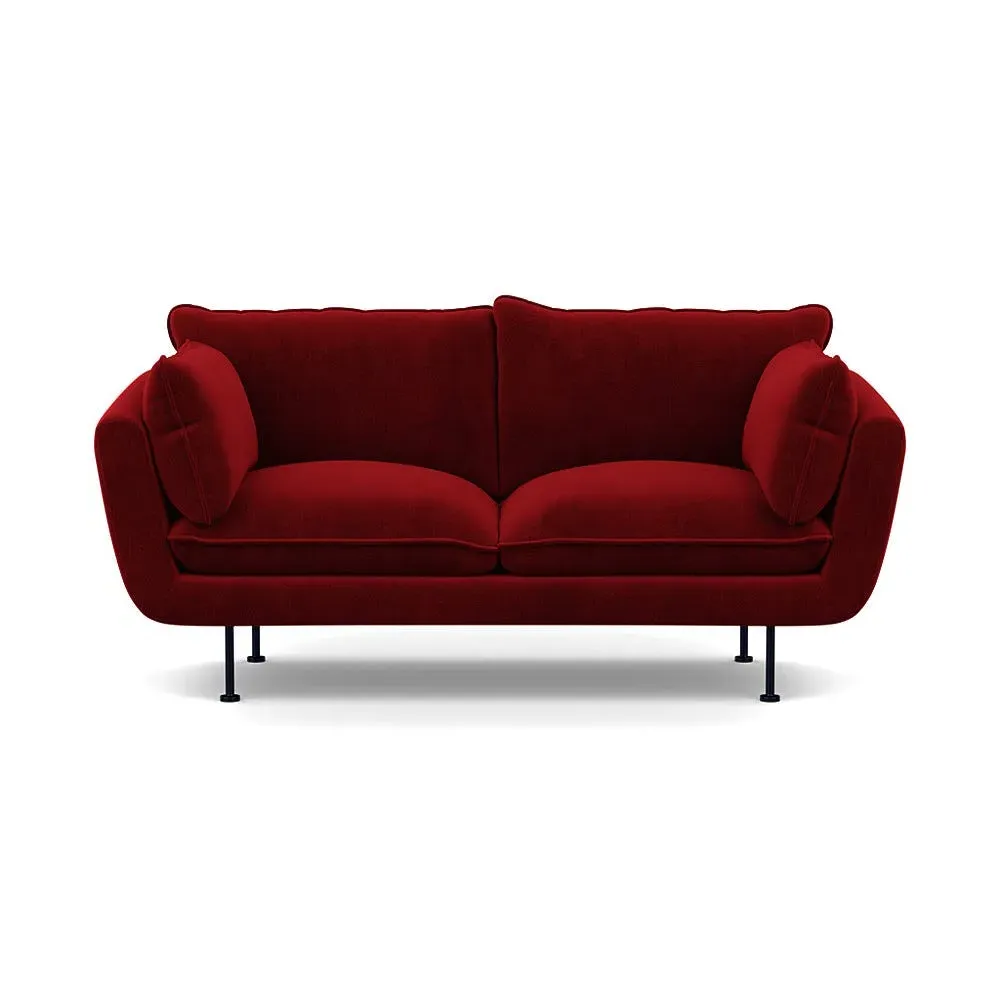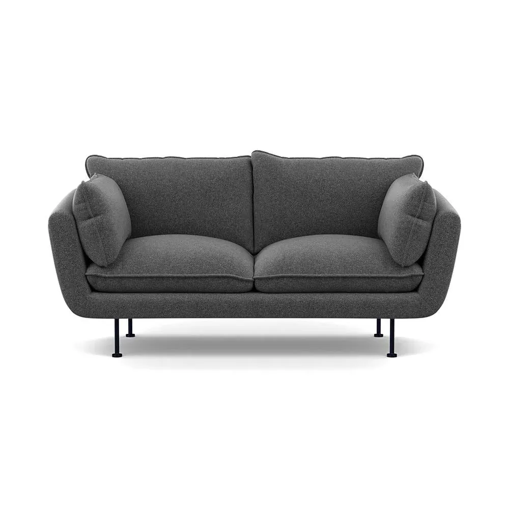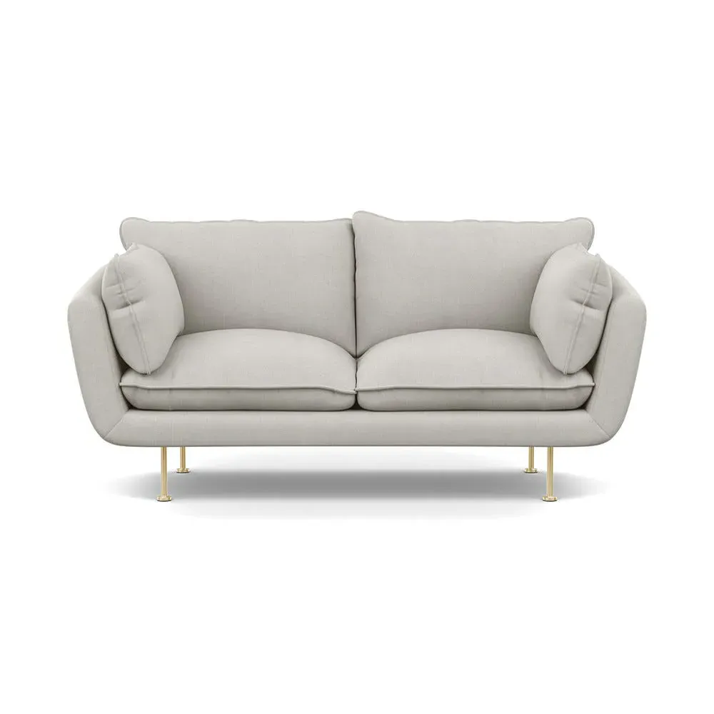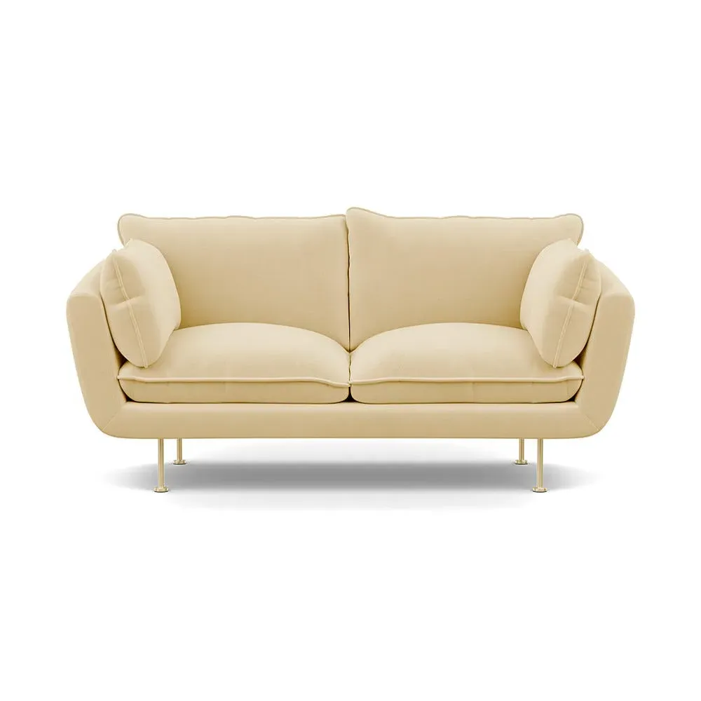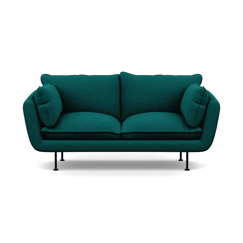 The 2-seater sofa combines comfort with its brushed cotton upholstery, accented by sleek black feet. Its durable frame provides lasting support, while the brushed texture adds softness and visual interest. The compact design suits smaller spaces, and the metal base ensures stable support with a contemporary finish.