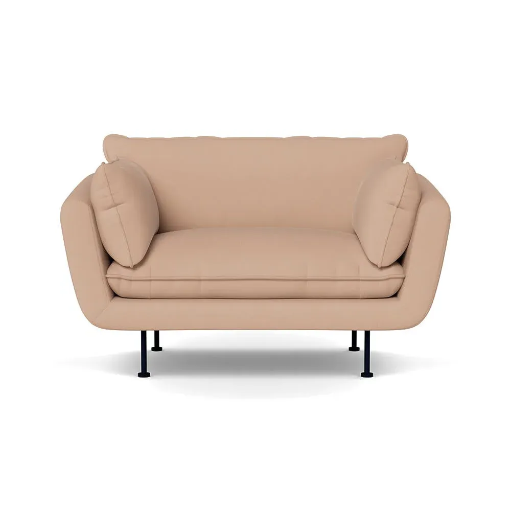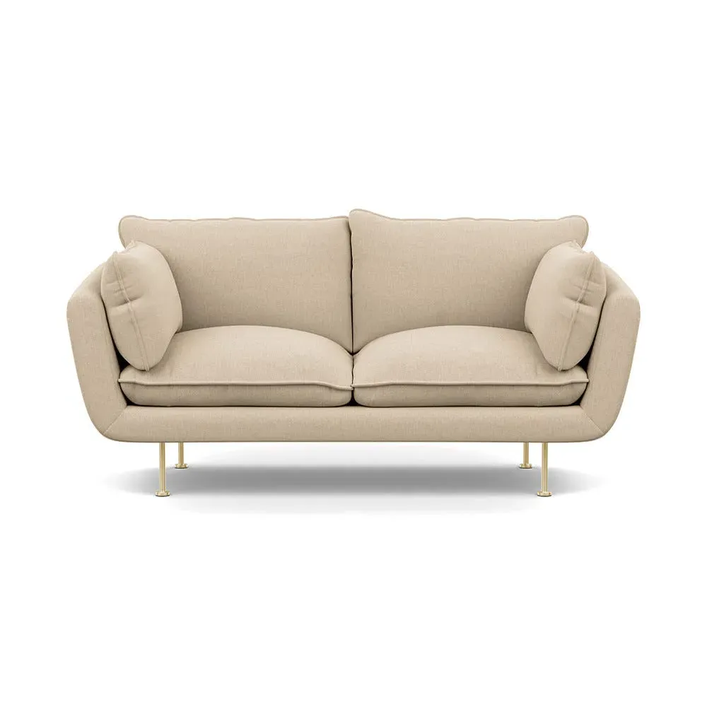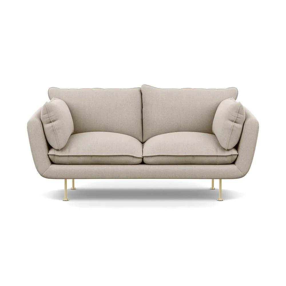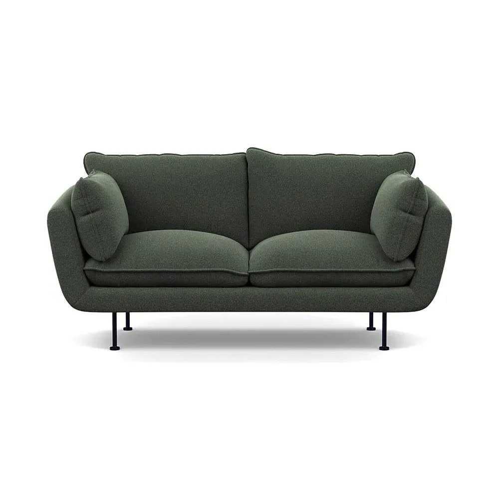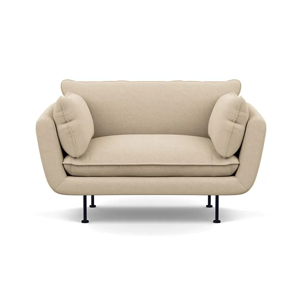 The 2-seater sofa combines comfort with its brushed cotton upholstery, accented by sleek black feet. Its durable frame provides lasting support, while the brushed texture adds softness and visual interest. The compact design suits smaller spaces, and the metal base ensures stable support with a contemporary finish.