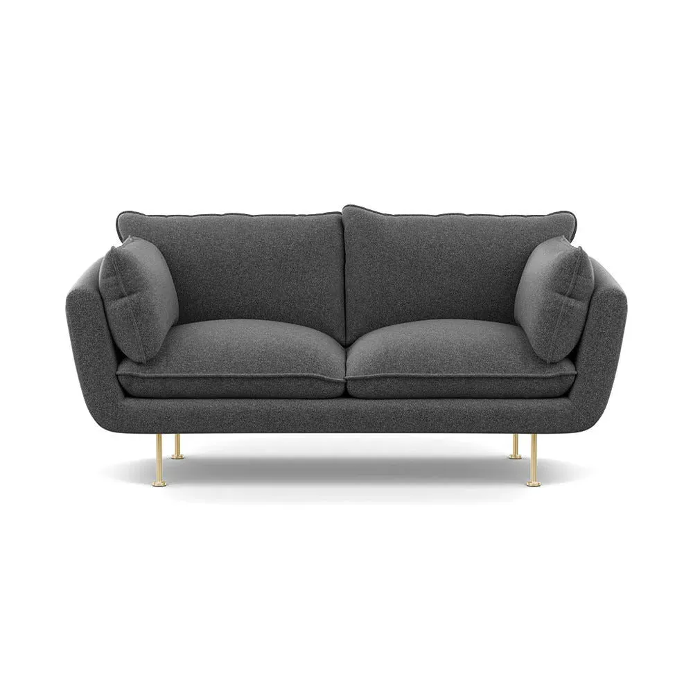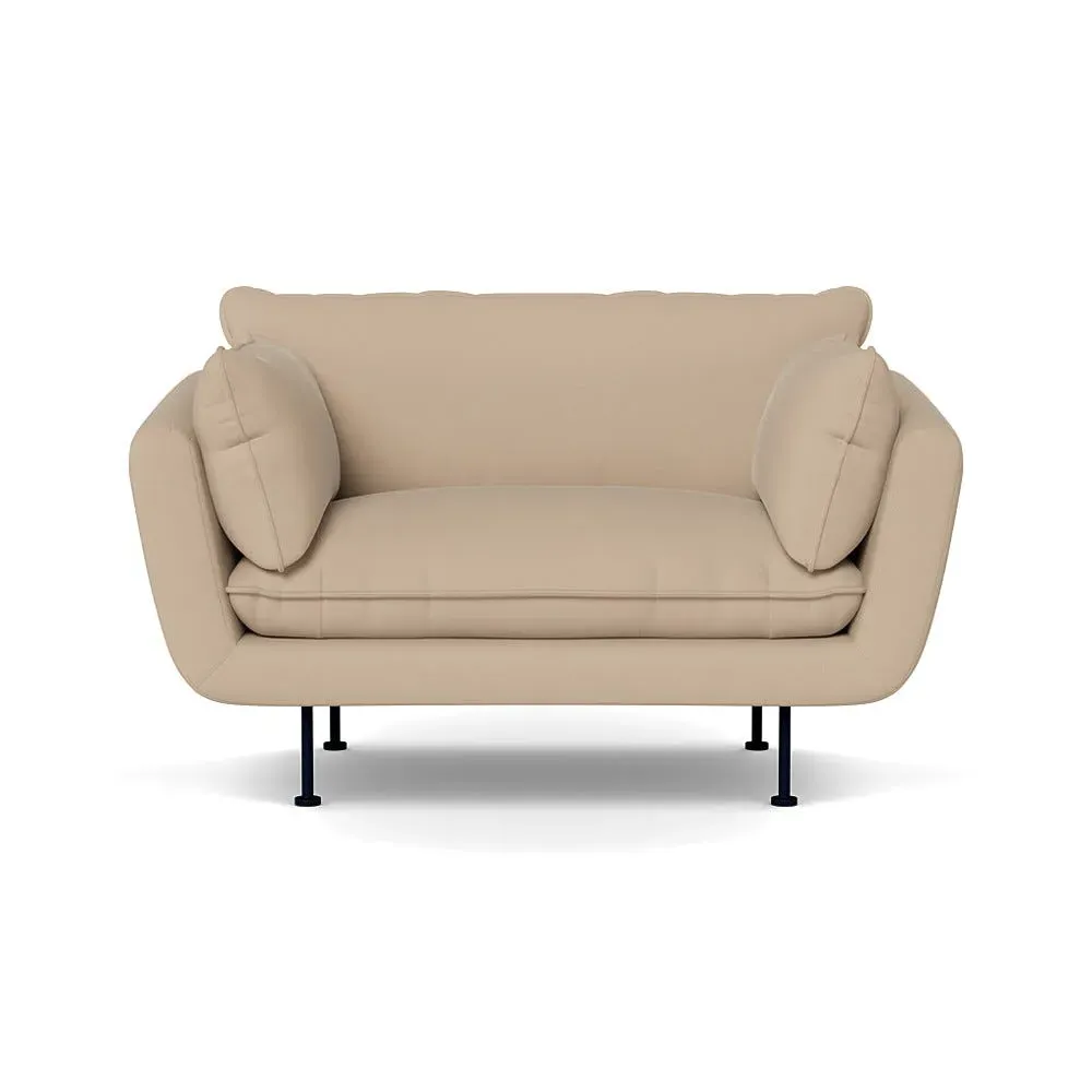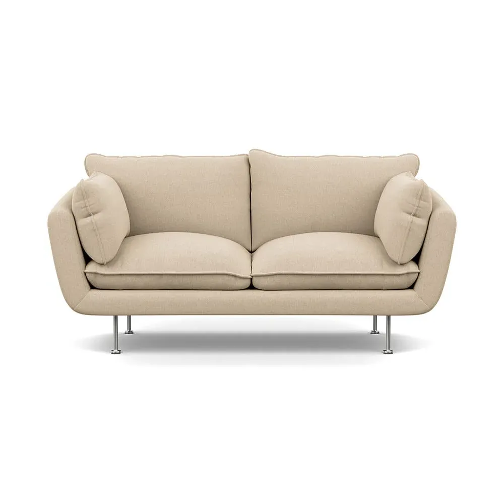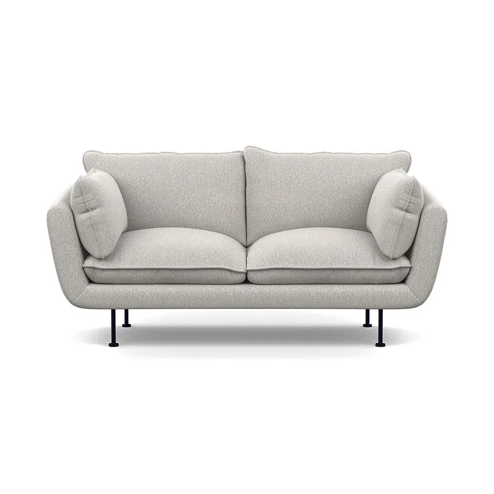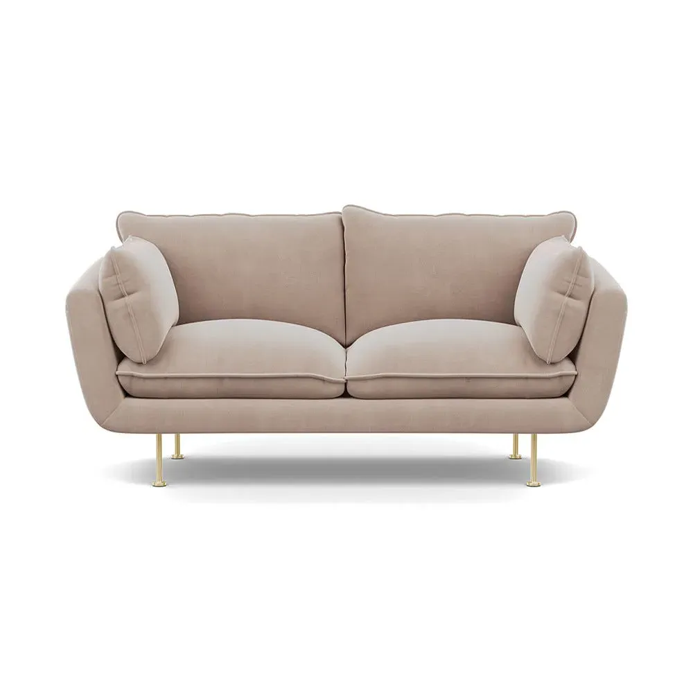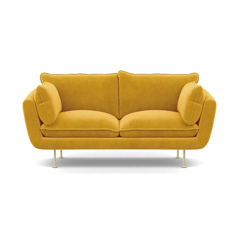 The 2-seater sofa combines comfort with its brushed cotton upholstery, accented by sleek black feet. Its durable frame provides lasting support, while the brushed texture adds softness and visual interest. The compact design suits smaller spaces, and the metal base ensures stable support with a contemporary finish.