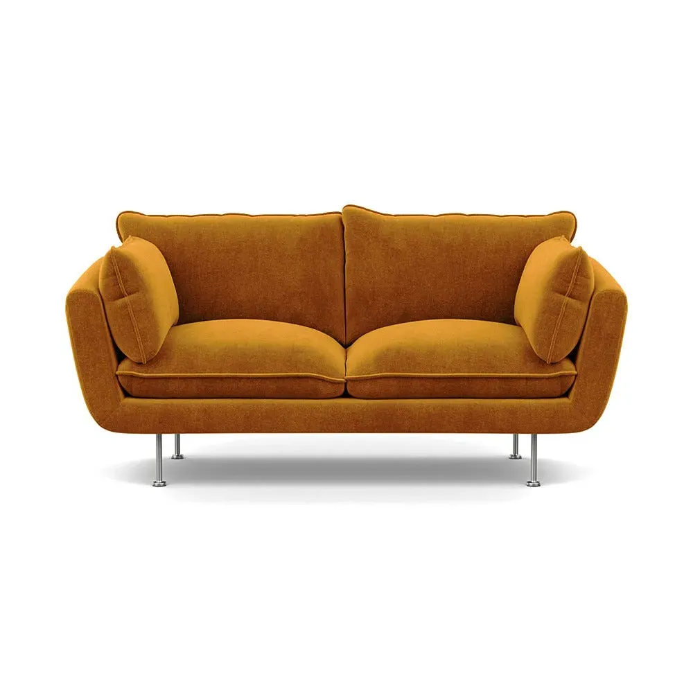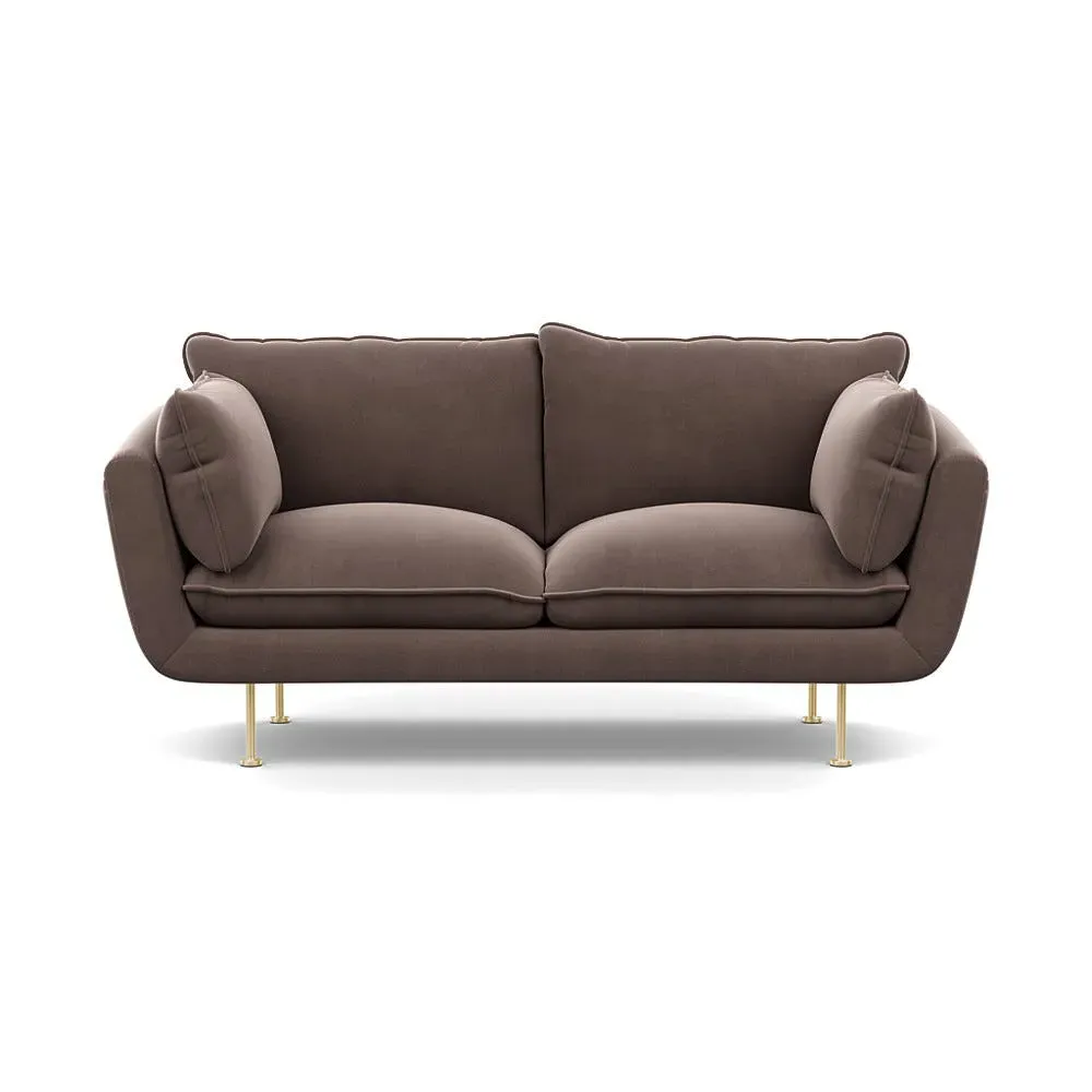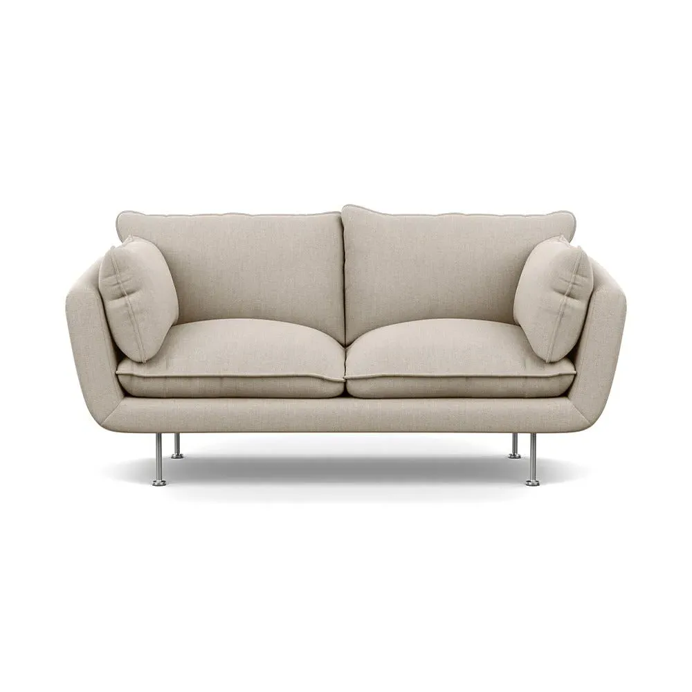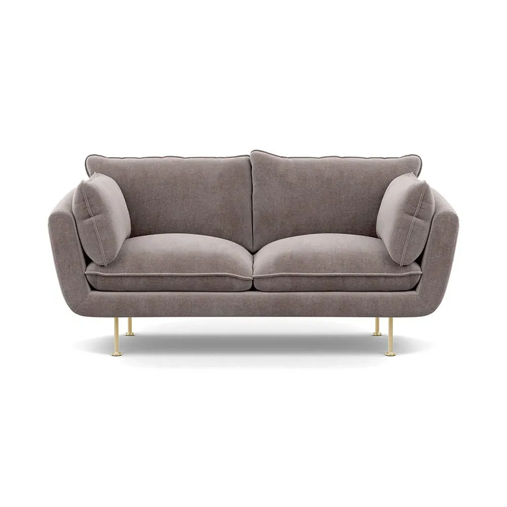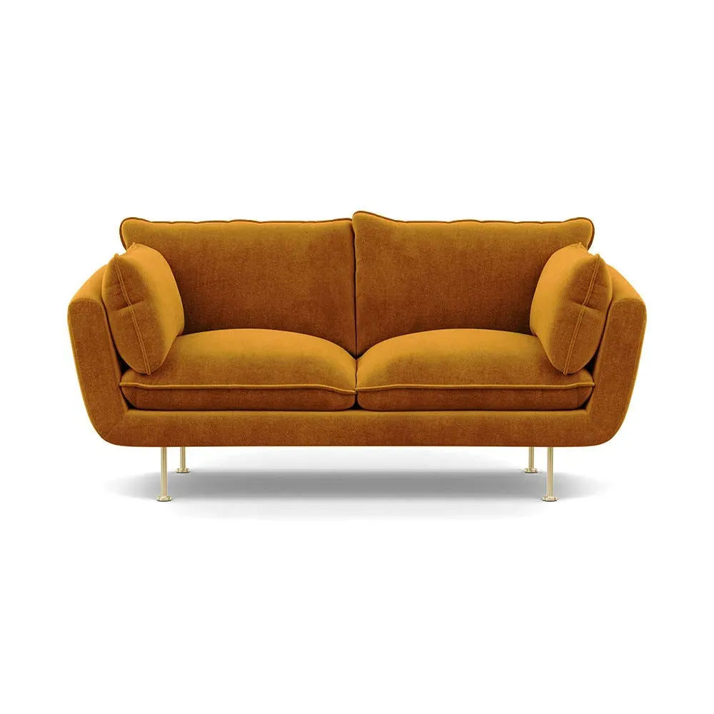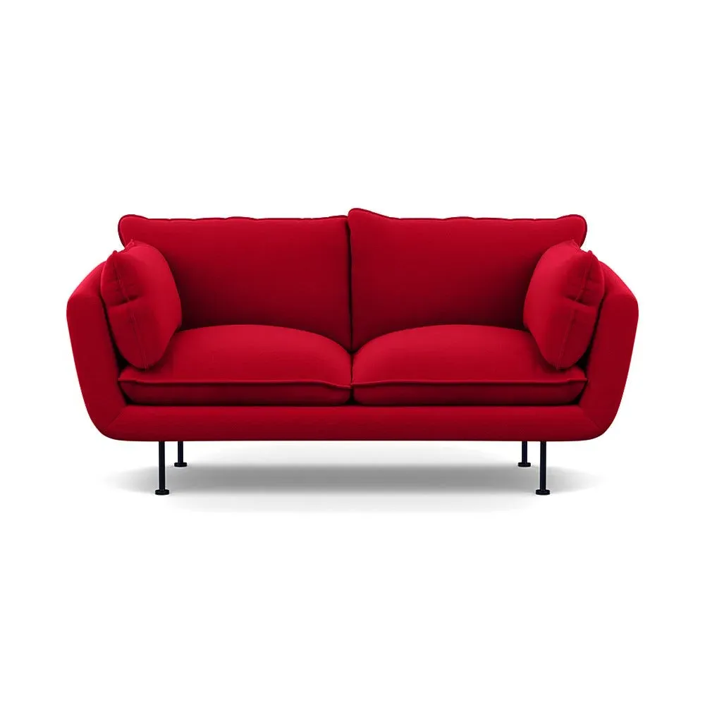 The 2-seater sofa combines comfort with its brushed cotton upholstery, accented by sleek black feet. Its durable frame provides lasting support, while the brushed texture adds softness and visual interest. The compact design suits smaller spaces, and the metal base ensures stable support with a contemporary finish.