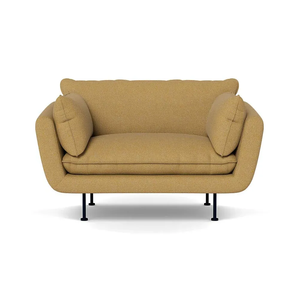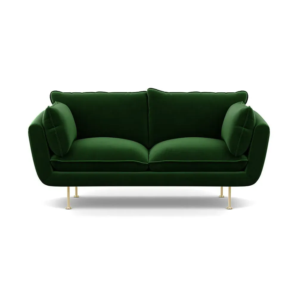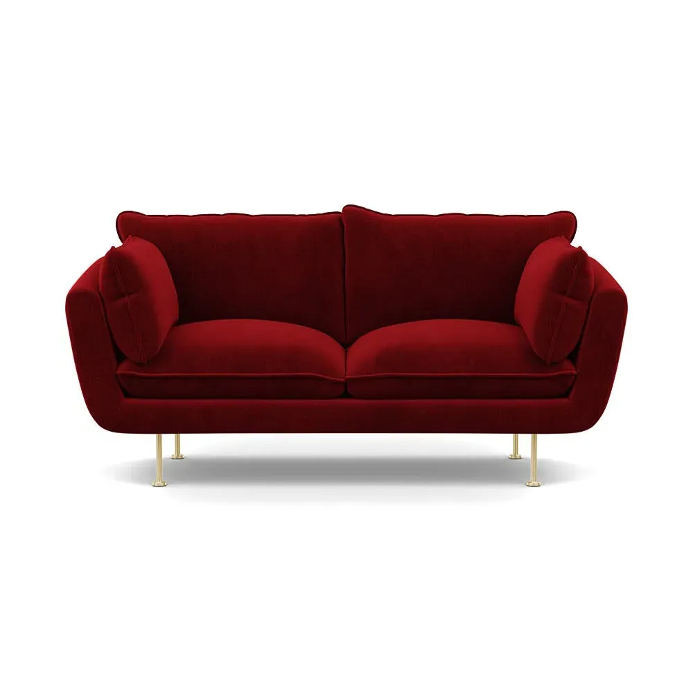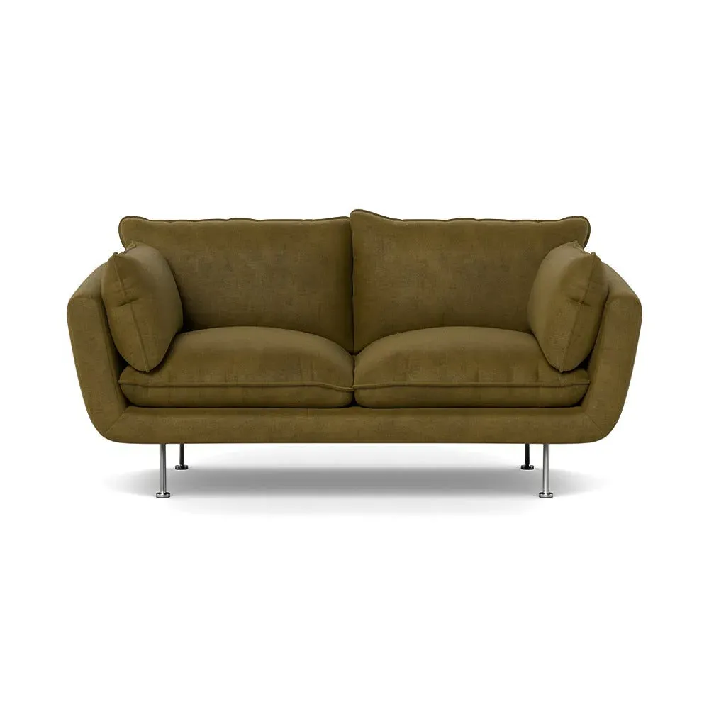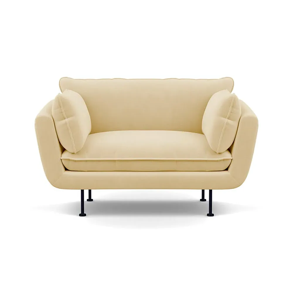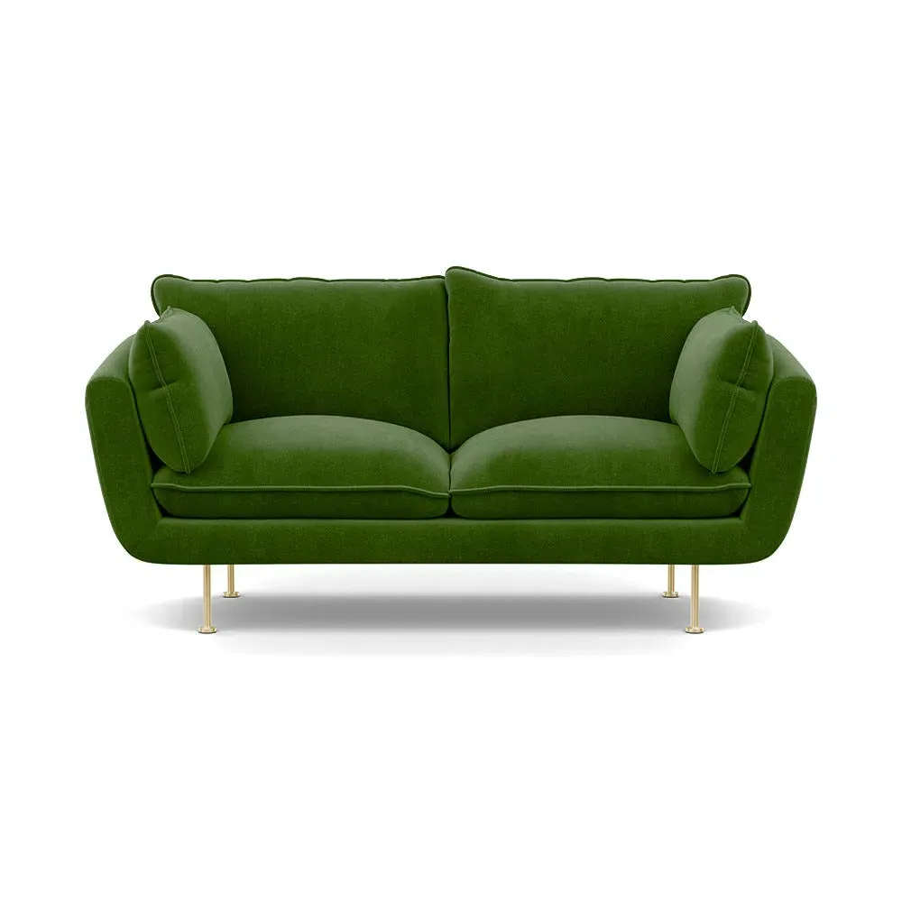 The 2-seater sofa combines comfort with its brushed cotton upholstery, accented by sleek black feet. Its durable frame provides lasting support, while the brushed texture adds softness and visual interest. The compact design suits smaller spaces, and the metal base ensures stable support with a contemporary finish.