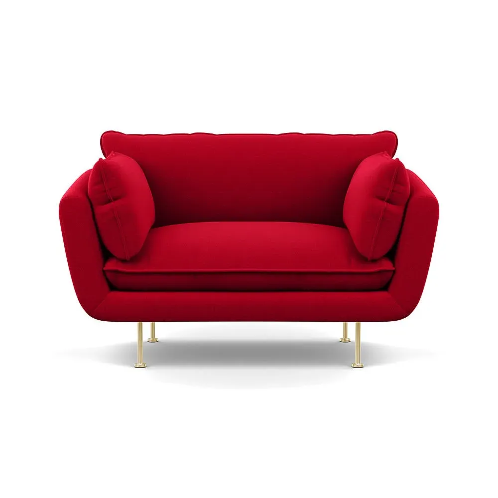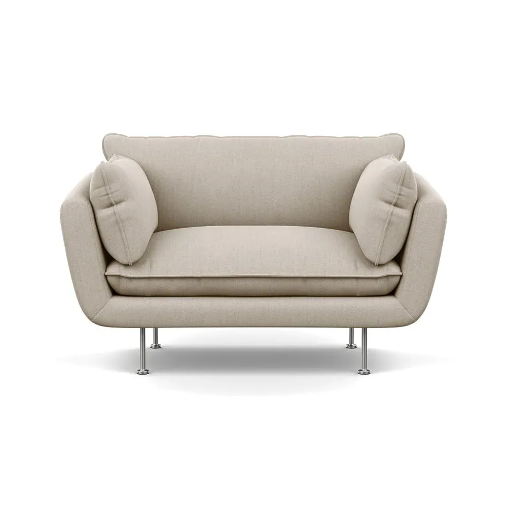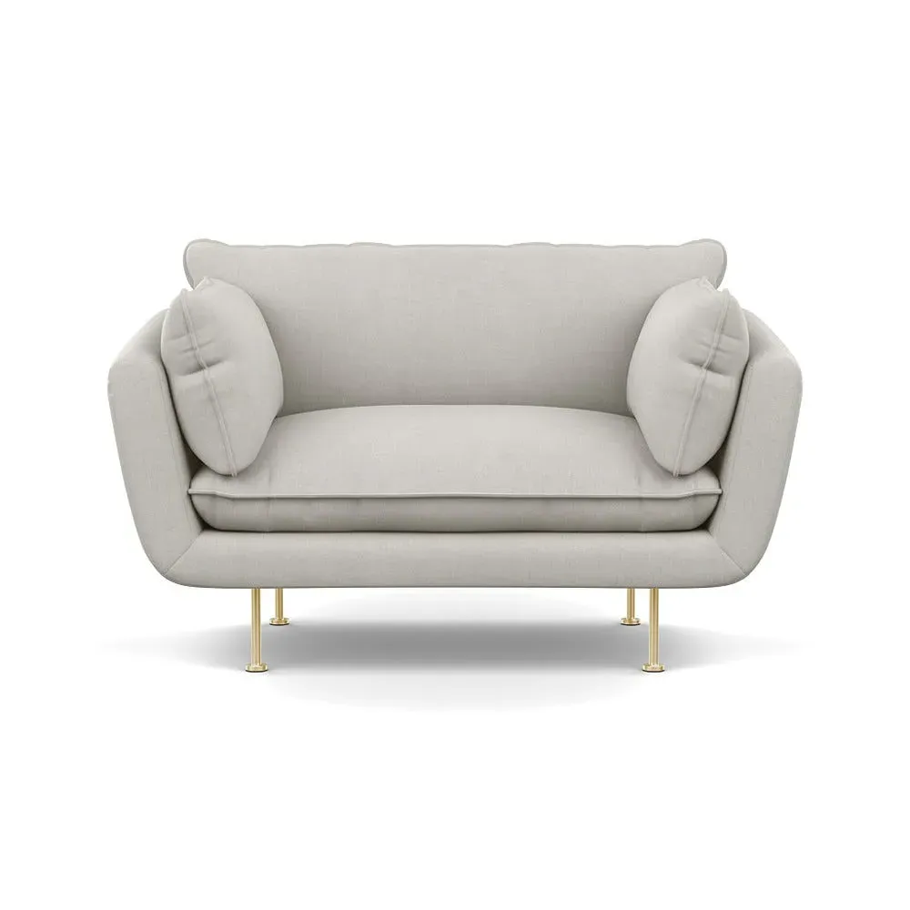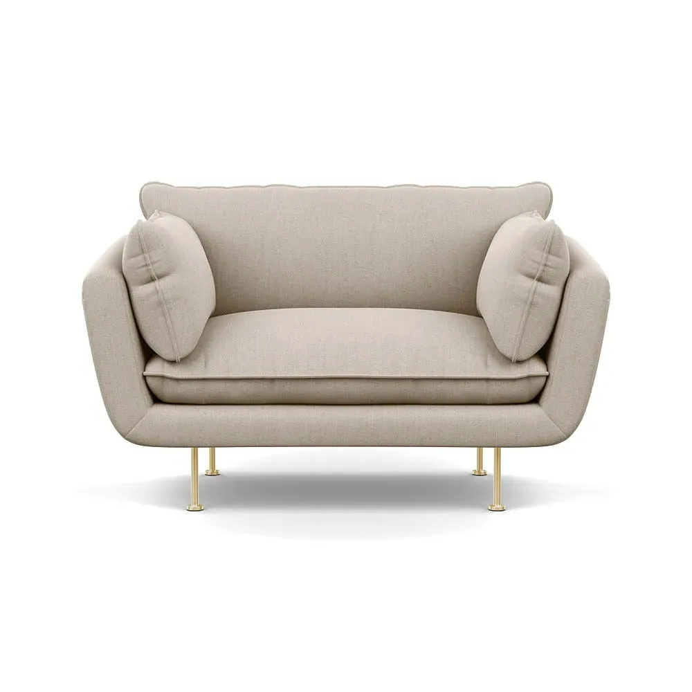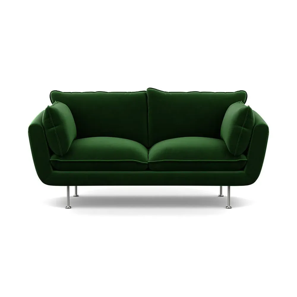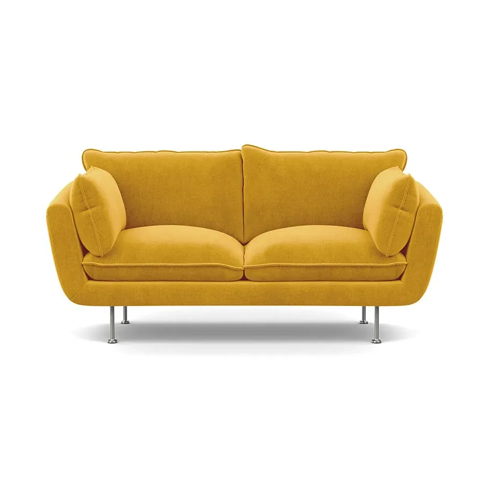 The 2-seater sofa combines comfort with its brushed cotton upholstery, accented by sleek black feet. Its durable frame provides lasting support, while the brushed texture adds softness and visual interest. The compact design suits smaller spaces, and the metal base ensures stable support with a contemporary finish.