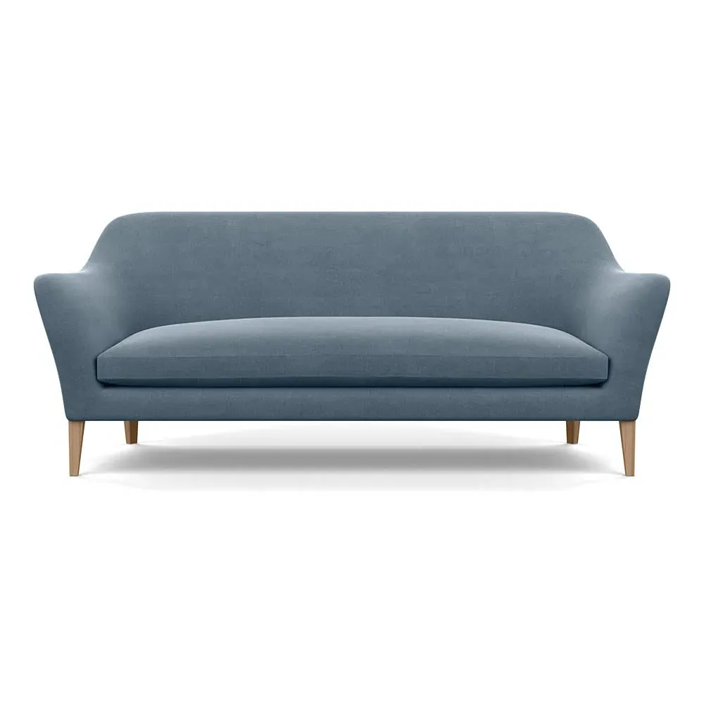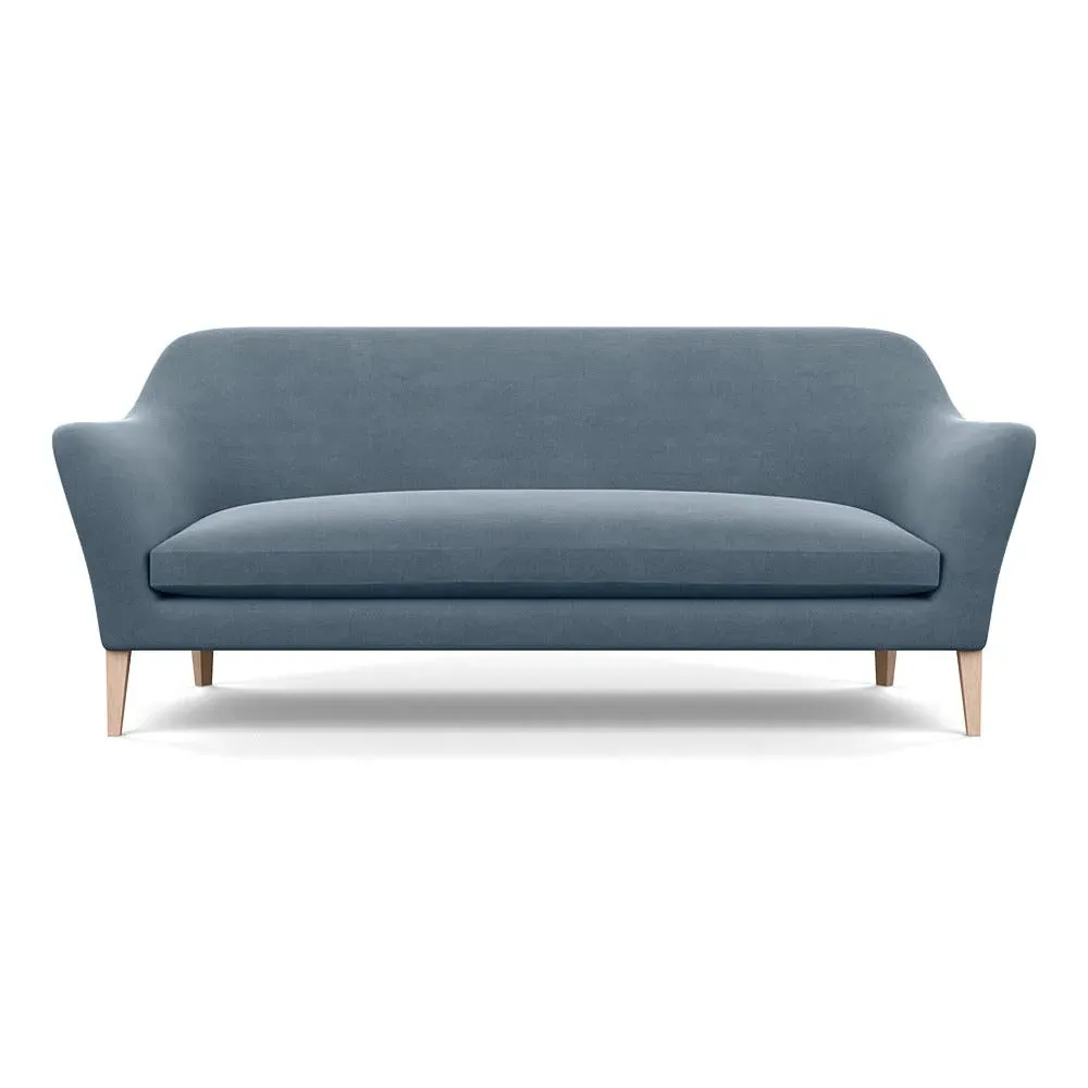 The Wallis Sofa combines compact design with generous proportions, featuring classic shapes that echo timeless style. Handcrafted in Britain, its hardwood beech and birch frame provides lasting durability, while the black ash feet add contemporary contrast. The brushed cotton upholstery offers soft texture and comfort. Skilful construction ensures both structural integrity and refined aesthetics.