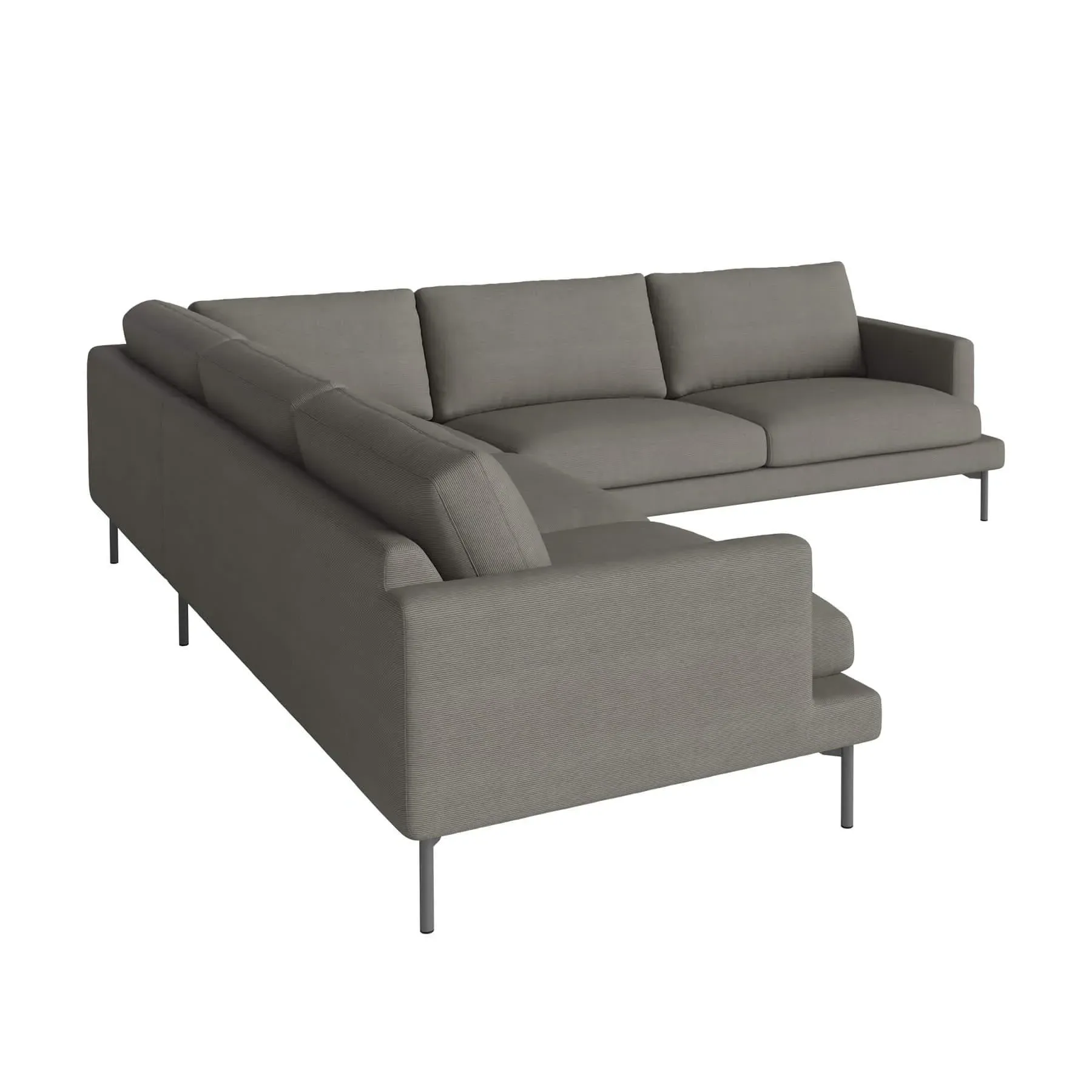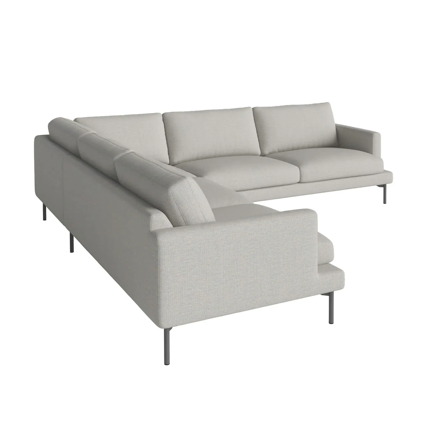 The corner sofa features a lavish combination of down and foam filling that delivers superior comfort and support. Its thoughtfully integrated corner layout maximizes lounging space, while the removable covers provide easy care and versatility. The grey lacquered steel construction ensures lasting durability with contemporary style.