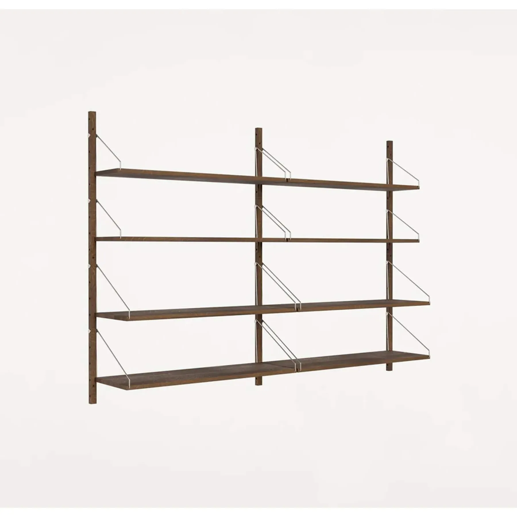 Immerse yourself in the timeless elegance of the Frama Shelf Library, a refined interpretation of the mid-century modern shelving tradition. Developed by Kim Richardt for Frama, this rail-mounted shelving system pays homage to Scandinavian cabinet makers of the early 1930s while introducing its own distinctive design language. Crafted with versatility in mind, the Shelf Library System offers an infinitely modular structure, seamlessly adapting to any space with its flexible configuration. Designed for both aesthetic appeal and practicality, each shelf comes ready to mount and can hold up to 15 kg, depending on the wall material and mounting technique. Available in three stunning finishes, natural oak, dark oak, and stainless steel this shelving system transcends mere functionality to become a statement piece in your home or workspace. Elevate your interior with the understated sophistication of the Frama Shelf Library, where timeless design meets modern versatility.
