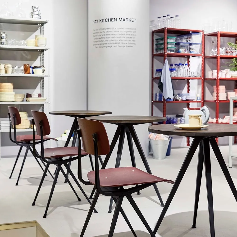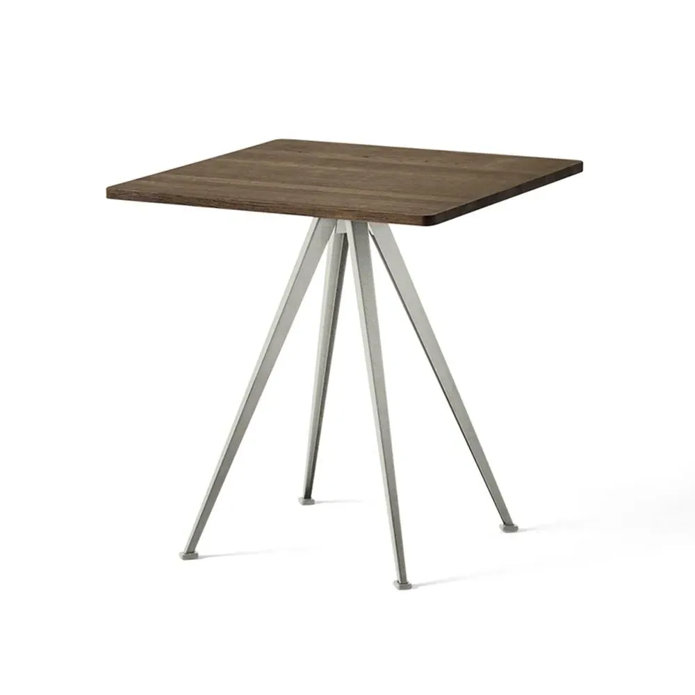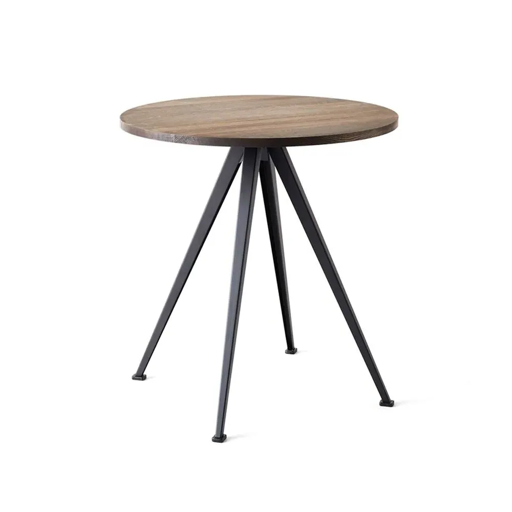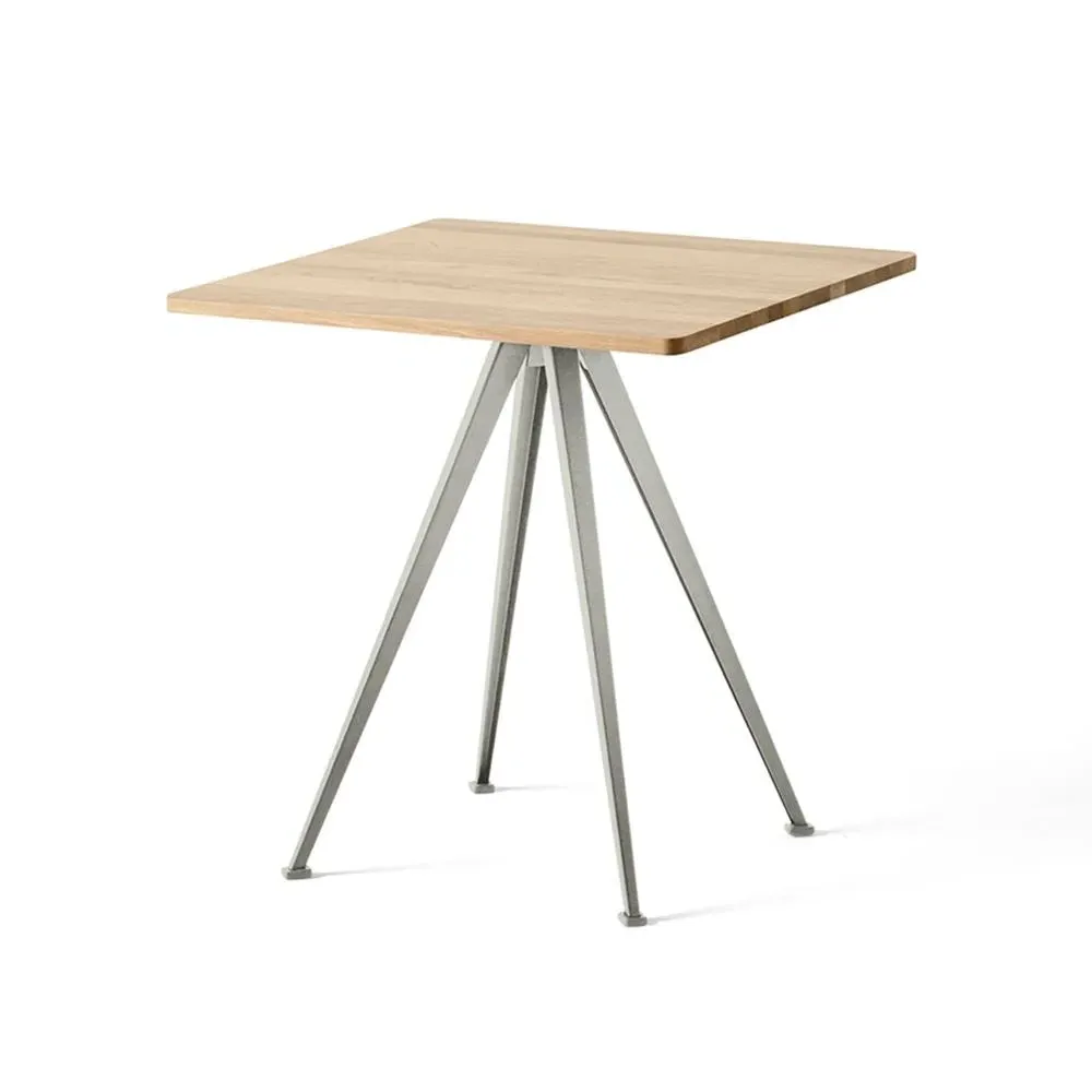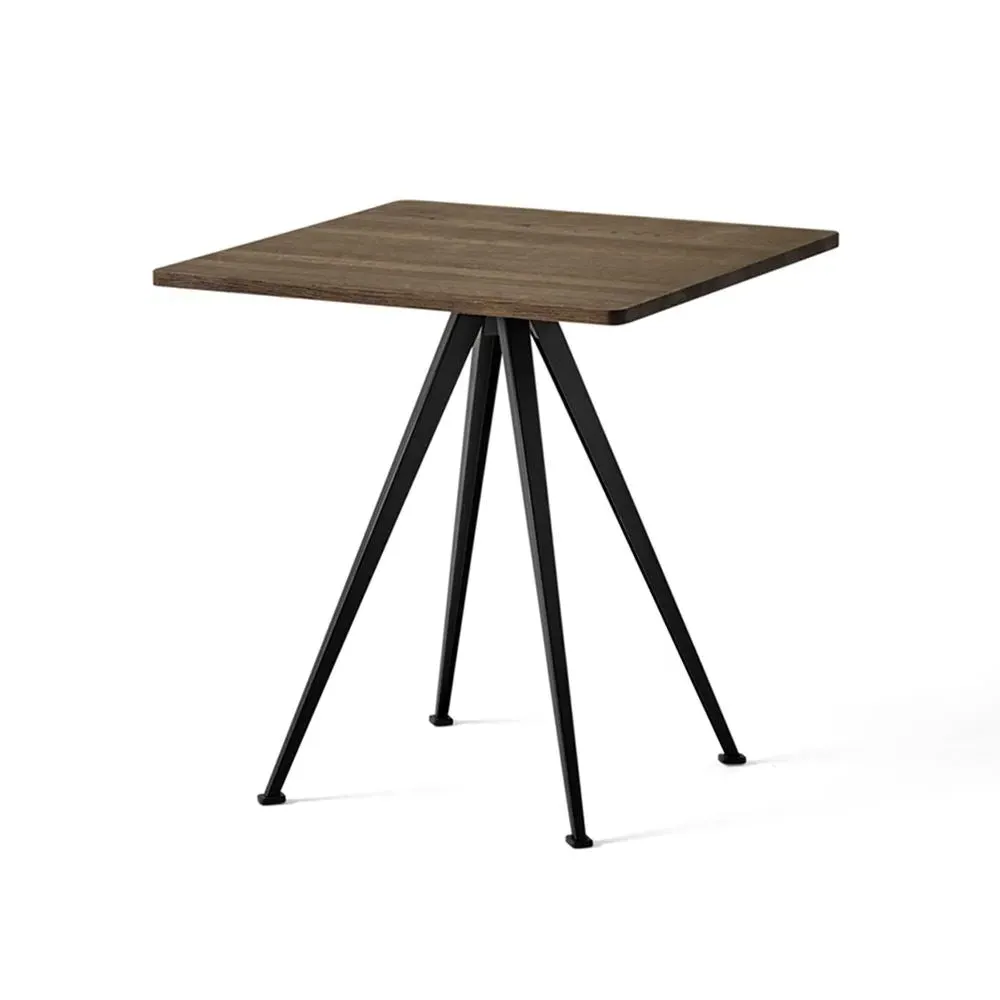 Featuring a square or round oak tabletop and bold sheet-steel legs that slant outwards, the Pyramid cafe table 21 offers a functional and uncluttered expression. Created by Wim Rietveld for Ahrend in the 1950s, this piece, along with the rest of the cutout steel collection was recently relaunched by HAY in collaboration with Ahrend. A stylish addition to a wide variety of cafe and restaurant settings, the Pyramid cafe table 21 comes in several wood finishes and base colours to suit a range of interior styles. Pair it with the Result chair for a coordinated look.