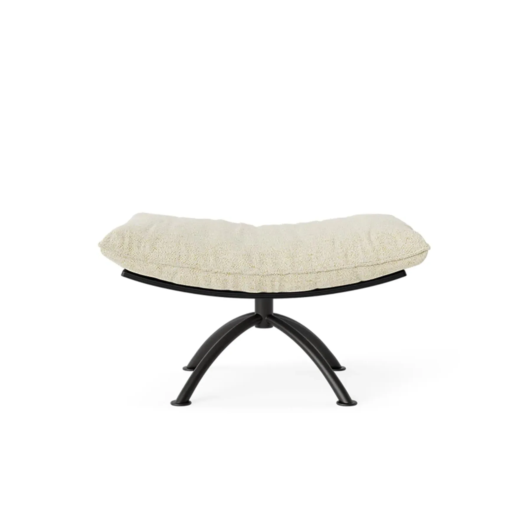 The swivel stool provides comfortable seating with its plush cushion that blends cold foam and down for optimal support. Its natural oak construction features a black steel swivel base, while the nature boucle fabric adds soft texture. The FSC-certified wood frame ensures responsible sourcing, and the swivel function allows for easy movement and positioning.