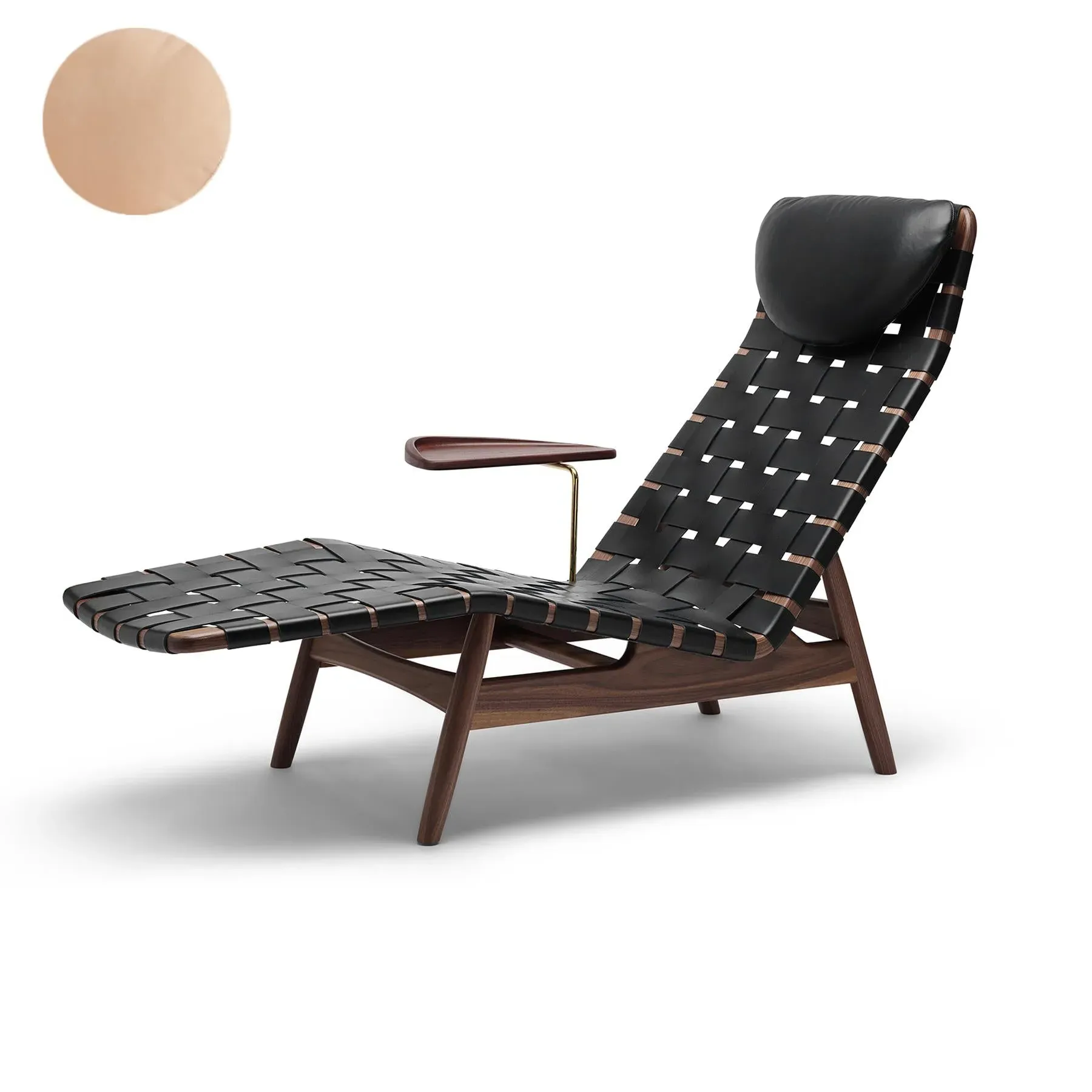 Discover the allure of the AV Egoist Chaise Lounge, a revival of Danish architect Arne Vodder''s cherished design from the 1950s. This chaise longue stands as a rarity, embodying timelessness and uniqueness, echoing the personal preference of its visionary creator. Crafted by Danish manufacturer Sibast Furniture, in collaboration with Michael Vodder, son of Arne Vodder, this piece is a testament to meticulous archival exploration. With the aid of vintage drawings, precise measurements, and a handful of photos, the AV Egoist Chaise Lounge has been resurrected, reclaiming its place as Arne Vodder''s signature furniture masterpiece. Available in either walnut or FSC-certified oak, the chaise longue boasts a range of exquisite finishes including soap, white oil, natural oil, dark oil, and smoked. The woven shoulder leather upholstery, available in black, brandy, and nature, adds a touch of sophistication. Enhance your lounging experience with optional accessories like a cushion for the headrest and a separately sold side table featuring a harmonious blend of brass and solid oak or walnut. Elevate your living space with the AV Egoist Chaise Lounge, a fusion of heritage, craftsmanship, and timeless style.