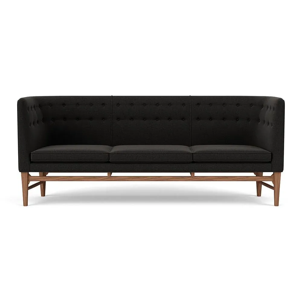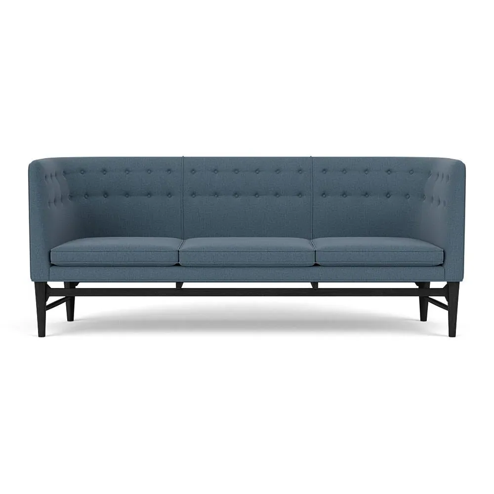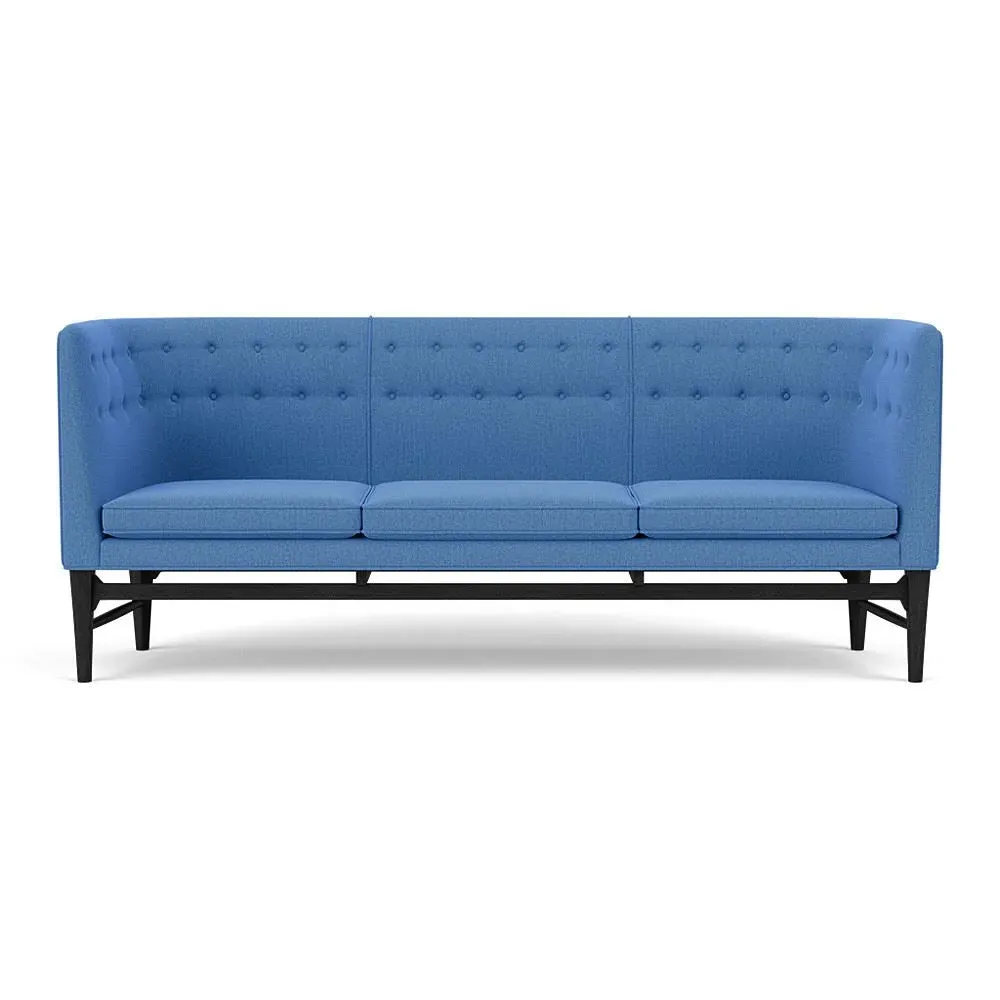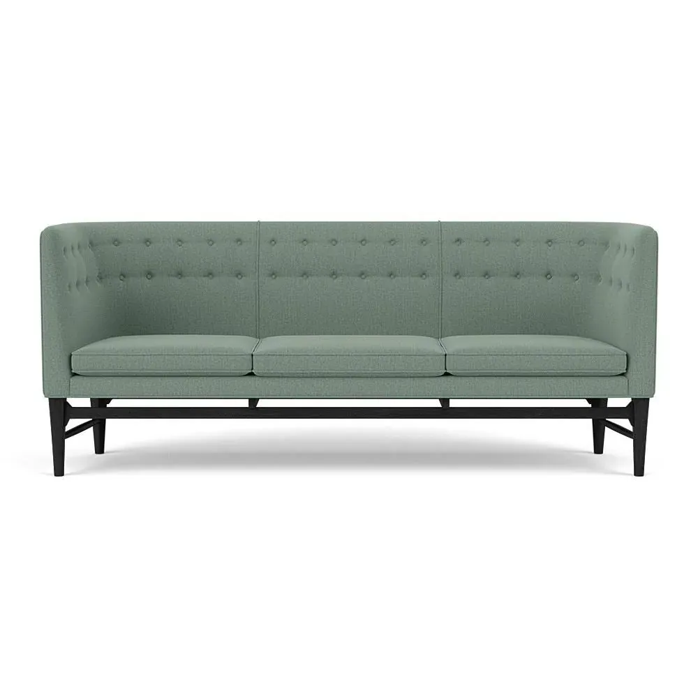 The Mayor sofa offers modern comfort with its distinctive button-tufted design extending across the back and armrests. Its tight upholstery maintains clean proportions, while the black lacquered oak frame ensures durability. The streamlined construction provides both support and contemporary style.
