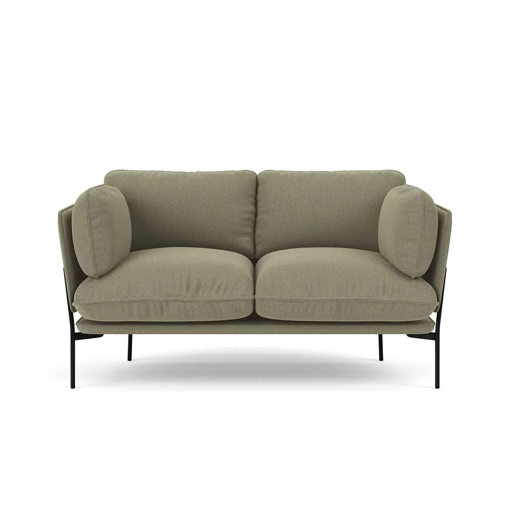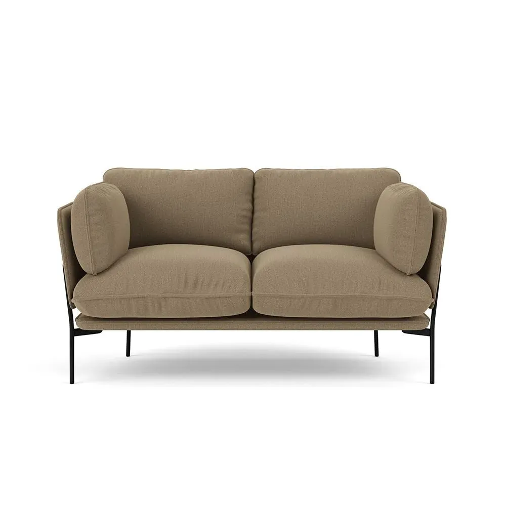 The Cloud Sofa features Danish design principles with luxurious Italian fabric and pillow construction. Its high resilience foam and feather combination delivers personalized comfort, while the Re-Wool material provides texture and resilience. The soft structure accommodates natural body curves, and the warm black finish creates a stylish focal point.