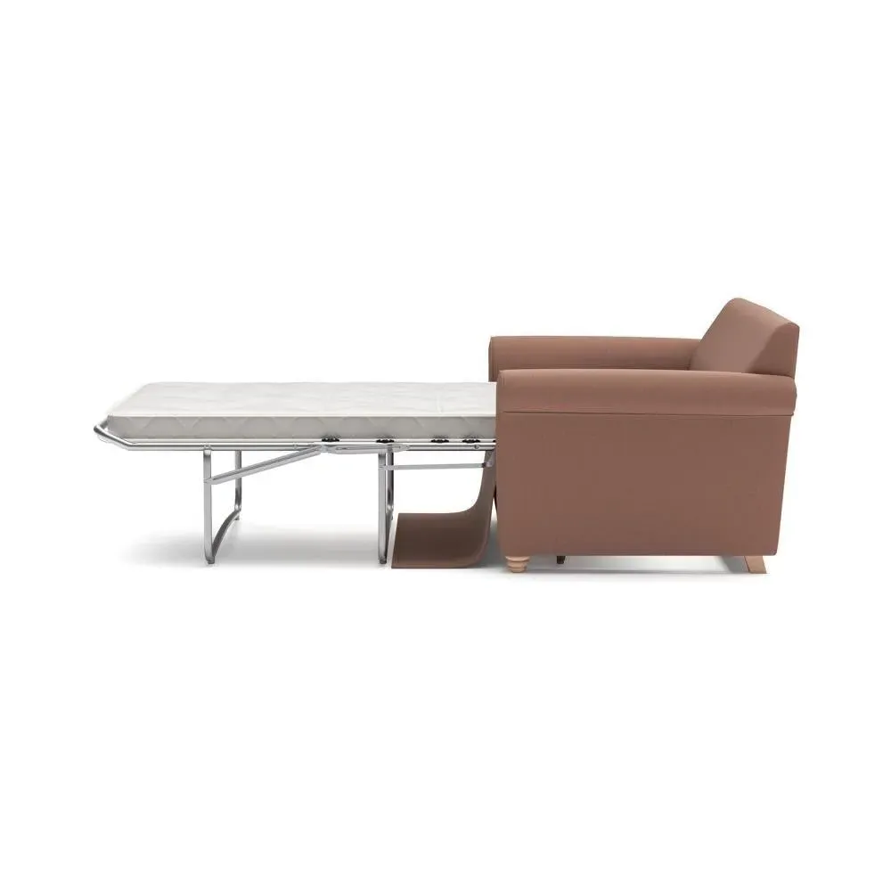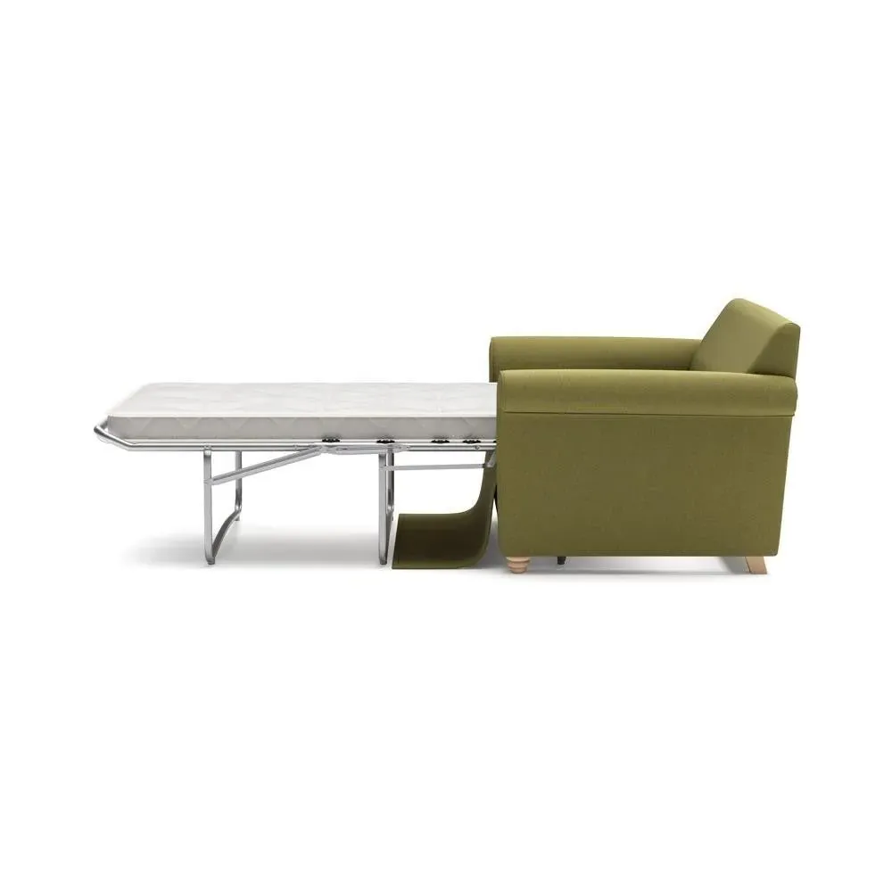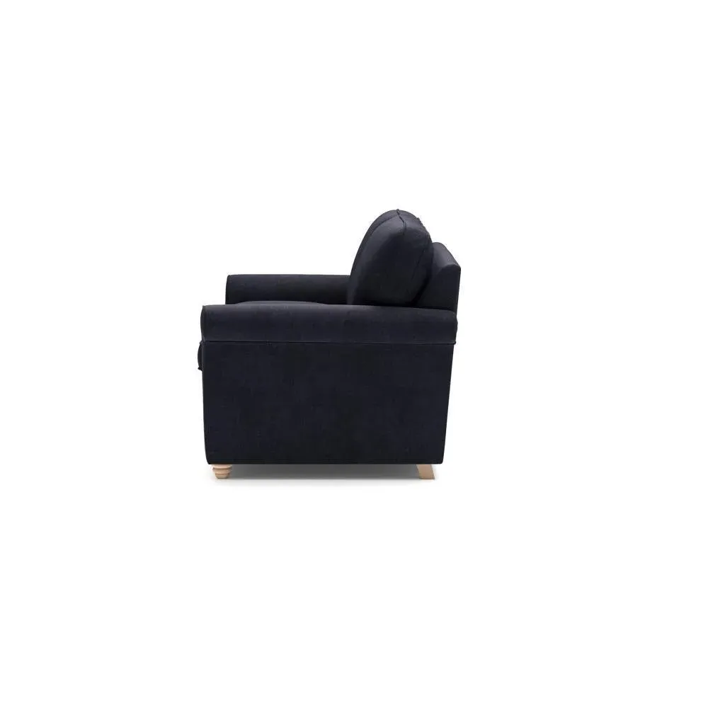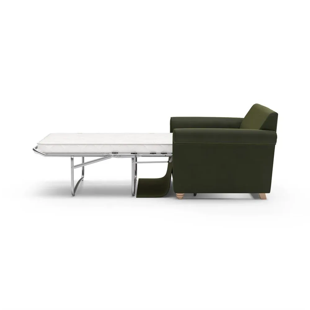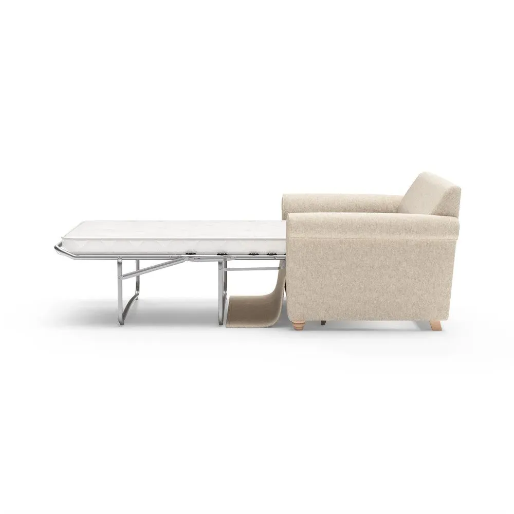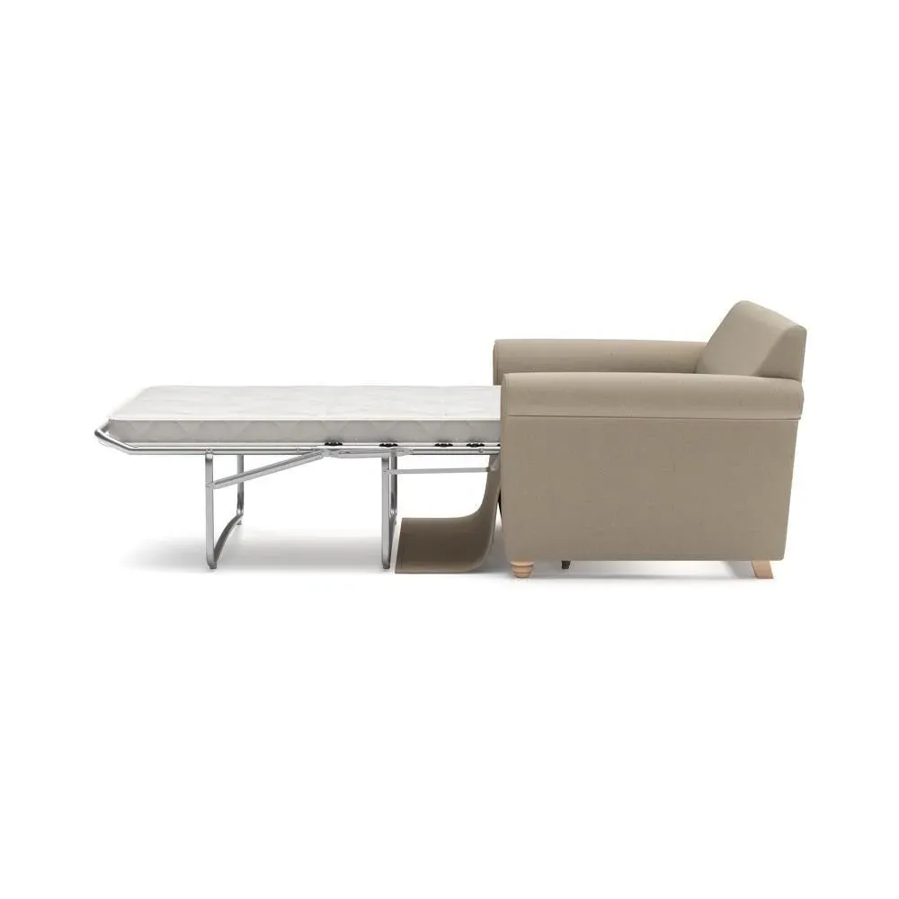 The sofa bed offers comfortable seating and sleeping with its tall, scrolled arms and deep seat cushions that provide a comforting embrace. Its beautifully turned feet add character to the design, while the construction accommodates both luxurious feather and low maintenance interior options. The dual functionality suits versatile living spaces, and the sturdy frame ensures lasting durability.