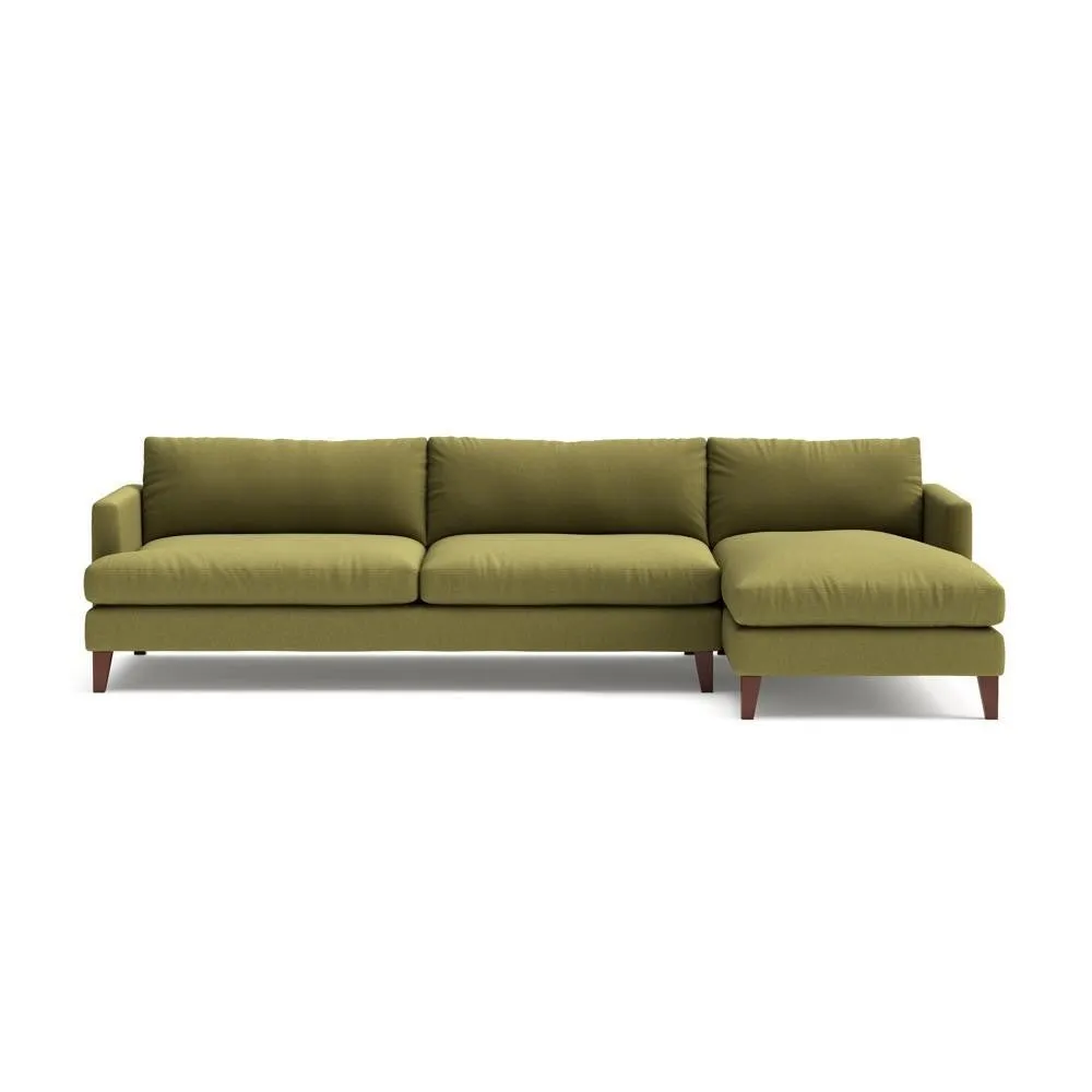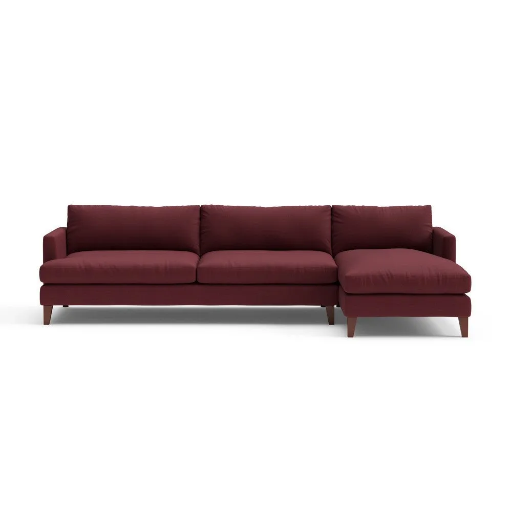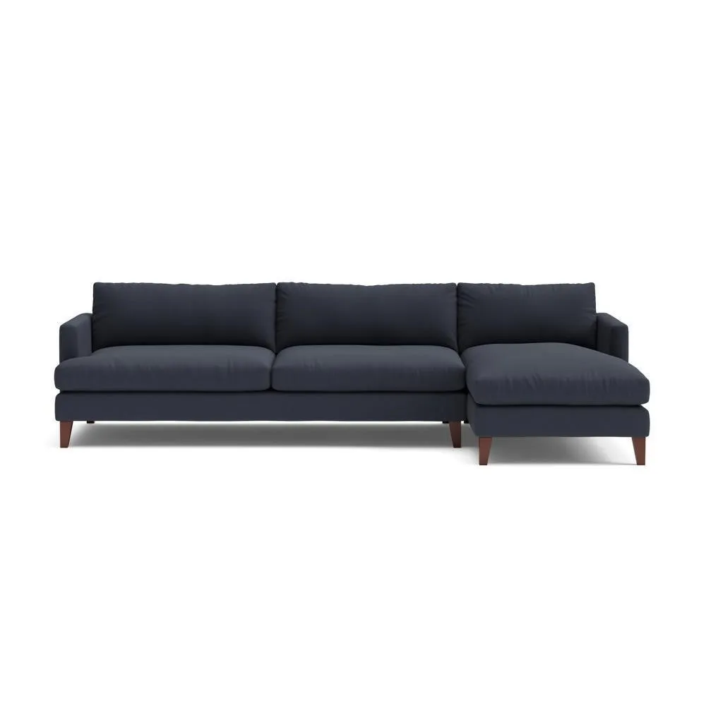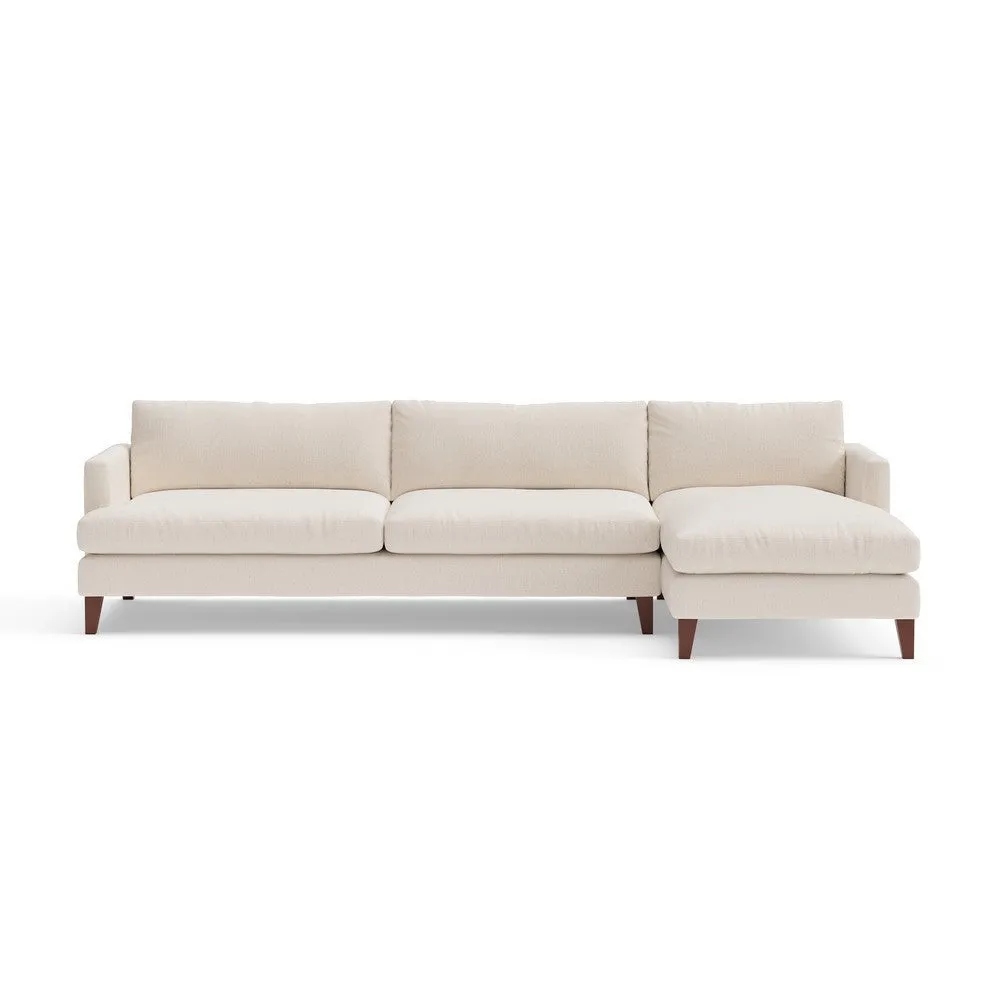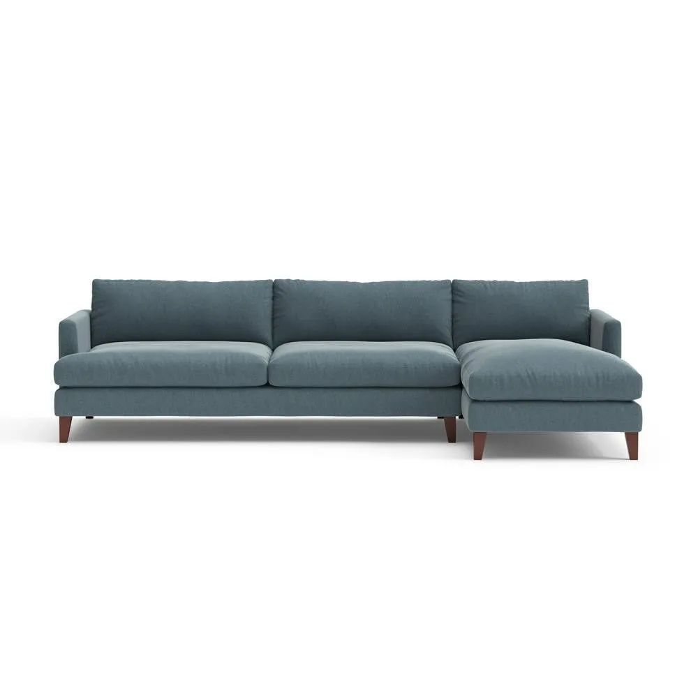 The chaise features clean lines and tall arms that deliver lasting comfort in a timeless design. Its extra large size accommodates multiple users comfortably, while the house weave fabric provides durability and texture. The right-hand configuration maximizes corner space usage, and the robust frame supports daily use.