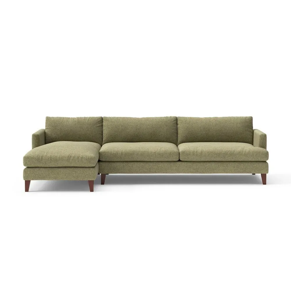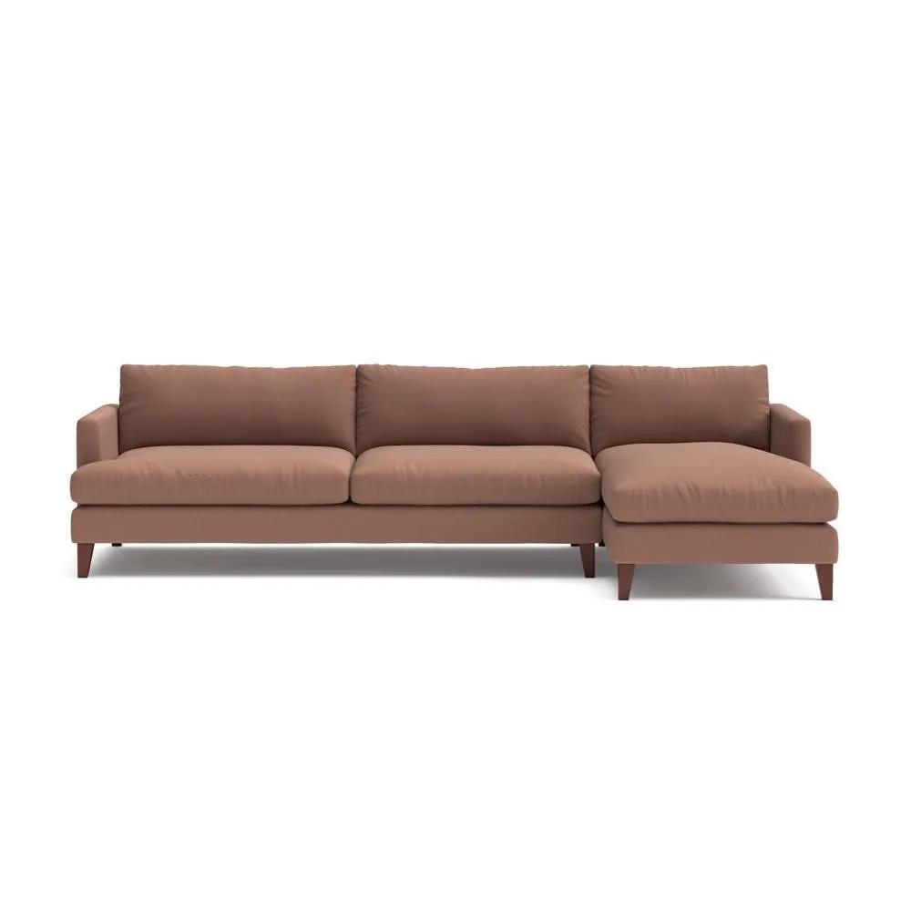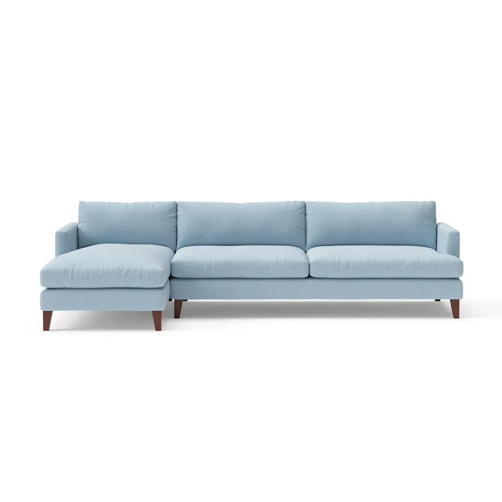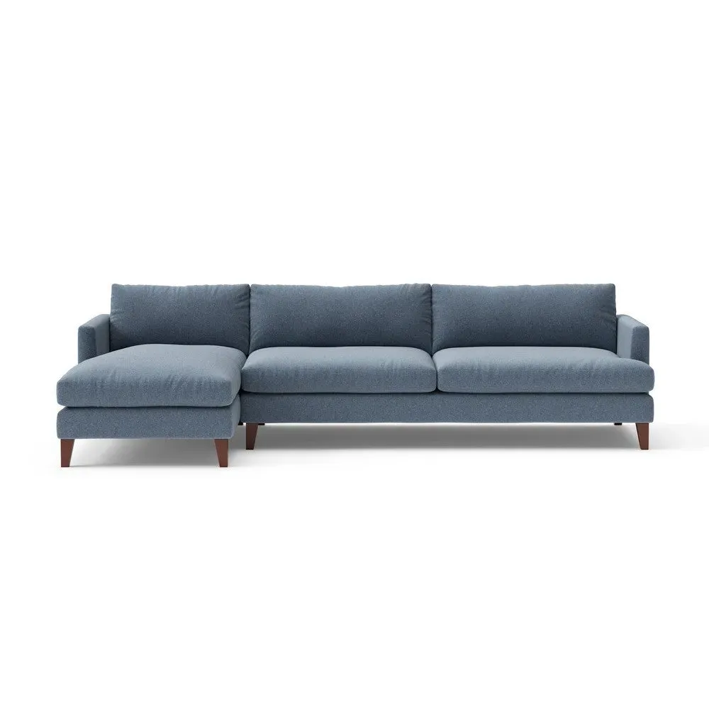 The chaise features clean lines and tall arms that deliver lasting comfort in a timeless design. Its extra large size accommodates multiple users comfortably, while the house weave fabric provides durability and texture. The right-hand configuration maximizes corner space usage, and the robust frame supports daily use.