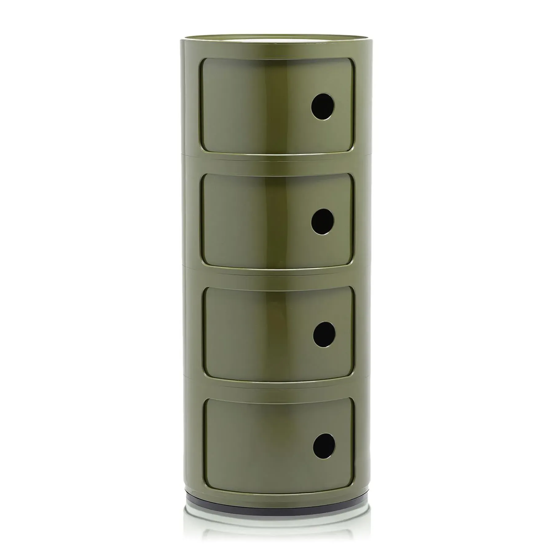 The Kartell Componibili Bio cabinet is a captivating embodiment of sustainability and timeless design. A modern take on Kartell''s iconic storage units, the Bio Componibili exudes desirability through its revolutionary use of materials. Crafted from a cutting-edge biopolymer derived from renewable raw materials, sourced from non-GMO agricultural waste, this storage unit stands as a testament to Kartell''s commitment to preserving the planet. This versatile plastic storage unit fits effortlessly into any room of your home, becoming an indispensable companion for your organisation needs. Whether gracing your bedroom as a bedside cabinet, adding flair to your bathroom, or lending functionality to your office, the Bio Componibili adapts seamlessly to your lifestyle. The slide-open doors, adorned with finger hole handles, reveal spacious compartments thoughtfully designed for convenient storage. Its soft touch effect mat finish adds an elegant touch, elevating the appeal of your interior while maintaining a commitment to sustainable living. Originally conceived by the visionary Italian designer Anna Castelli Ferrieri for Kartell in 1969, the Componibili storage unit has stood the test of time as an art and design classic. With the introduction of the Bio extension, it now embodies a new era of eco-consciousness and responsible living. Embrace the circular design and the circular economy with the Bio Componibili, and cherish this versatile piece that serves not only as a functional storage solution but also as a meaningful contribution to a better world.