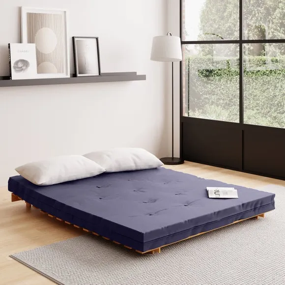 A handy, versatile futon for the modern home in a timeless design to complement any decor. The Mito Double Futon features a great space saving solution for where space is at a premium. This Futon folds out easily from a seat to a comfortable bed for guests. The Mito Double Futon is constructed from solid pine and comes complete with a quality fibre blend button design mattress. Open Bed Width: 135cm Open Bed Depth: 195cm Box 1: 142cm x 81cm x 20.5cm (18kg)Box 2: 56cm x 137cm x 56cm (14 kg)Please note, unfortunately we cannot deliver this item to Northern Ireland or the Channel Islands.
