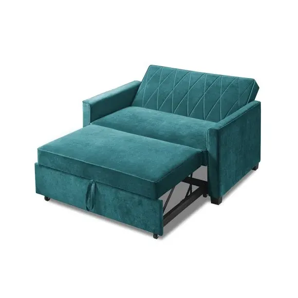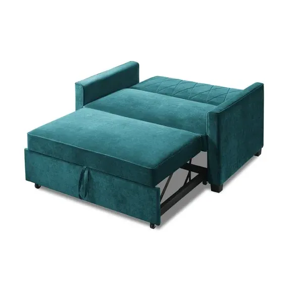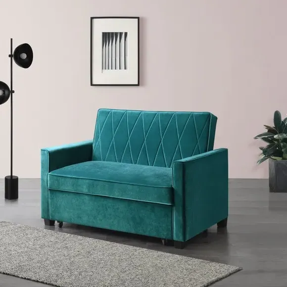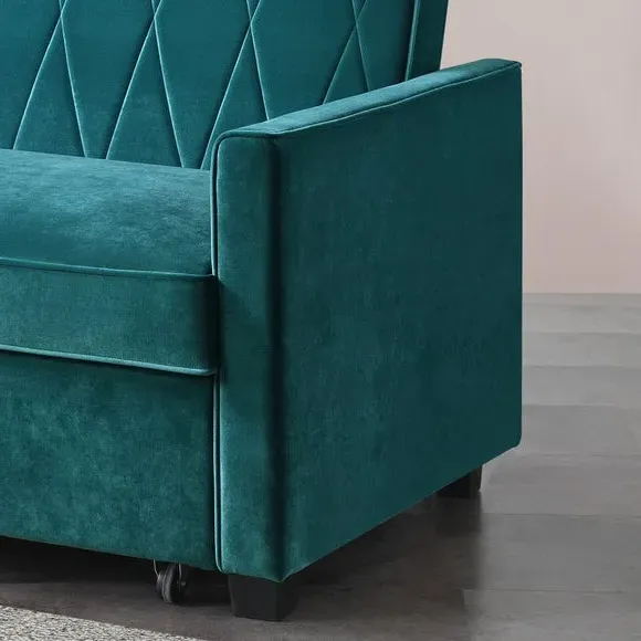 * Modern, Velvet Sofa Bed* 2 Seater Sofa, Double Mattress* Foam Filled Cushion* Full Assembly Required This sofa bed is not only multi-functional, serving as both a sofa and a bed, but also add a special touch to any living space. The seat padding, made with impressive 5cm foam, offers ultimate comfort, ensuring a good night's sleep or a cosy lounging experience. The combination of S springs and thick layers of foam provides a mattress-like feel, making them perfect for relaxation. With an easy-to-operate clic clac mechanism, these sofa beds are both practical and stylish, maximising limited space in your home.