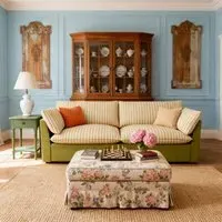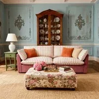 The Cottonfy Check & Striped Sofa combines vintage British charm with practical functionality through its fully removable and washable covers. Its harmonious mix of check and striped patterns creates distinctive texture, while the pine wood frame with reinforced joints ensures lasting stability. The wide cushions filled with eiderdown provide comfortable seating, and the cotton blend fabric offers stain and water resistance for everyday durability. Available in two sizes: W220 x D93 x H96 cm or W260 x D93 x H96 cm.