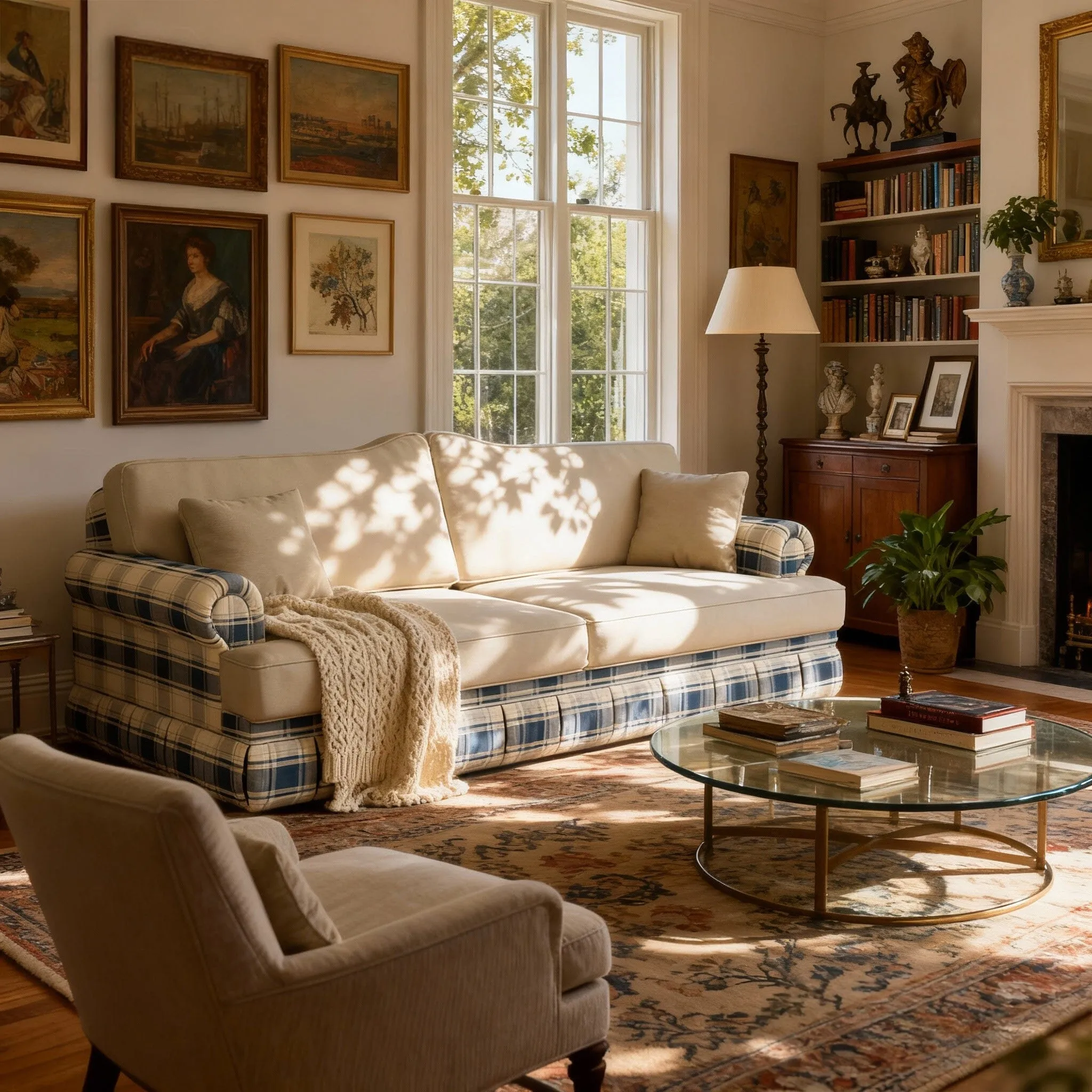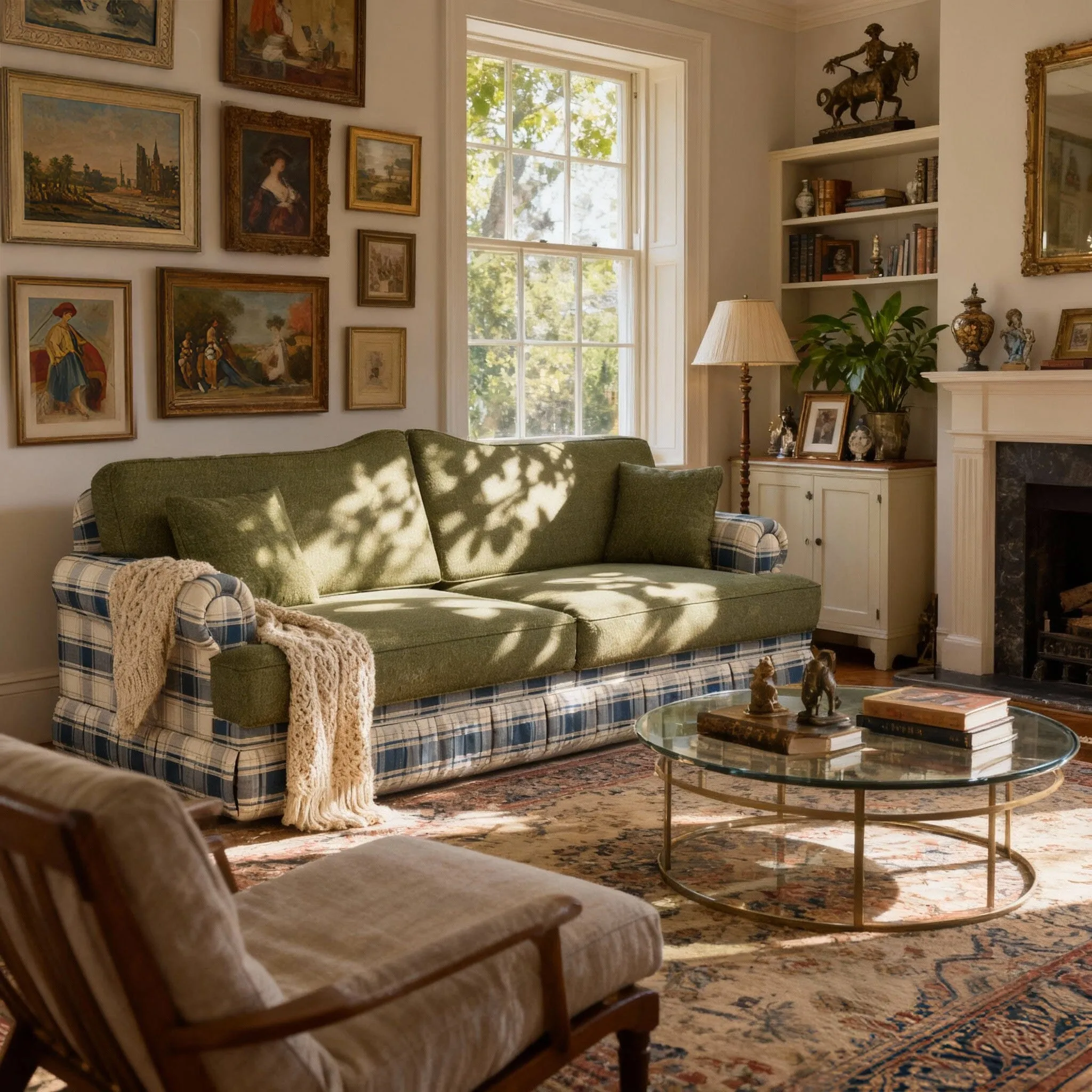 Timeless British Charm with Clever Functionality. The Cottonfy Heritage Plaid Skirted Sofa with Concealed Storage Drawers blends traditional British craftsmanship with everyday practicality. Featuring a soft plaid upholstery, elegant pleated skirt, and two hidden drawers discreetly tucked beneath, it offers both beauty and function in one refined design. Perfect for cosy living rooms or countryside homes, this plaid sofa provides generous comfort while keeping your space effortlessly tidy. A true Cottonfy classic — where timeless style meets thoughtful living.. Key Features. Heritage Plaid Design – A classic British check pattern that adds warmth and elegance to any interior, perfect for countryside or traditional homes.. Skirted Base Detailing – Refined pleated skirt gives the sofa a tailored, graceful silhouette that never goes out of style.. Concealed Storage Drawers – Two hidden drawers beneath the seat provide practical storage for blankets, magazines or living room essentials.. Premium Fabric Options – Available in cotton-linen, velvet, or matte textures for a personalised touch of comfort and luxury.. Soft Removable Cushions – Comfortable seat and back cushions designed for easy cleaning and lasting support.. Solid Craftsmanship – Built with a sturdy wooden frame to ensure stability and long-term durability for everyday use.. Specifications:. Feature. Details. Size Options. - 180CM: 180cm L×97cm W×99cm H. - 226CM: 226cm L×97cm W×99cm H. Seat Dimensions. 50cm H×64cm W. Legs. 5cm H. Material. Larch Wood. Fabric. Chenille. Filler. Sponge. Scratch Resistant. No. Stain Resistant. No. Water Resistant. No. Detachable & Washable. No. Package Content. 1 × Sofa. Package Quantity. 1. Packaging Dimensions. 180CM: 185 L*105 W*95 H CM. 226CM: 230 L*105 W*85 H CM. Note:. Please feel free to contact us if you want custom size or colour.. Q1: What type of wood is used in the Cottonfy Heritage Plaid Skirted Sofa?This sofa is built with a durable solid wood frame, ensuring lasting stability and strength. The structure is designed to support everyday use while maintaining its elegant British charm.. Q2: How many storage drawers does the sofa include, and what can they hold?The Heritage Plaid Skirted Sofa features two concealed drawers neatly hidden beneath the skirted base. They provide practical storage for items such as blankets, books, or small household essentials — keeping your living space organised and clutter-free.. Q3: What upholstery options are available for this model?You can choose from cotton-linen, velvet, or matte fabric finishes, allowing you to tailor the texture and look to suit your interior style. Each material is soft to the touch, durable, and adds a distinct character to the sofa.. Q4: Are the seat and back cushions removable or washable?Yes, the soft upholstery covers on the seat and back cushions are removable, making it easier to maintain cleanliness and freshness. However, the main frame fabric is fixed and not detachable.. Q5: Does the sofa come fully assembled?Yes, the Cottonfy Heritage Plaid Skirted Sofa arrives fully assembled and ready to use, so you can enjoy its comfort and beauty straight away without any setup required.. Q6: What are the size options for this sofa?This sofa is available in two sizes to suit different living spaces — a 2-seater and a 3-seater option. Both maintain the same classic plaid design and skirted style for a cohesive look.. Q7: How tall are the sofa legs hidden under the skirt?The hidden legs measure approximately 5cm in height, offering a stable base while preserving the clean, flowing lines of the skirted design.. Q8: Is the fabric resistant to stains or scratches?The sofa is not specifically treated for stain or scratch resistance, but all fabric options are of high quality and easy to maintain with regular care and spot cleaning.. Q9: Is the plaid design available in other colour variations?Yes, the Heritage Plaid collection offers a variety of colour tones, from warm honey and cream to gentle sage and grey — allowing you to match your sofa beautifully with your home décor.. Q10: What is included in the package upon delivery?Each order includes 1 × fully assembled sofa with removable cushions and concealed drawers, securely packed and ready for placement in your home.