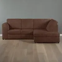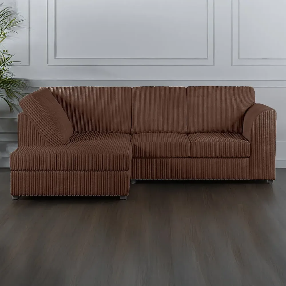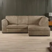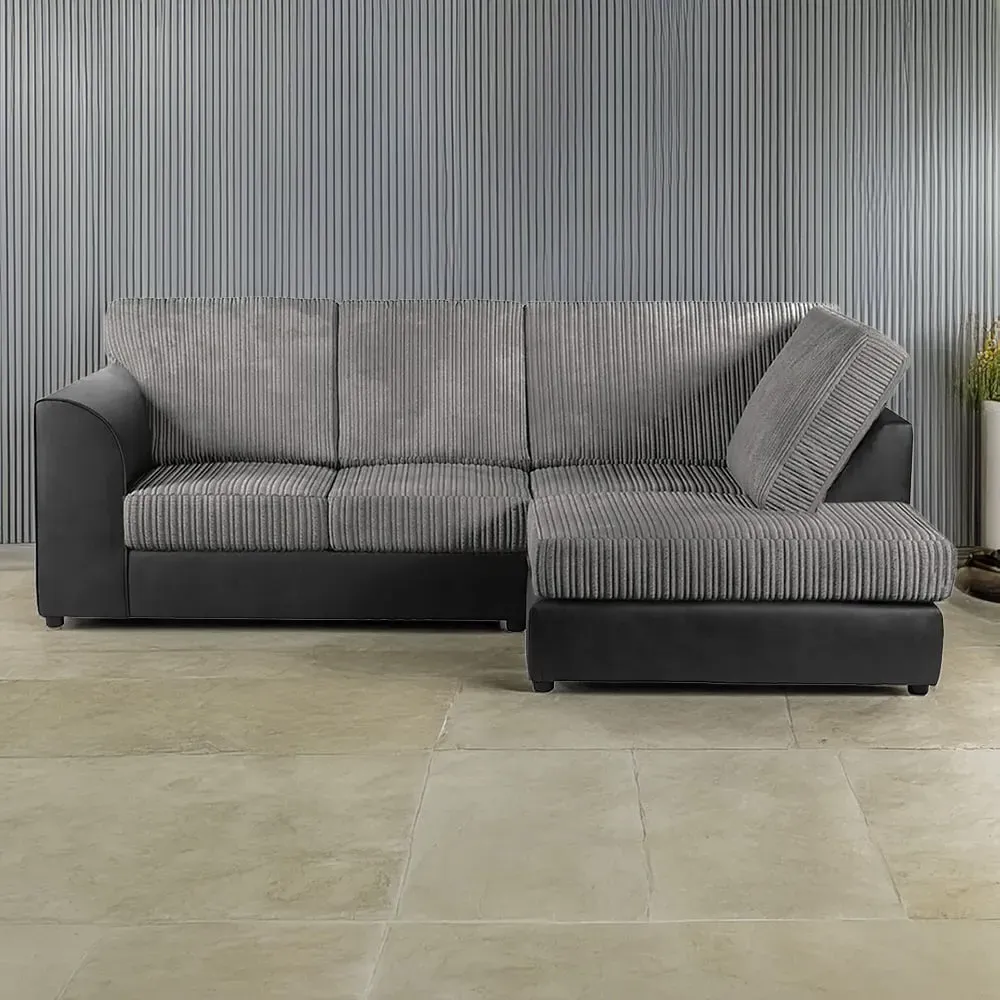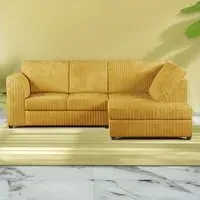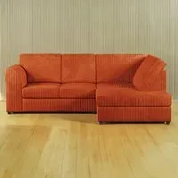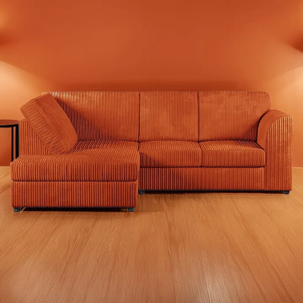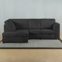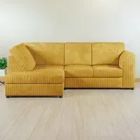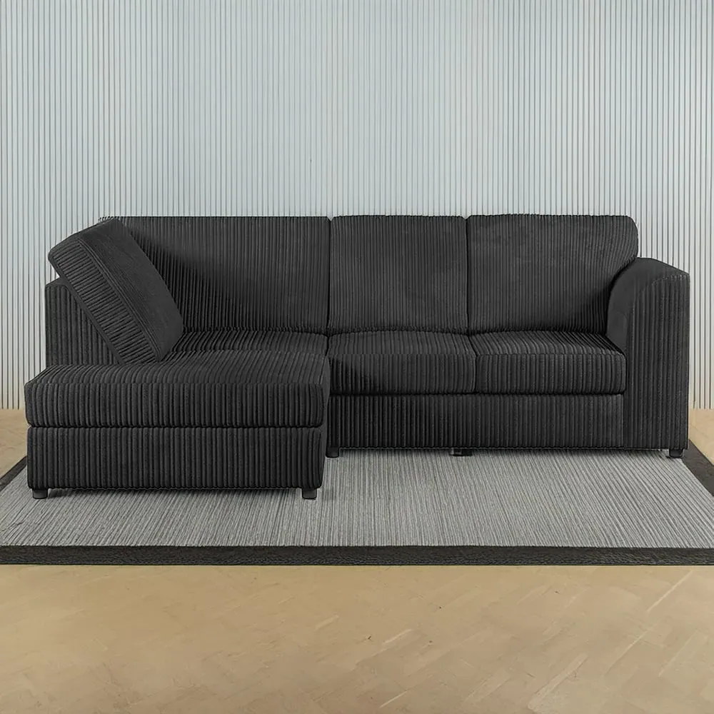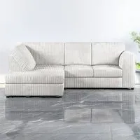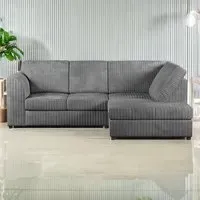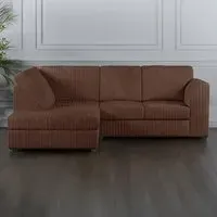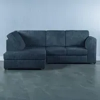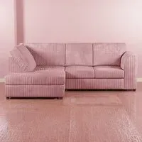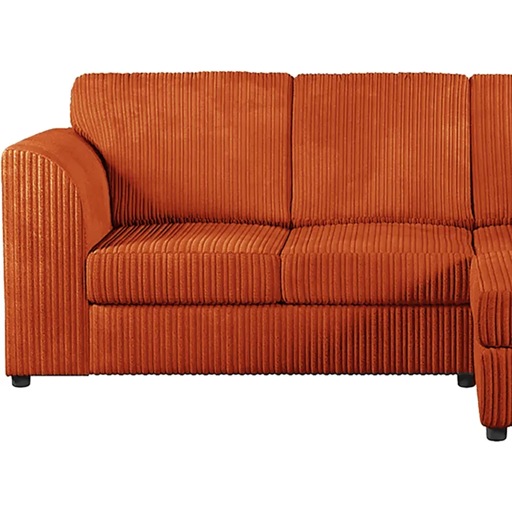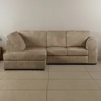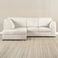The corner sofa offers comfort and practicality with its foam-filled seating and full-back design. Its jumbo cord upholstery provides durability and texture, while the L-shaped configuration maximizes seating space. The compact design fits through doorways as narrow as 65cm, and the left-hand orientation suits various room layouts.