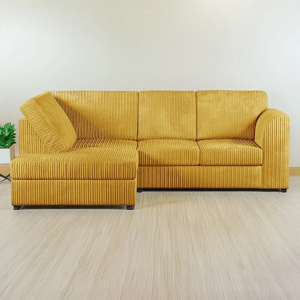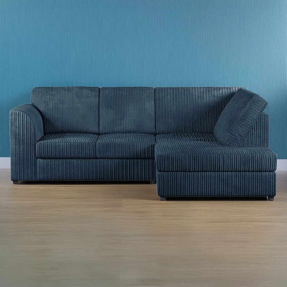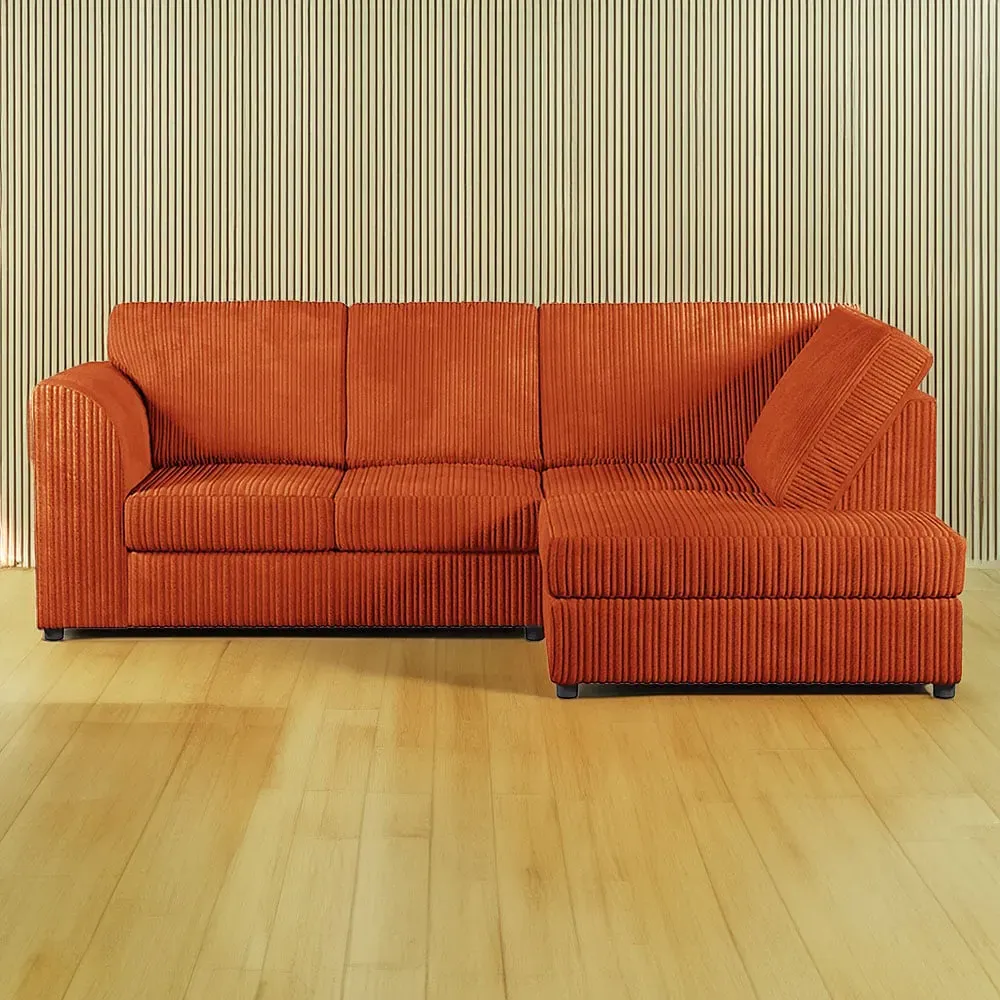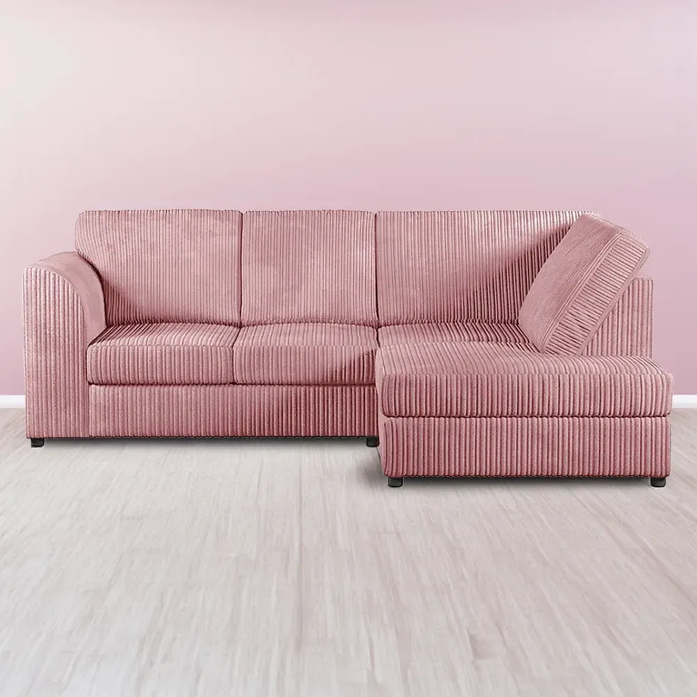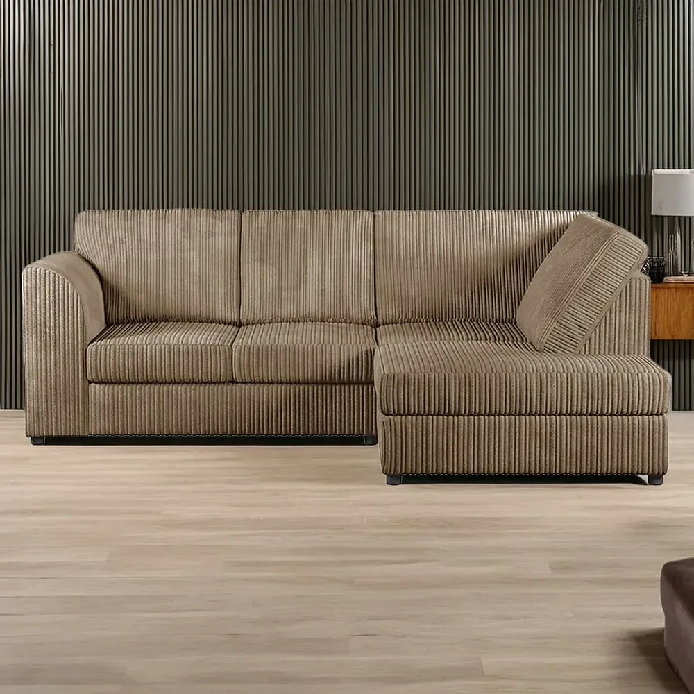 This corner sofa is ideal for tight spaces because it can fit through doorways that are only 65cm wide. The sofa is upholstered in cord, which is both durable and stylish. The luxury foam-filled seating ensures that you will be comfortable while sitting or lounging on this sofa. The full-back adds an extra level of plushness and comfort to the design. This is ideal for those who appreciate comfort and style in their living space.