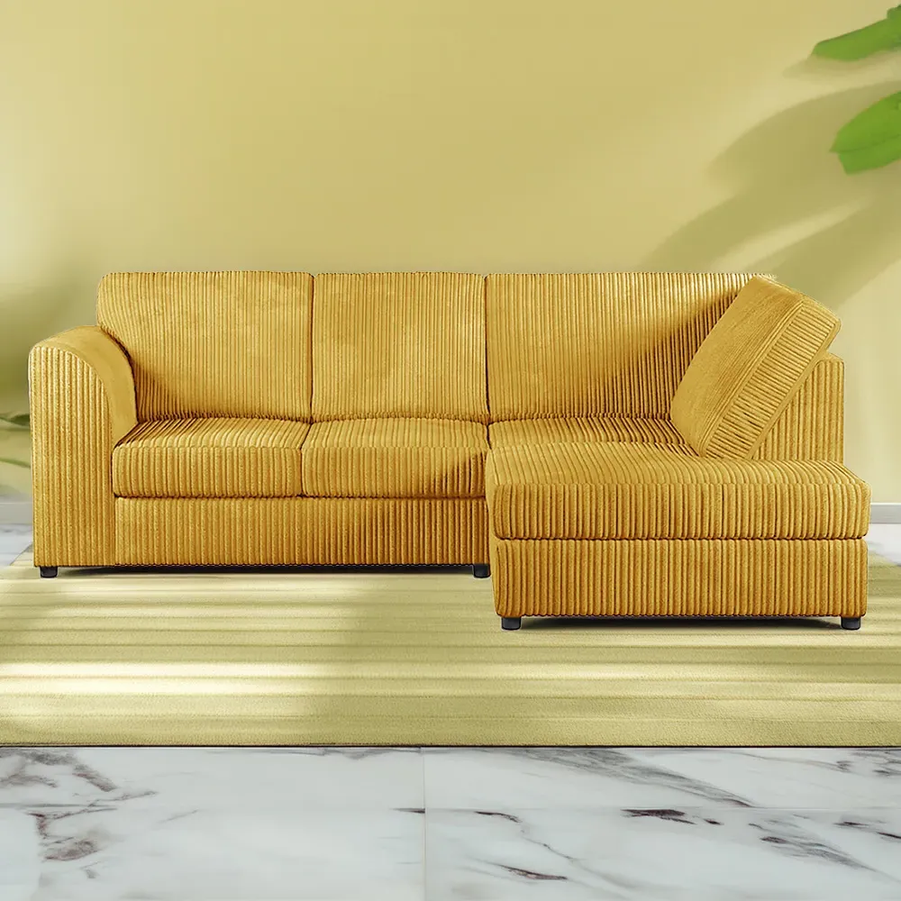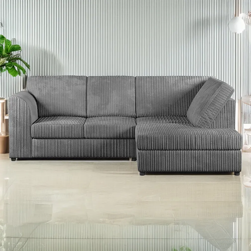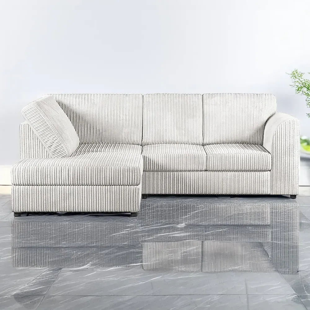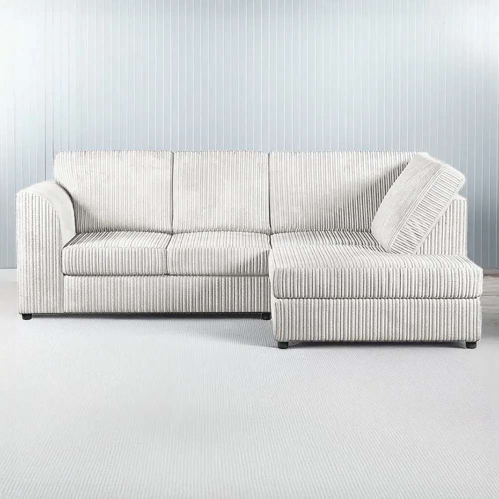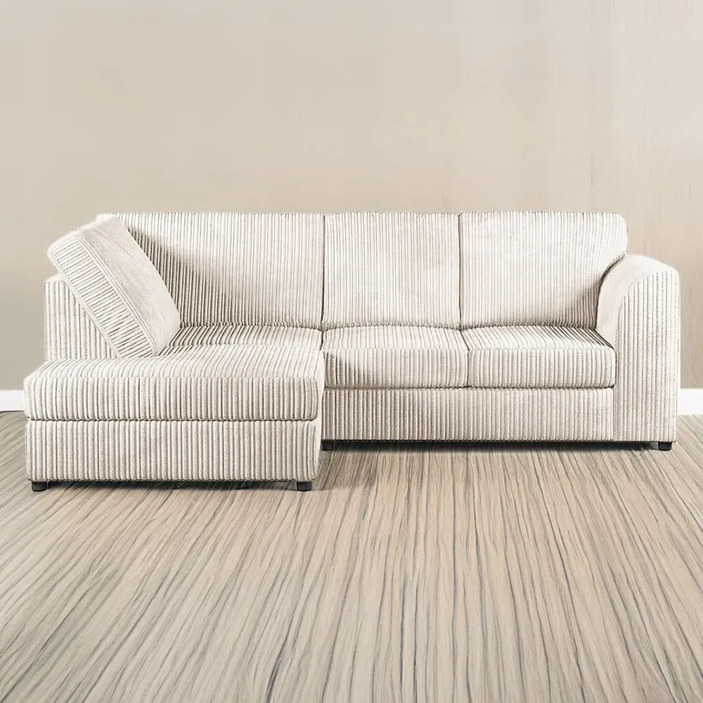This corner sofa is ideal for tight spaces because it can fit through doorways that are only 65cm wide. The sofa is upholstered in cord, which is both durable and stylish. The luxury foam-filled seating ensures that you will be comfortable while sitting or lounging on this sofa. The full-back adds an extra level of plushness and comfort to the design. This is ideal for those who appreciate comfort and style in their living space.