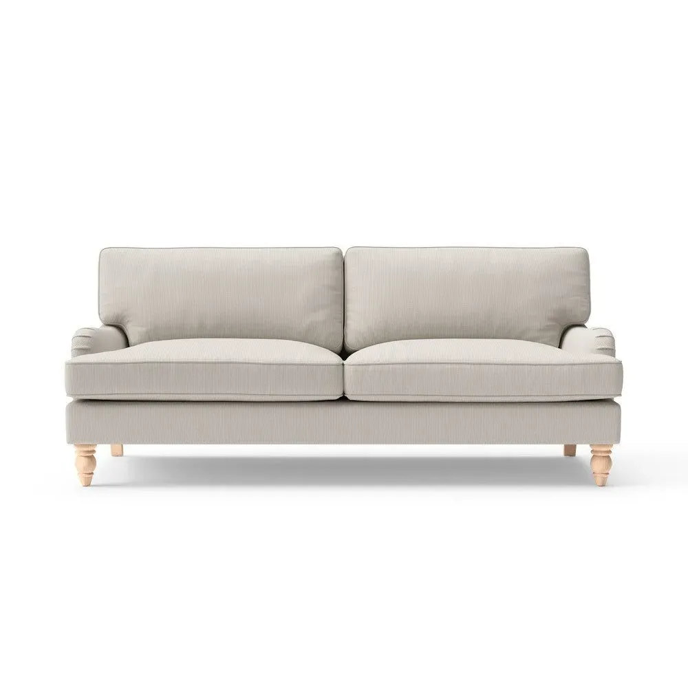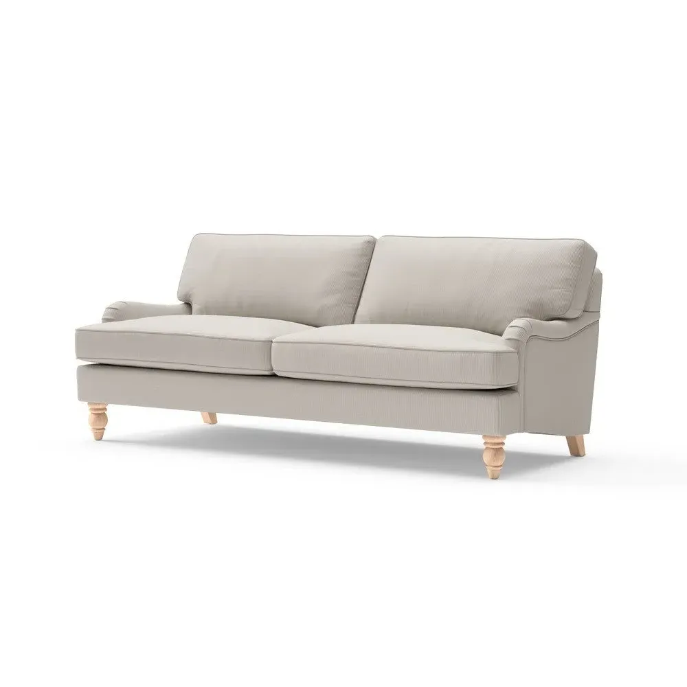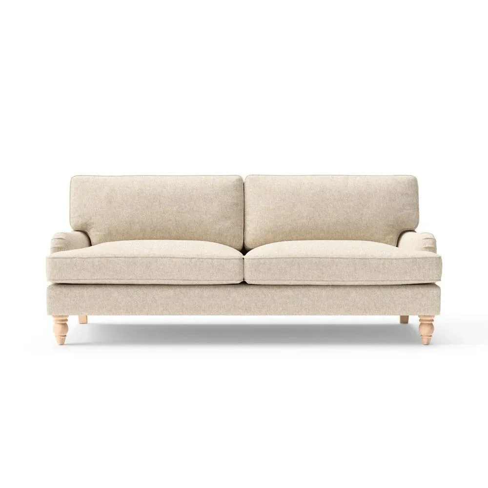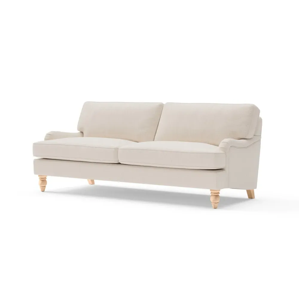 The sofa offers sink-in comfort with its relaxed design, featuring low arms that provide space for stretching out. Its house weave upholstery combines durability with natural texture, while the generous seating accommodates family gatherings. Available in both luxurious feather or low maintenance interior options to suit different preferences.