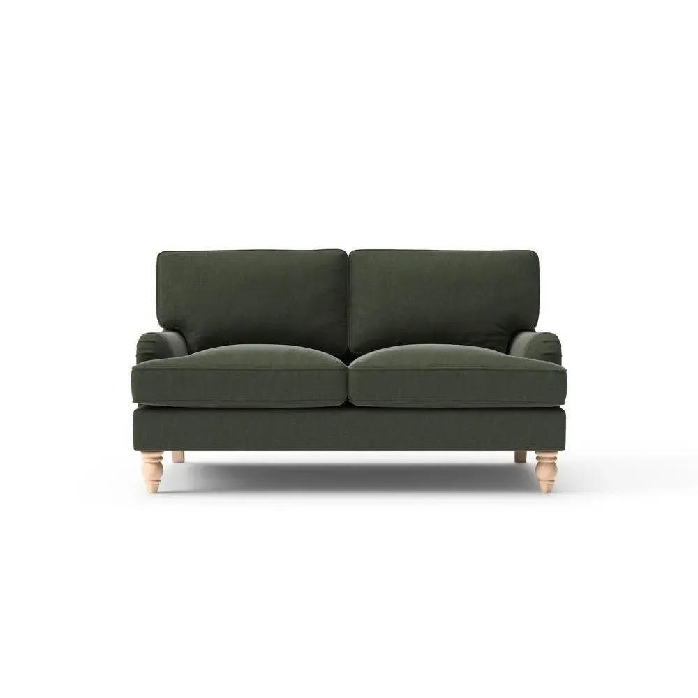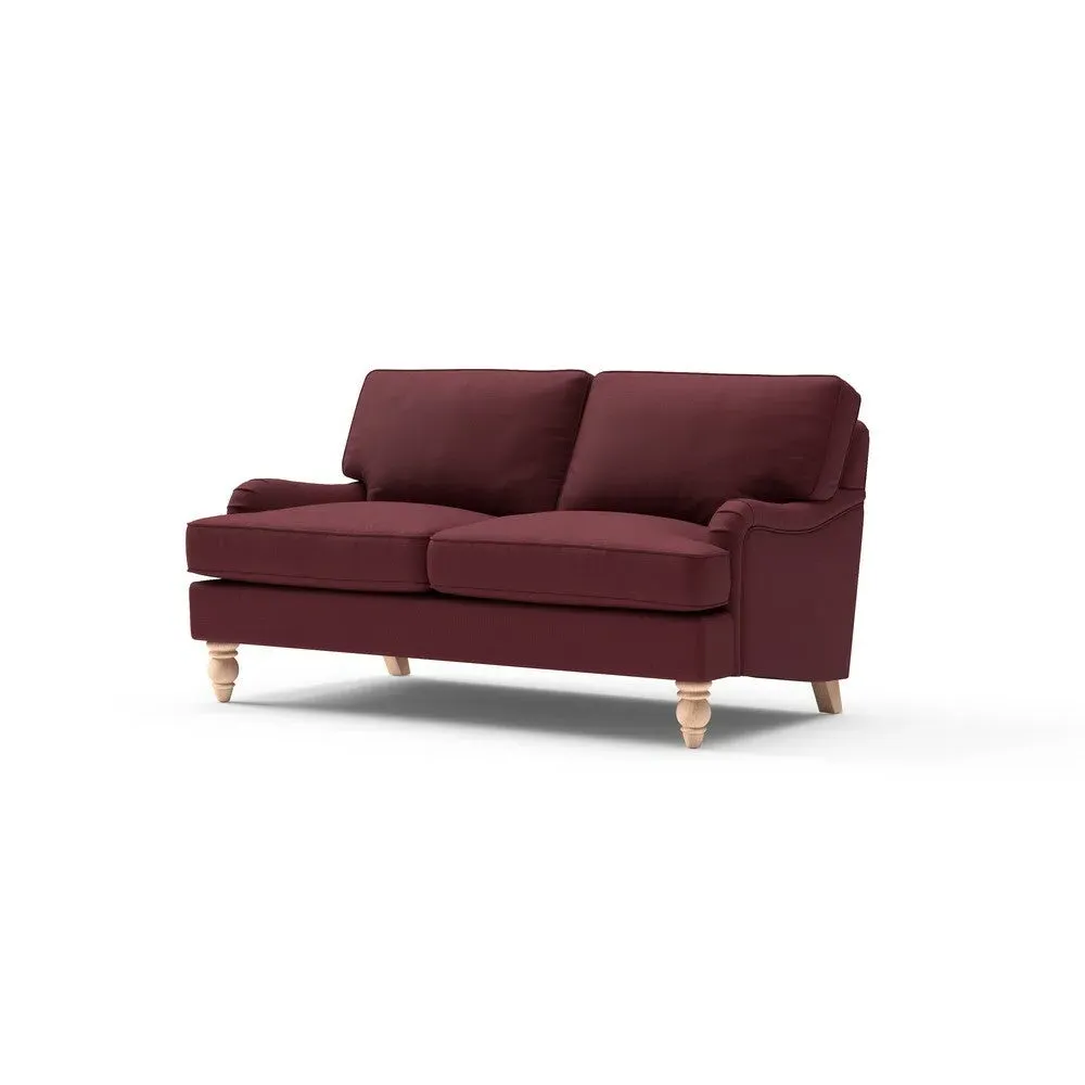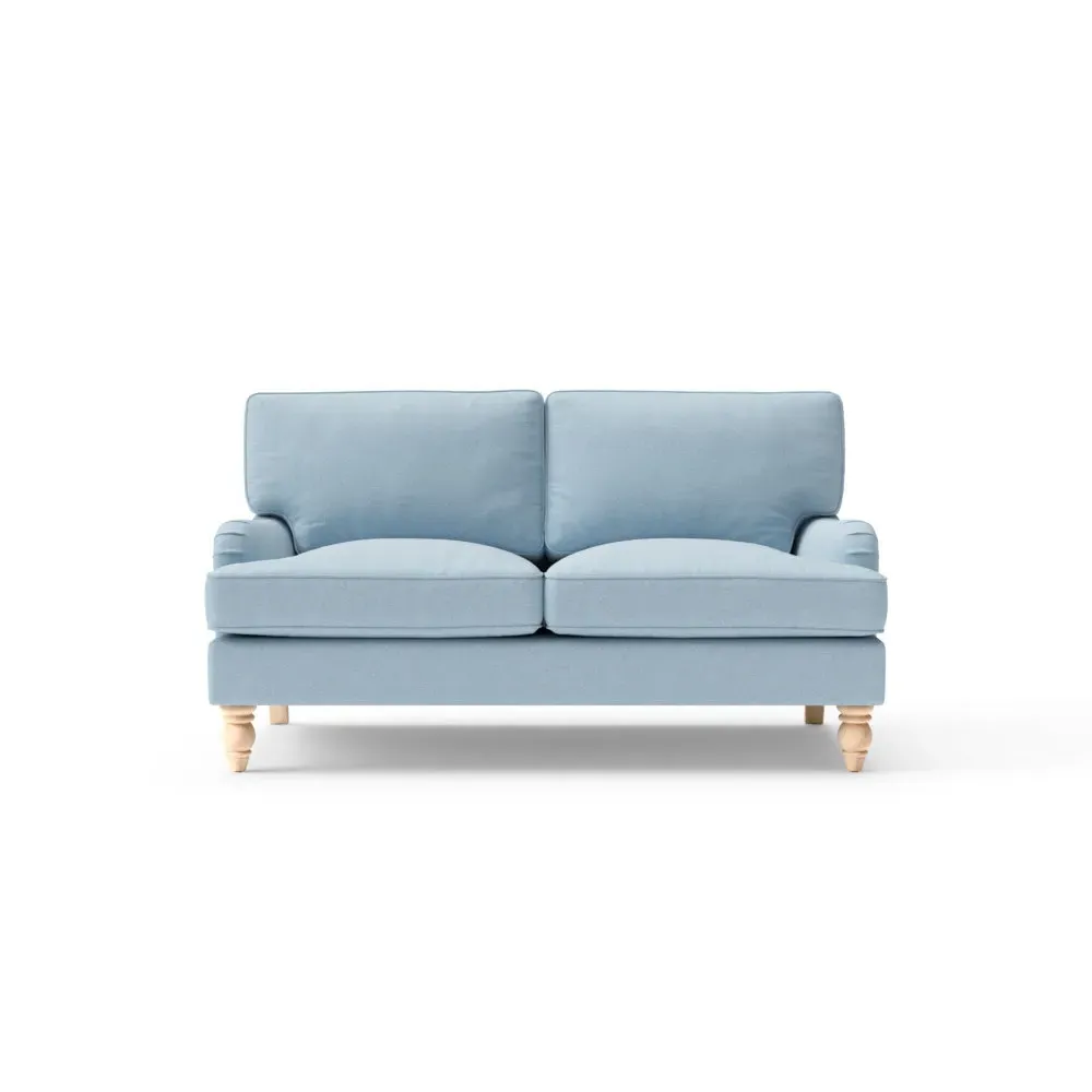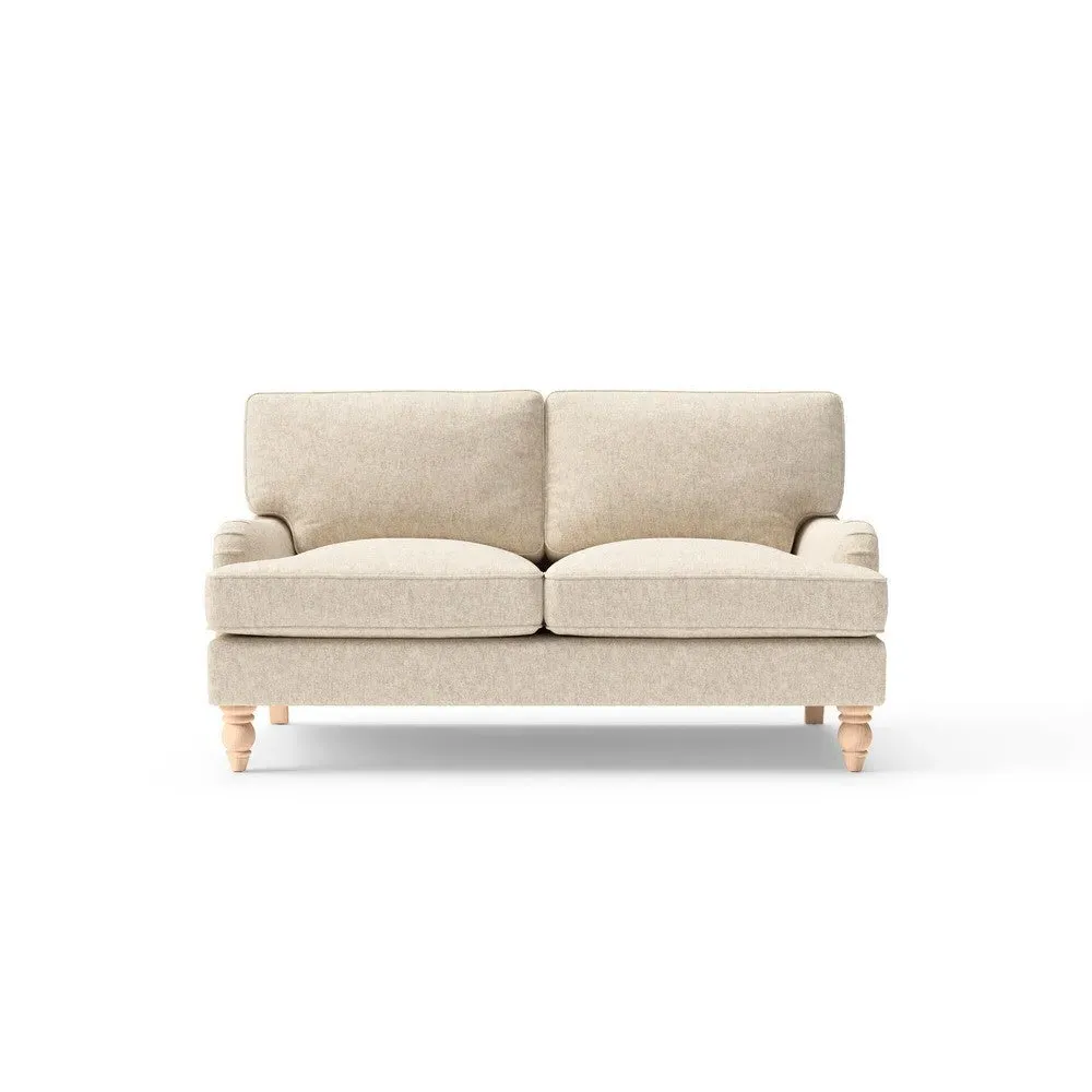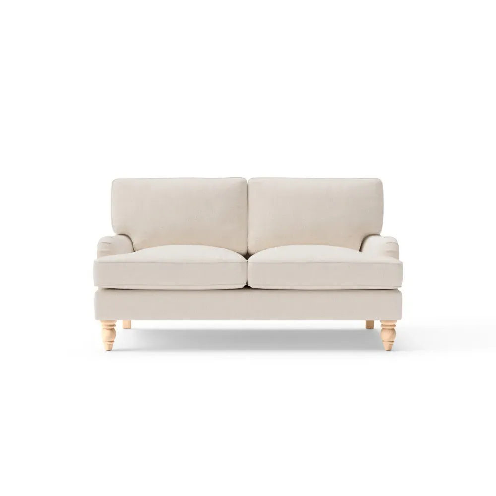 The sofa offers sink-in comfort with its relaxed design, featuring low arms that provide the perfect spot for stretching out. Its house weave fabric adds texture and durability, while the spacious seating accommodates two people comfortably. The low-profile arms enhance the laid-back appeal and complement various interior styles.